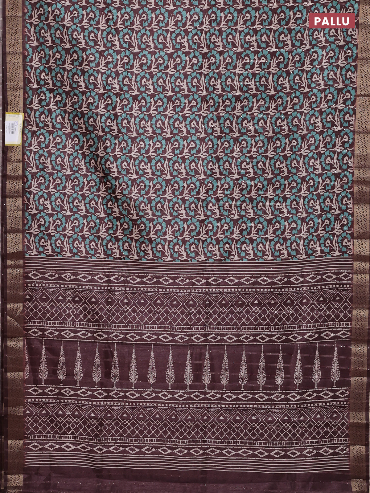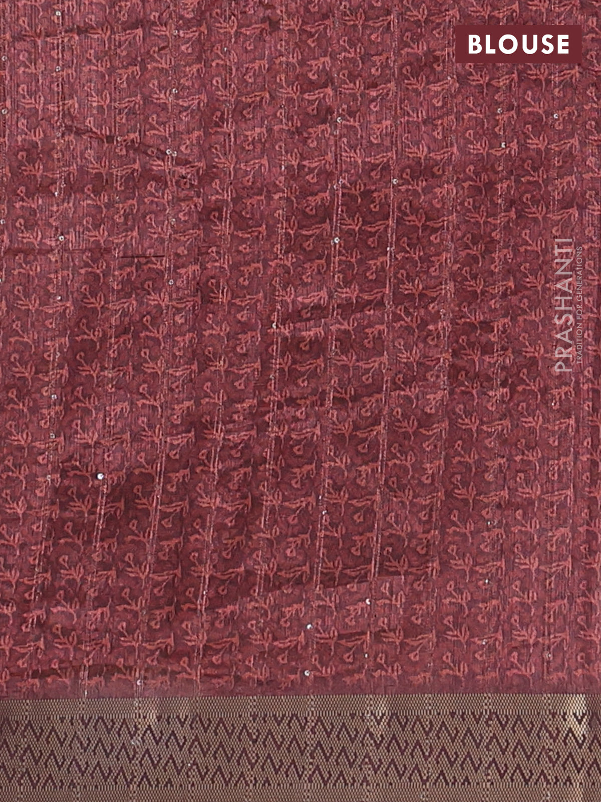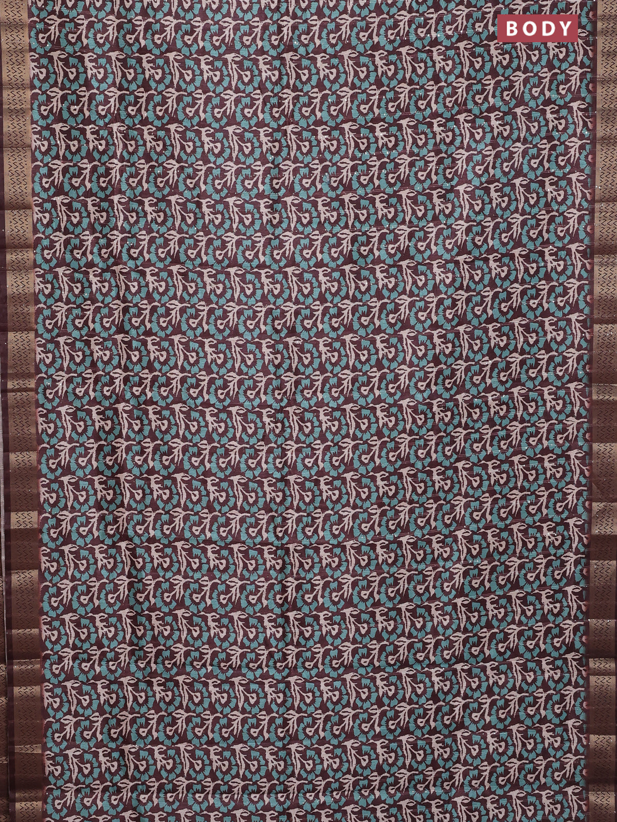 Semi tussar saree brown with allover floral prints & sequin work and zari woven border