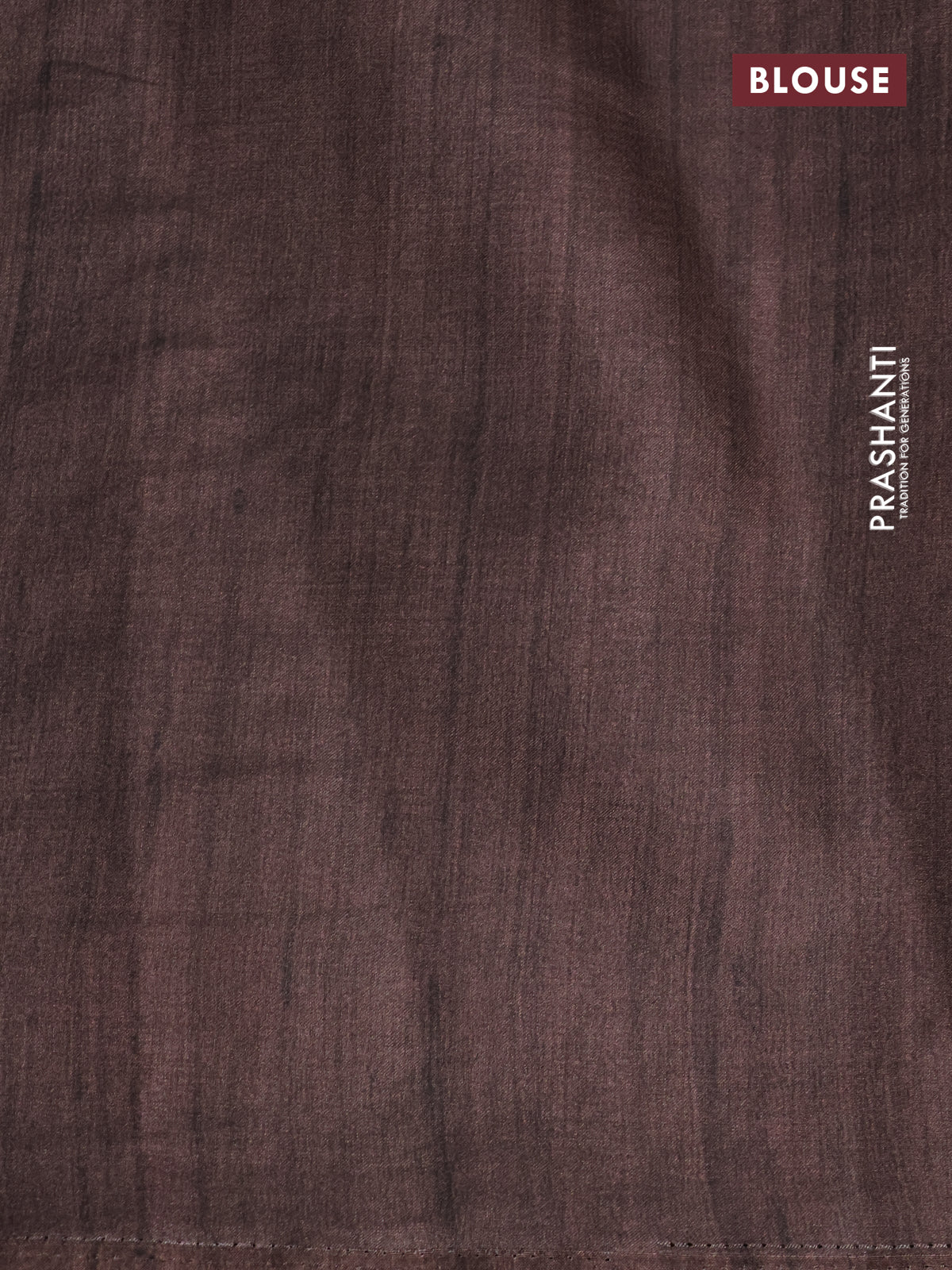 Semi tussar saree brown with embroidery & sequin work buttas and kalamkari printed border