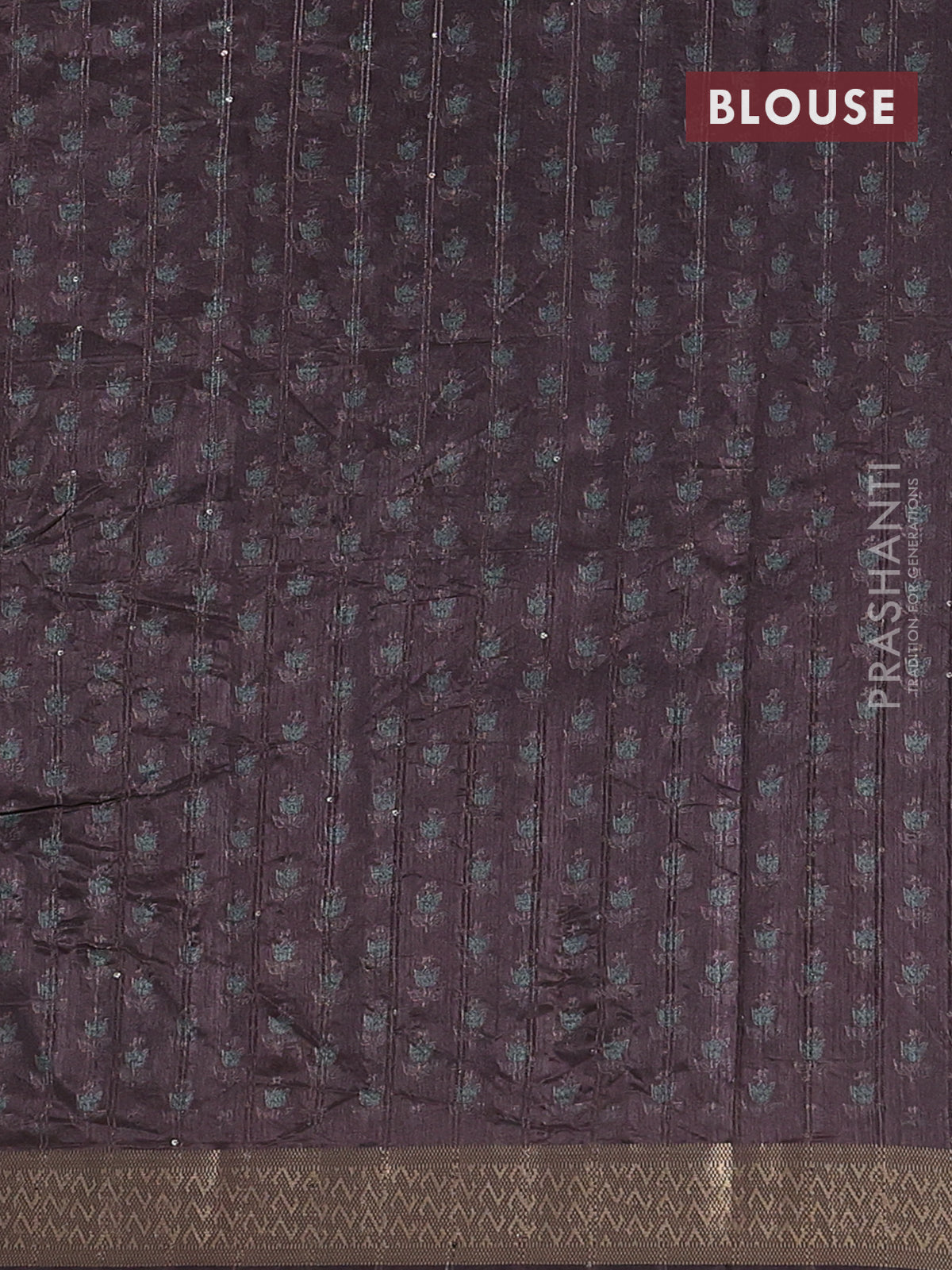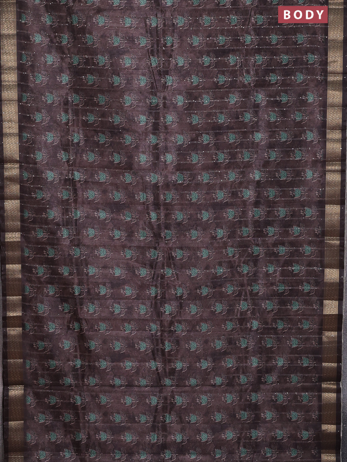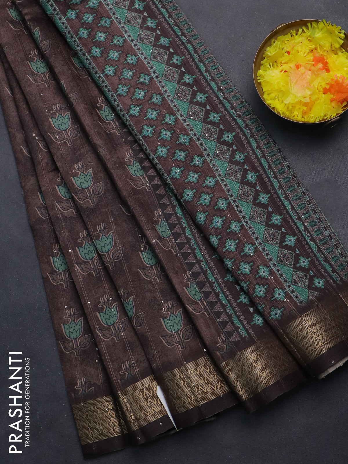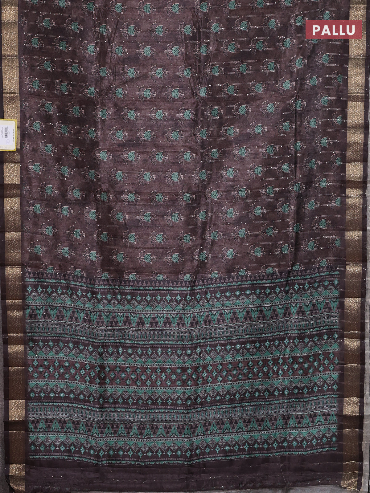 Semi tussar saree brown with floral butta prints & sequin work and zari woven border