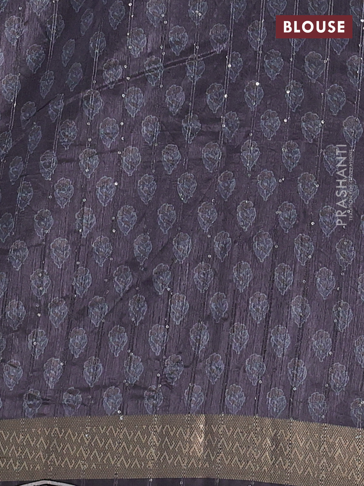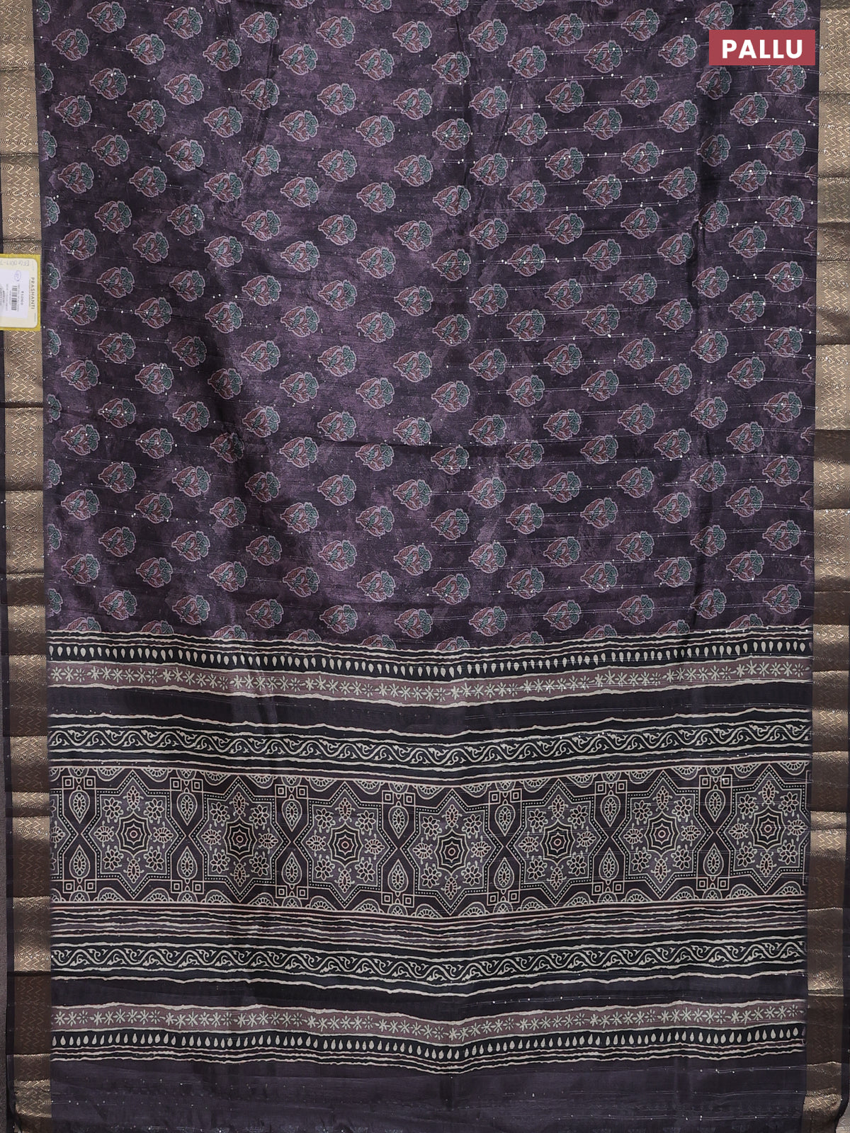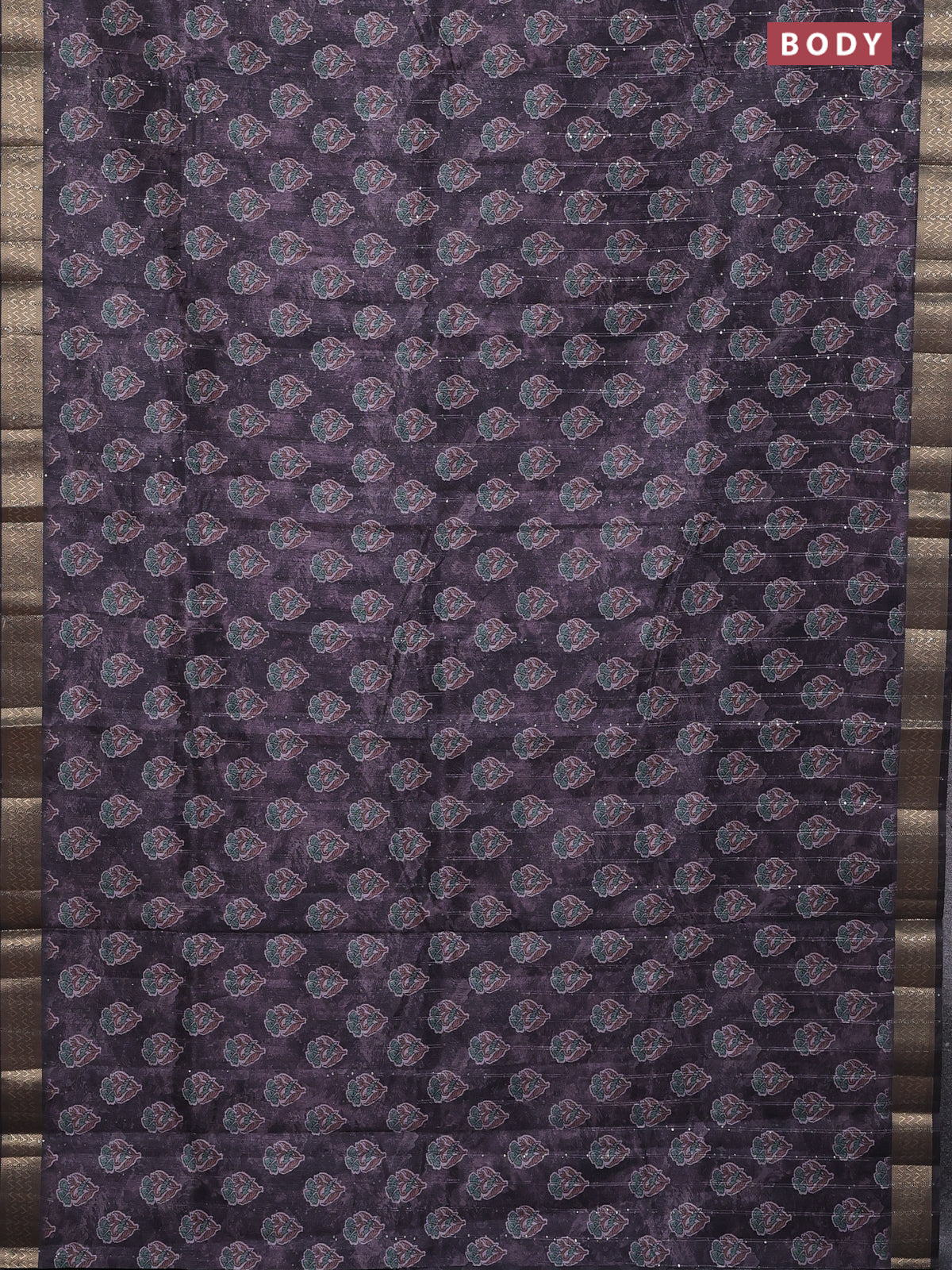 Semi tussar saree brown with floral butta prints & sequin work and zari woven border