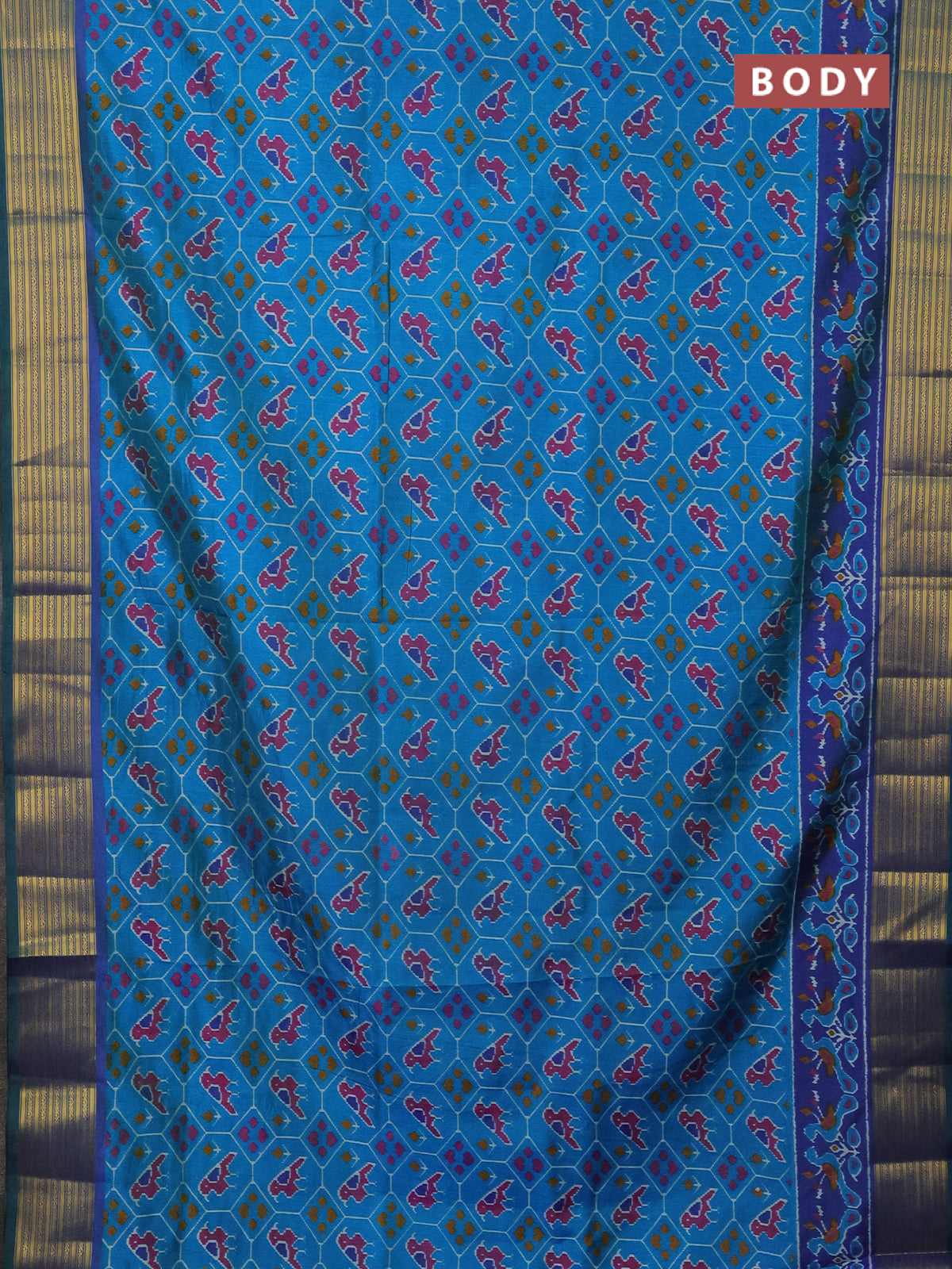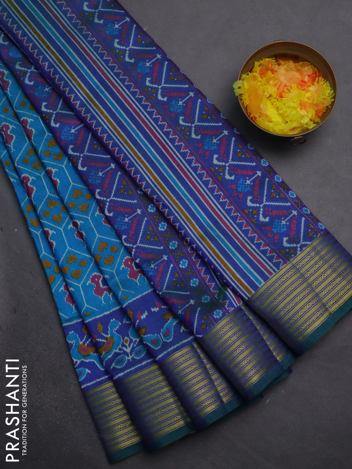Semi tussar saree cs blue and blue with allover patola prints and zari woven border