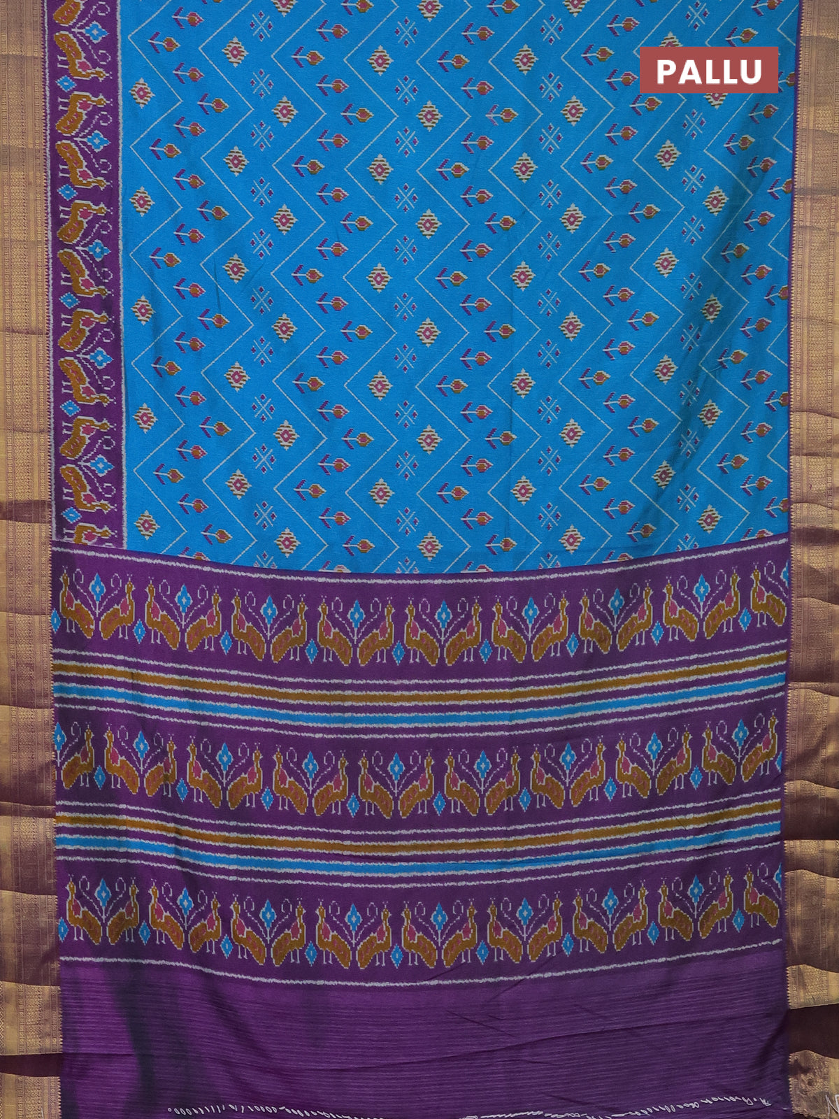 Semi tussar saree cs blue and purple with allover ikat prints and zari woven border