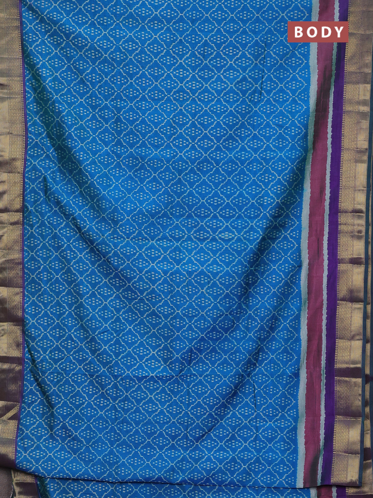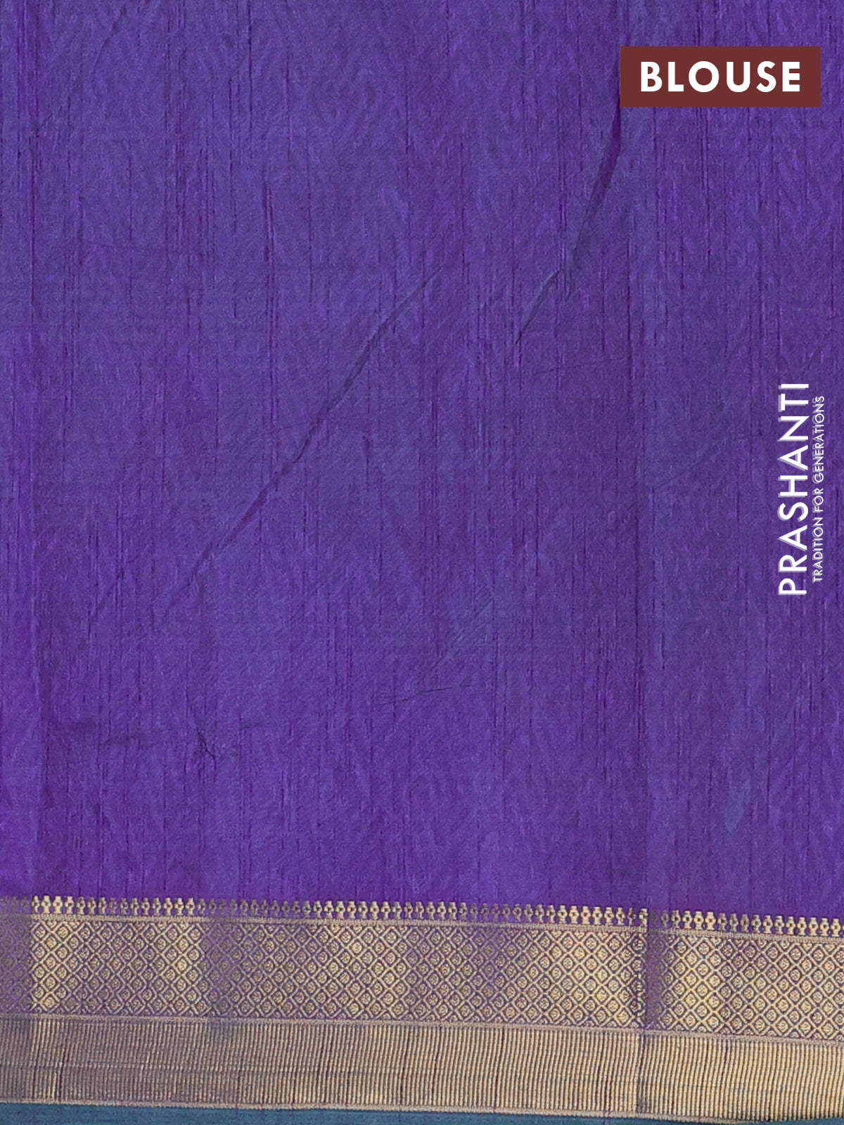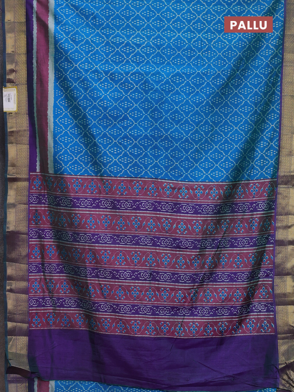 Semi tussar saree cs blue and violet with allover ikat prints and zari woven border