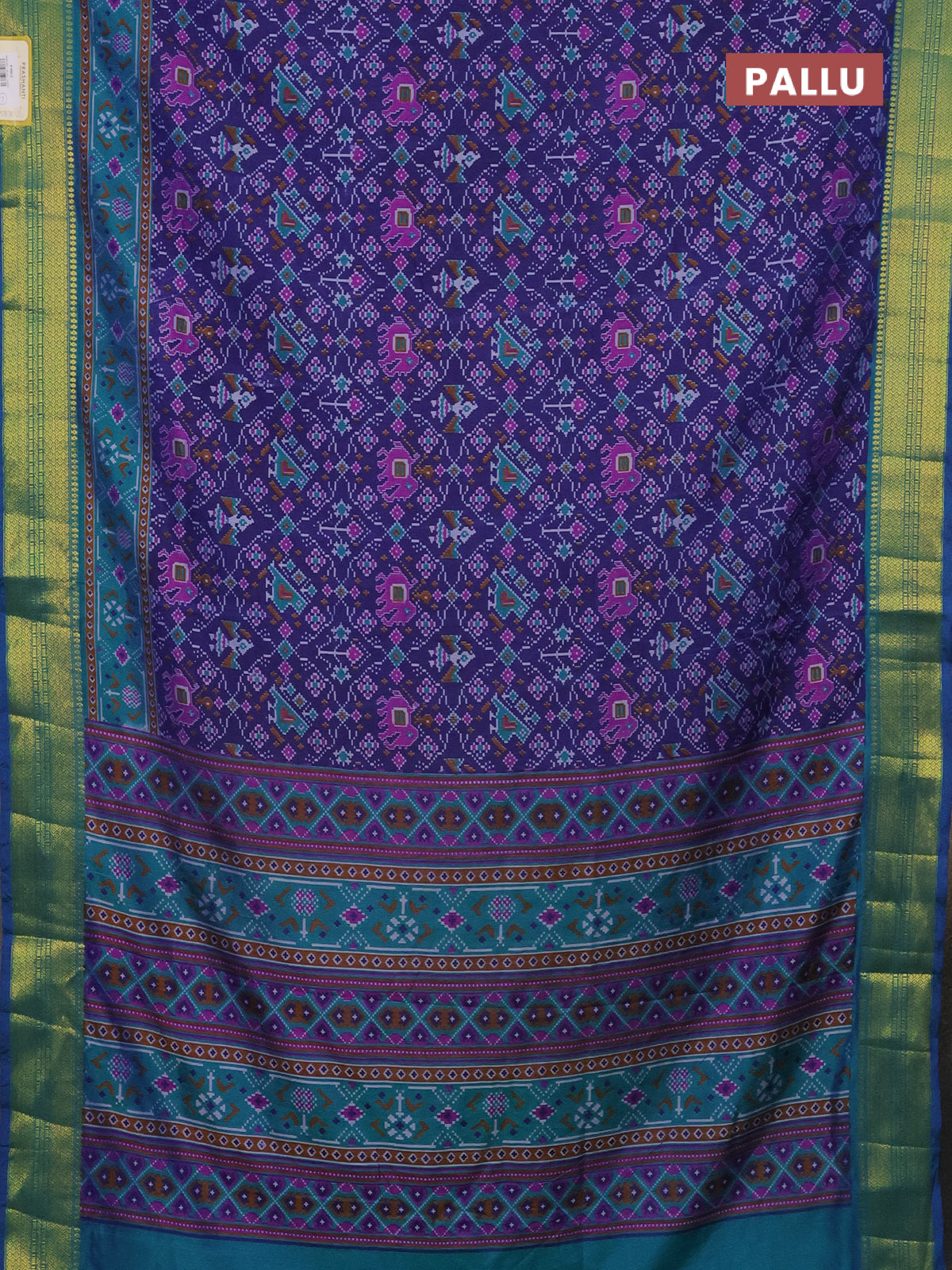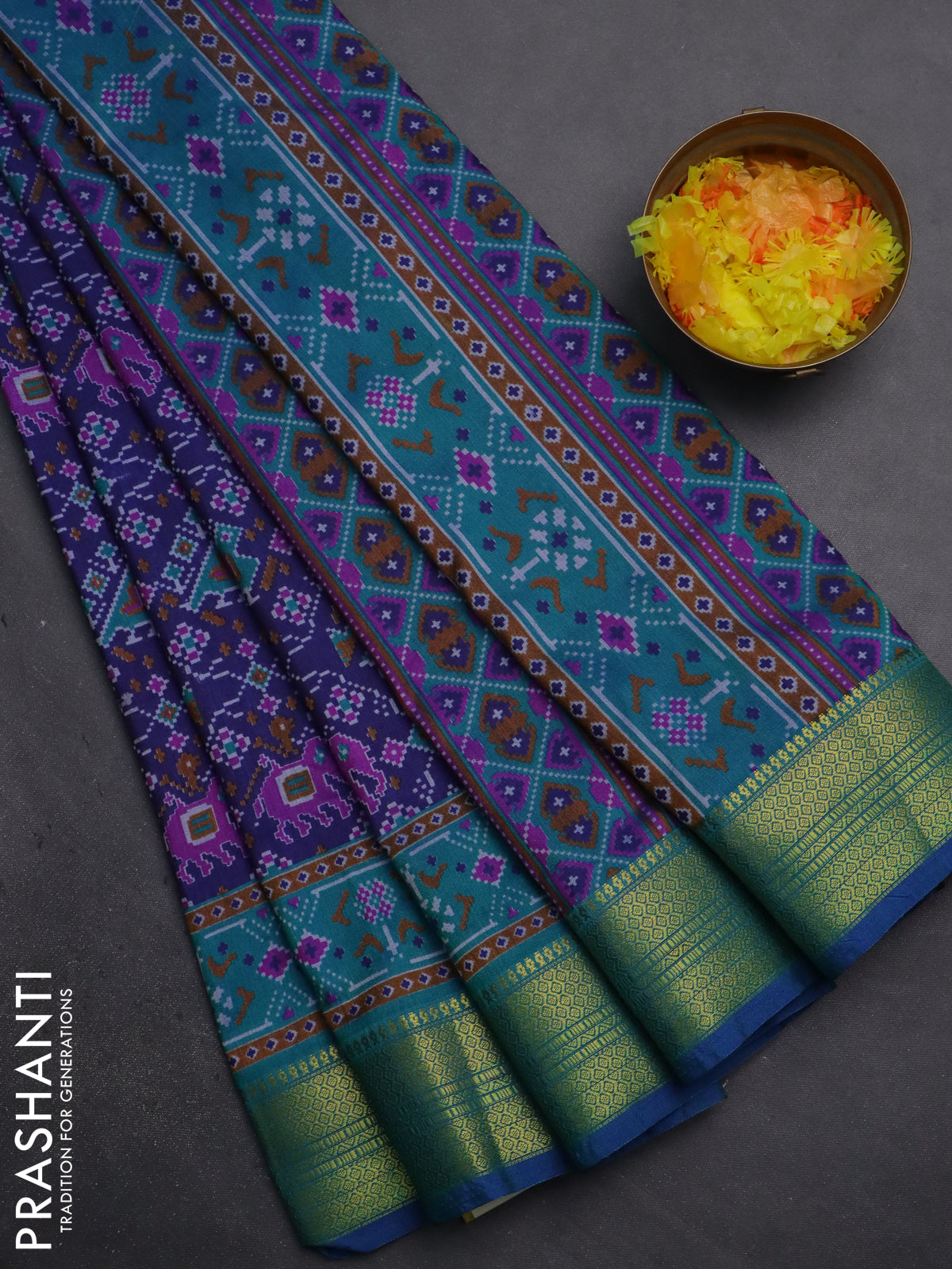 Semi tussar saree dark blue and dual shade of blue with allover patola prints and zari woven border