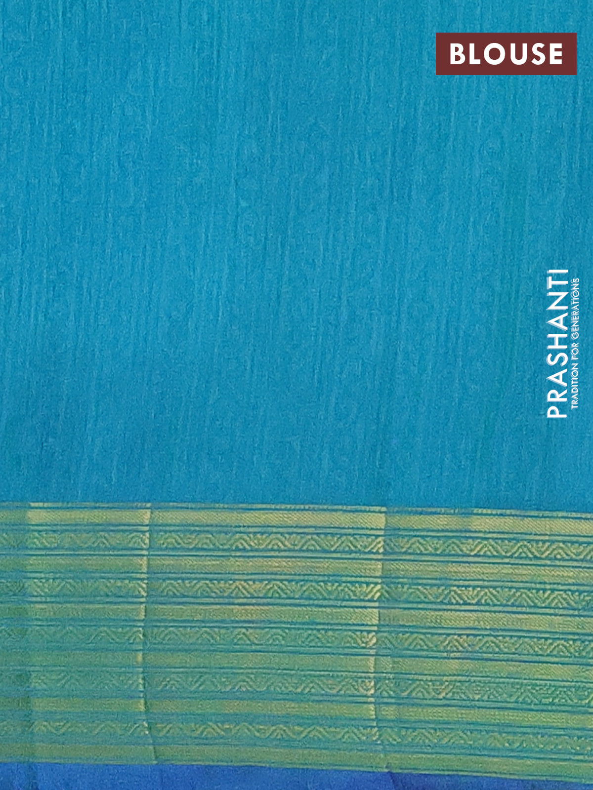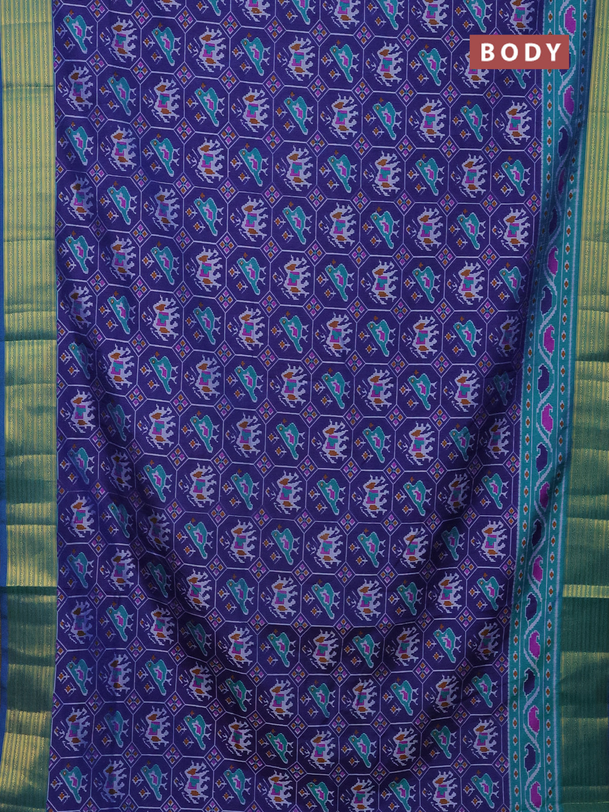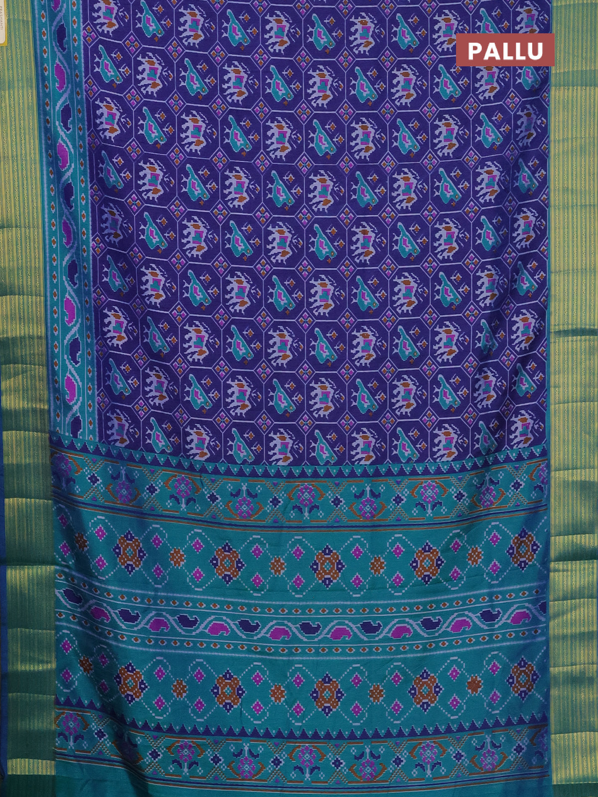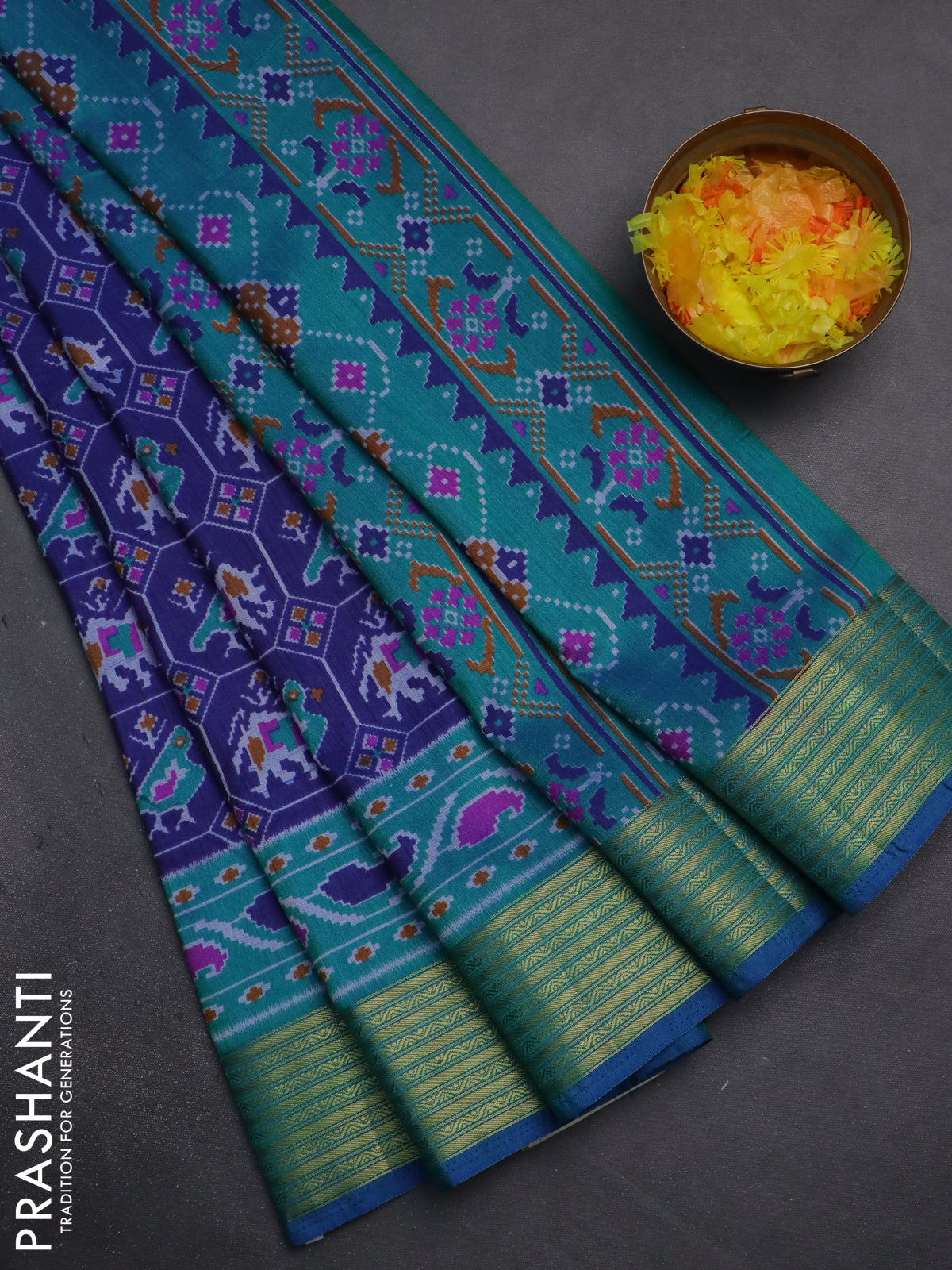 Semi tussar saree dark blue and teal green with allover patola prints and zari woven border