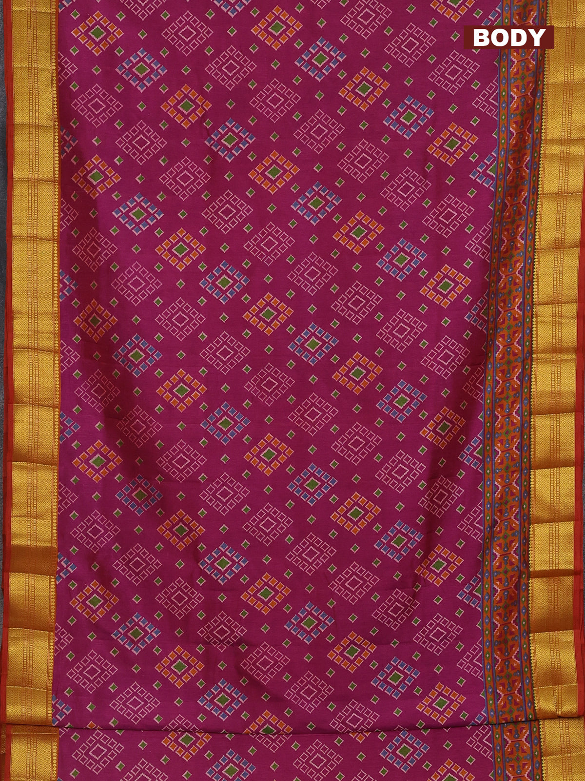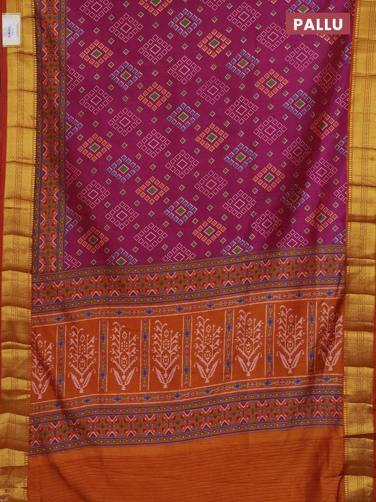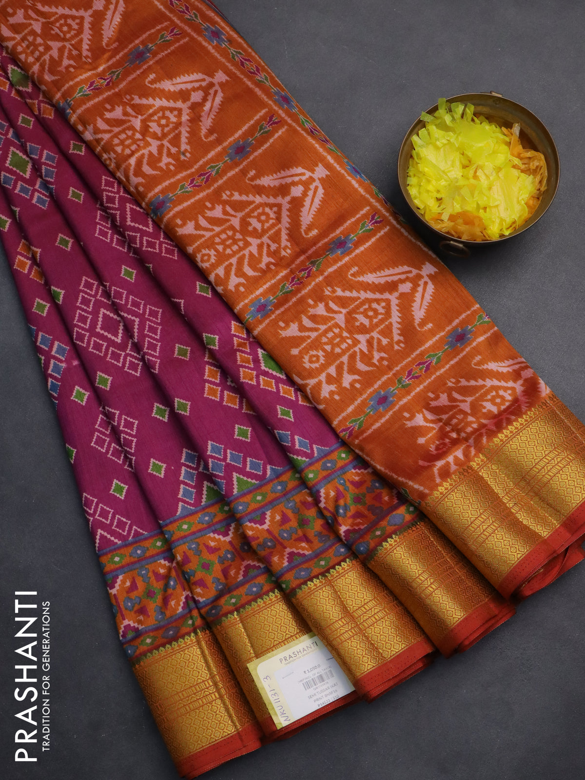 Semi tussar saree dark magenta pink and rust shade with allover ikat butta prints and zari woven border