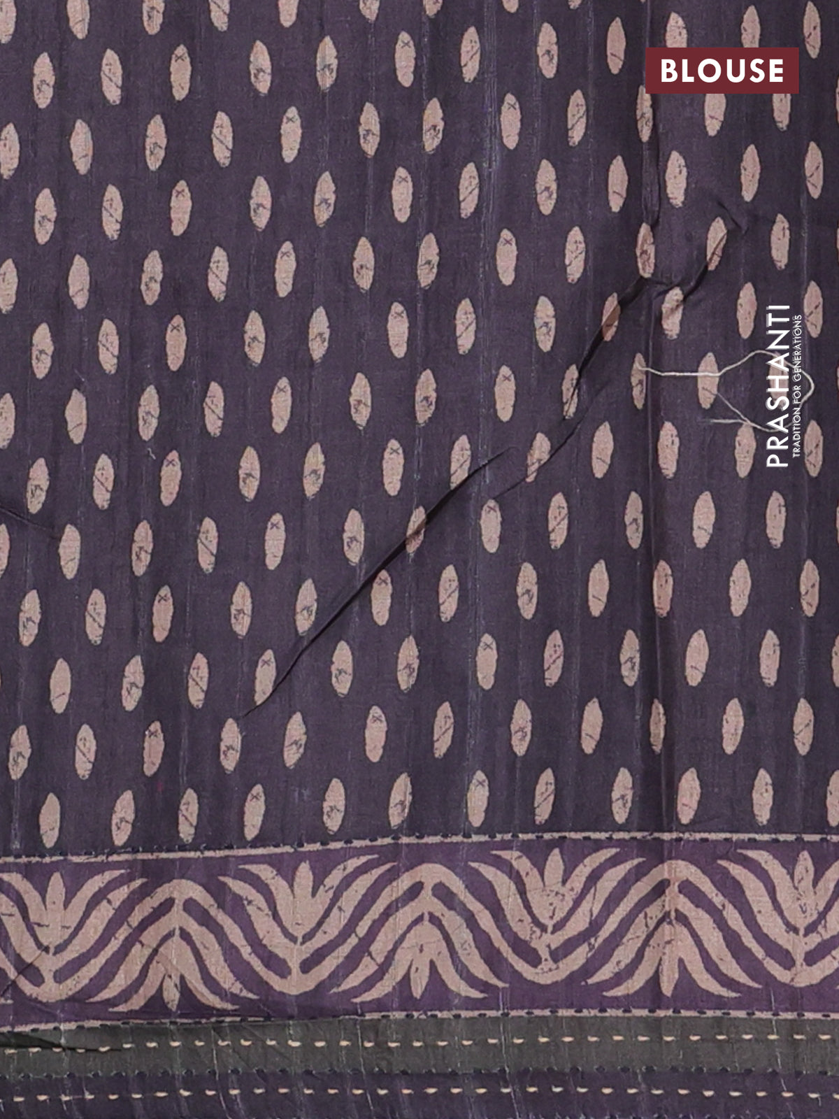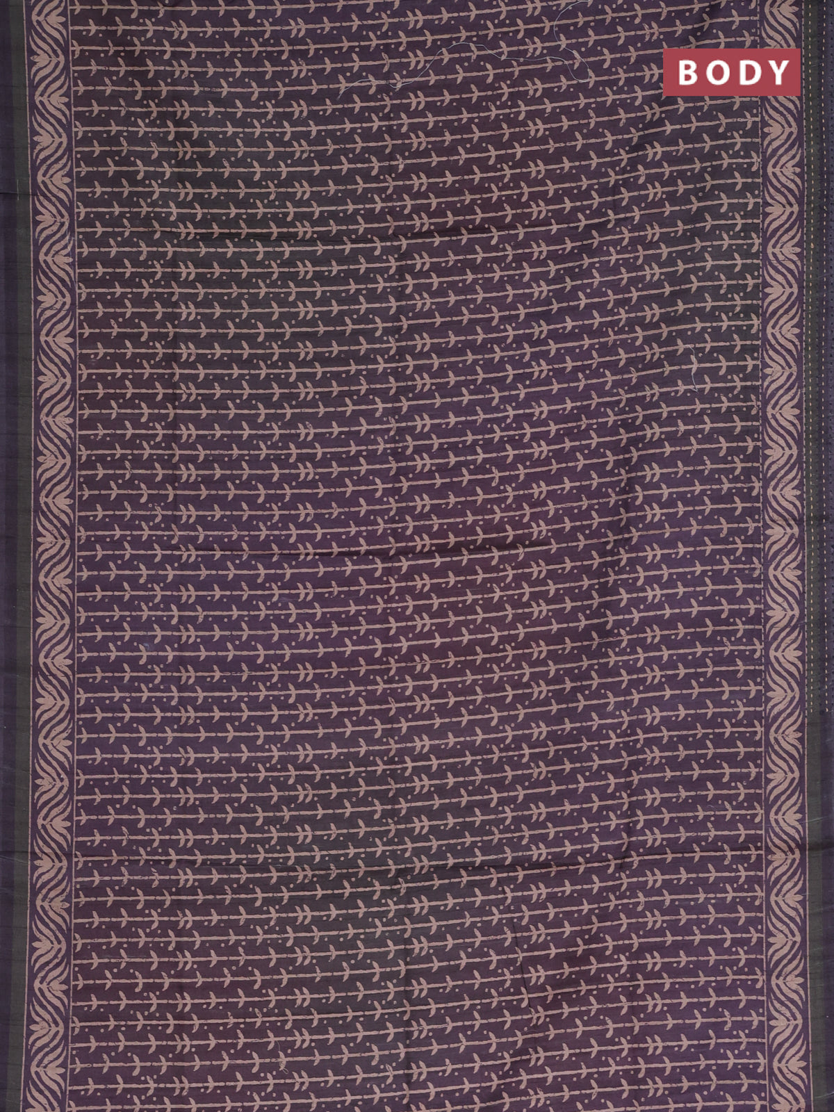 Semi tussar saree deep jamun shade with allover prints and kantha stitch work border