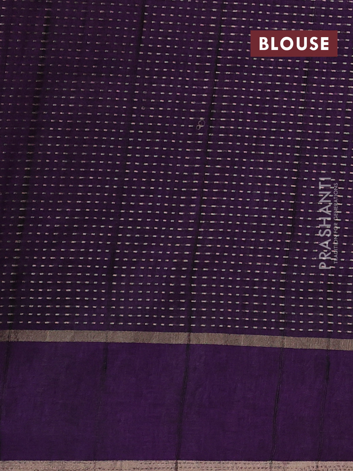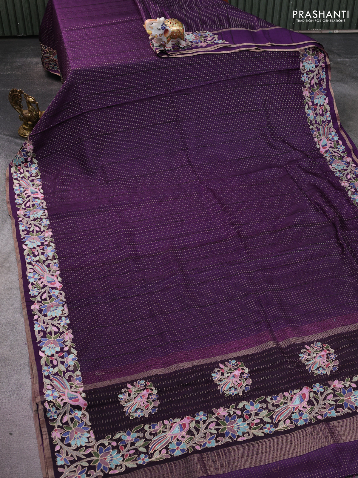 Semi tussar saree deep purple with zari weaves and embroidery border
