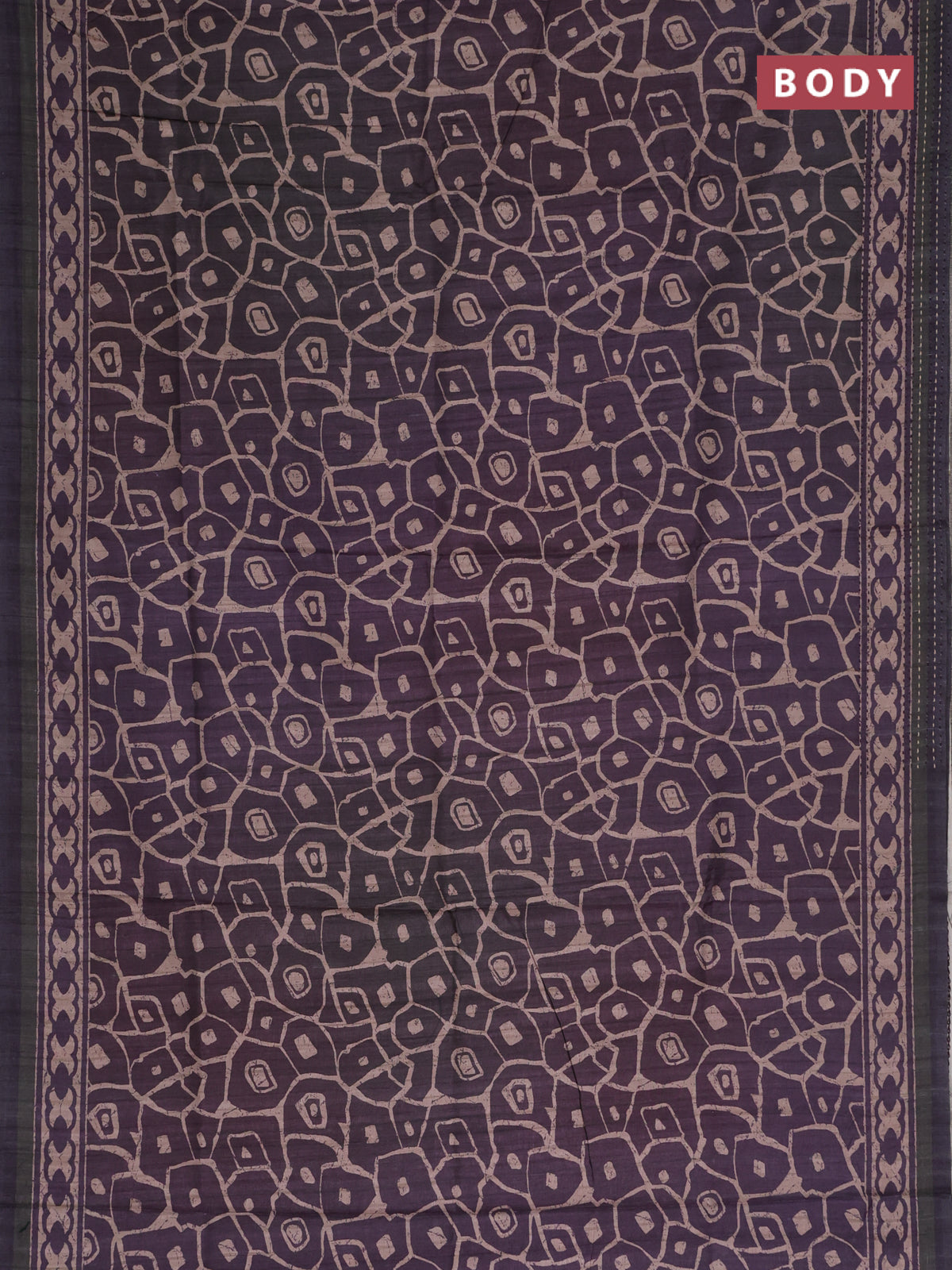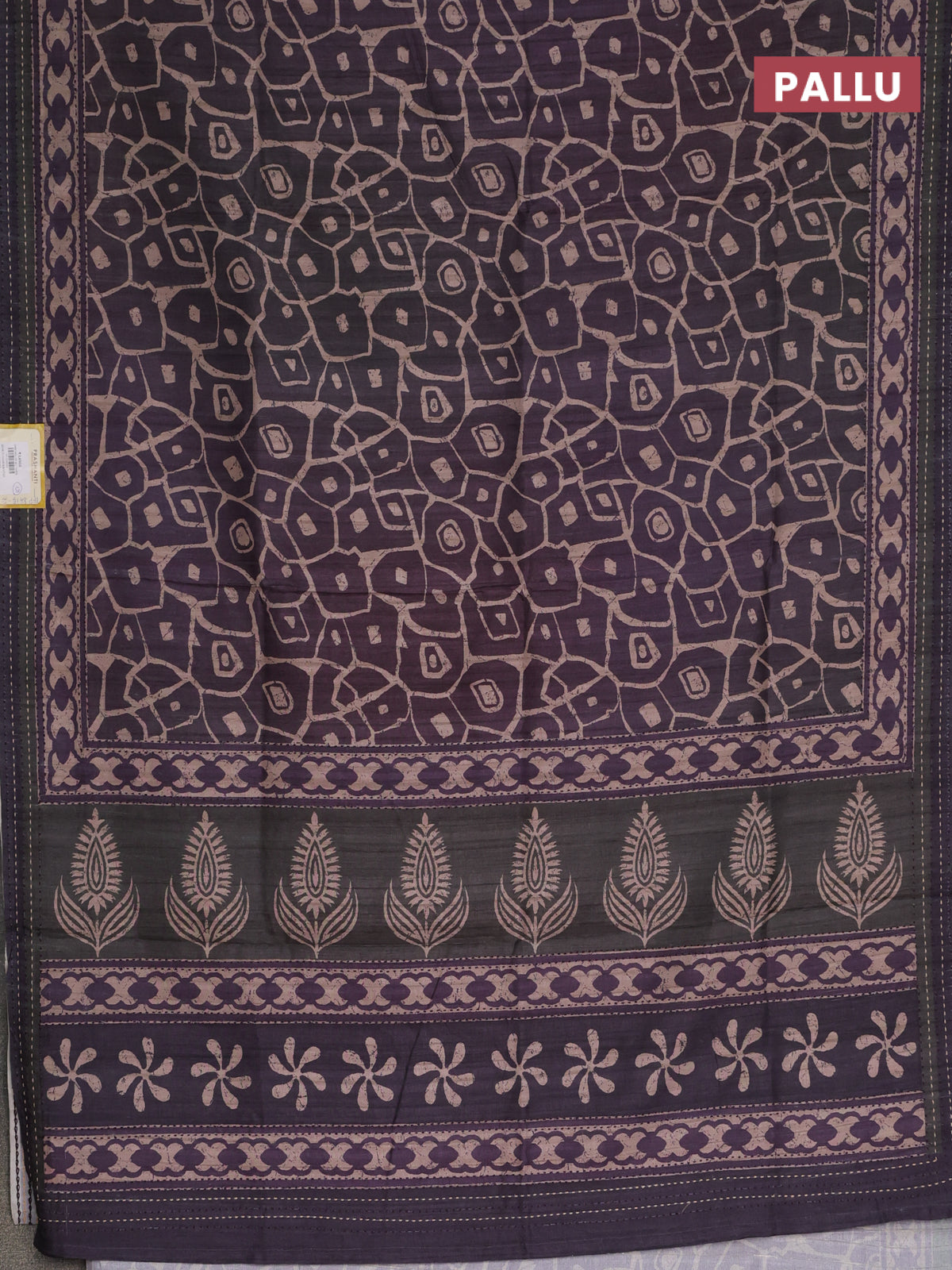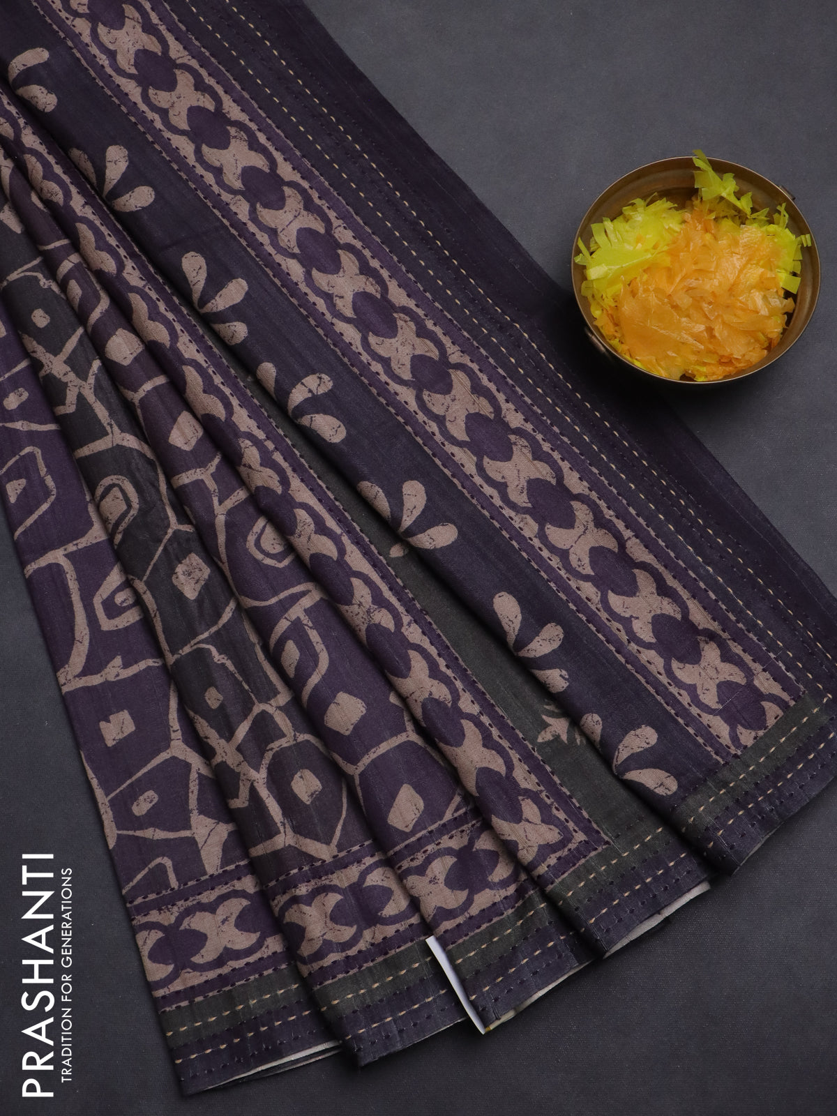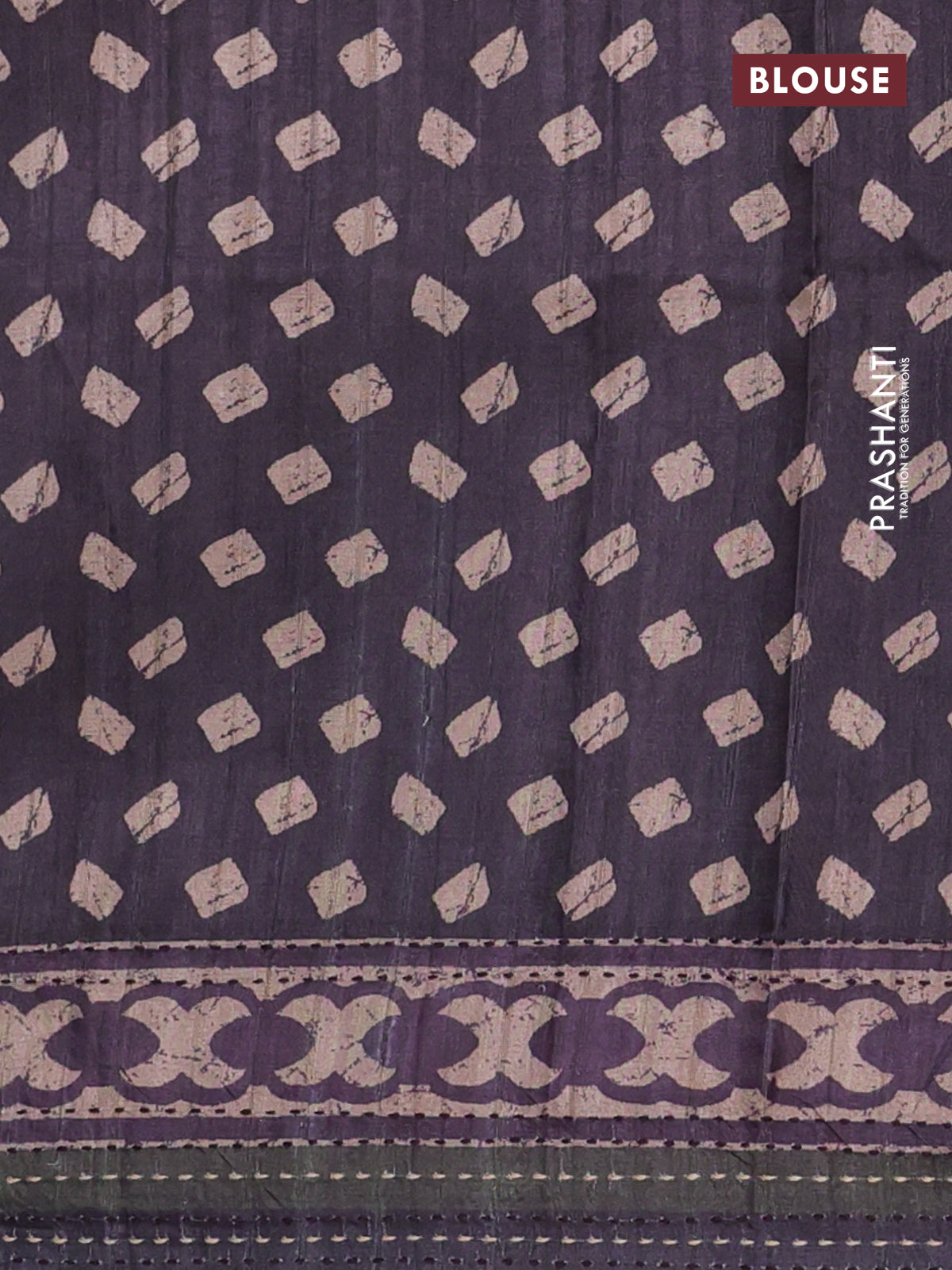 Semi tussar saree deep wine with allover prints and kantha stitch work border