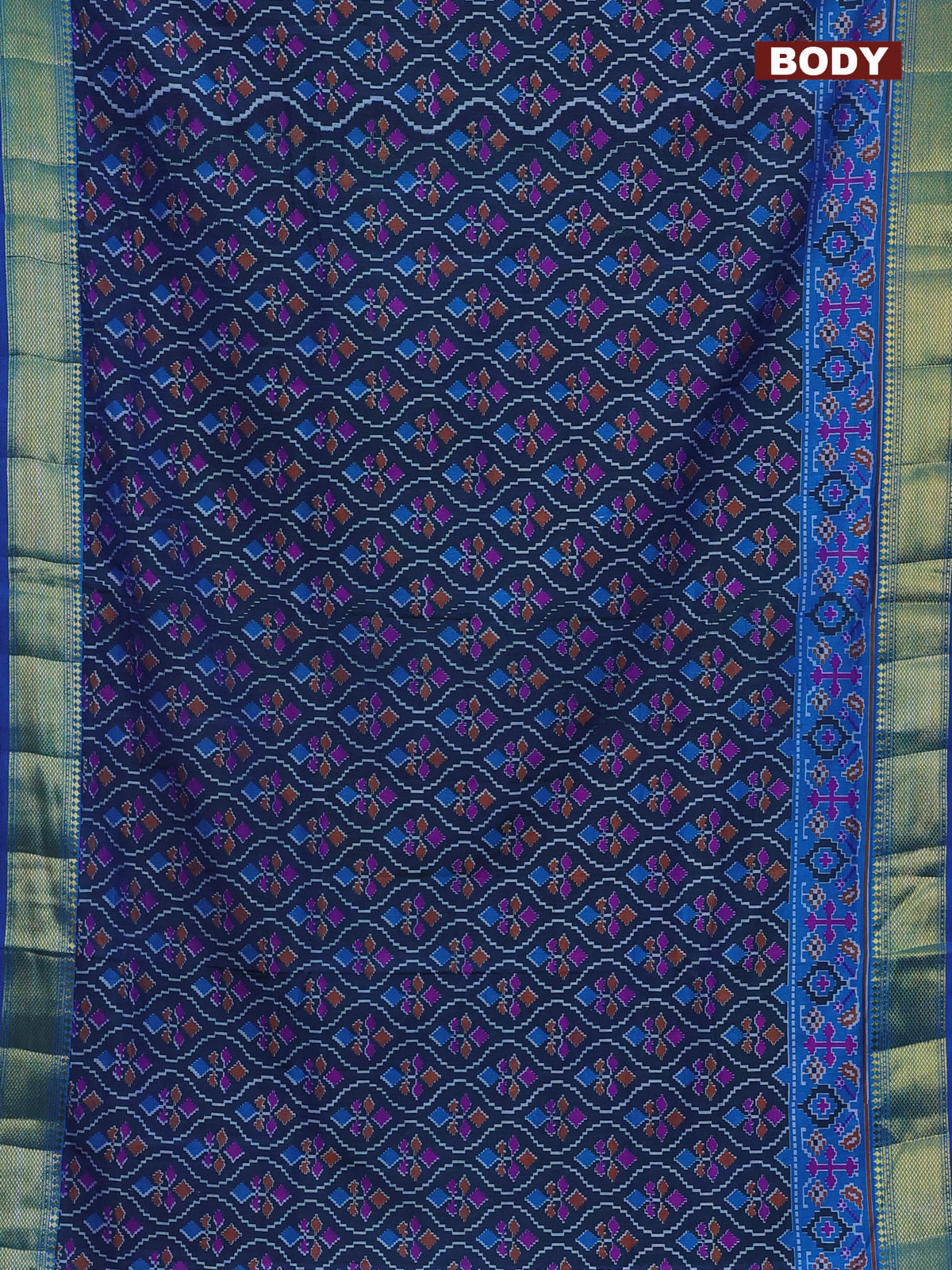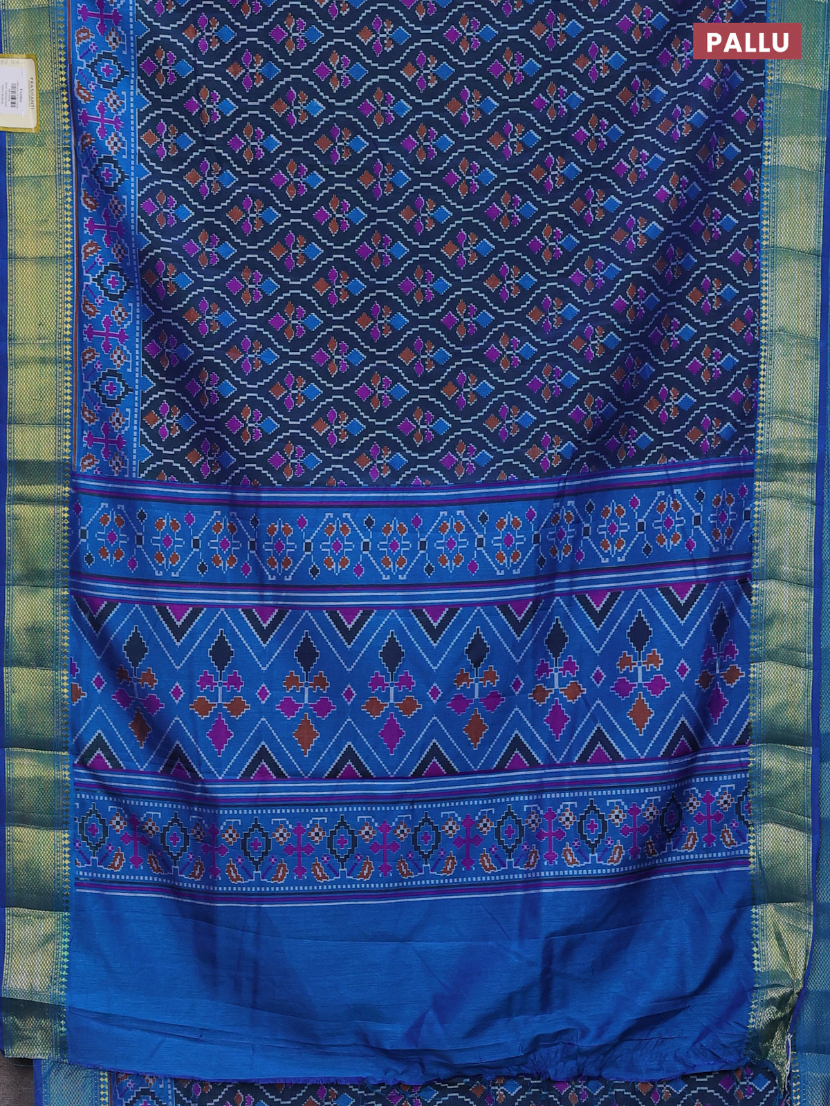 Semi tussar saree dual shade of bluish green and blue with allover ikat prints and zari woven border
