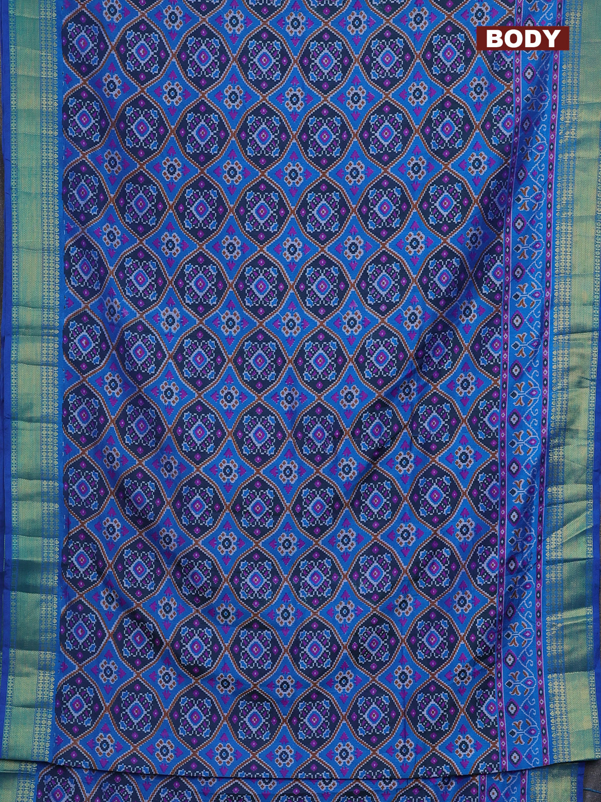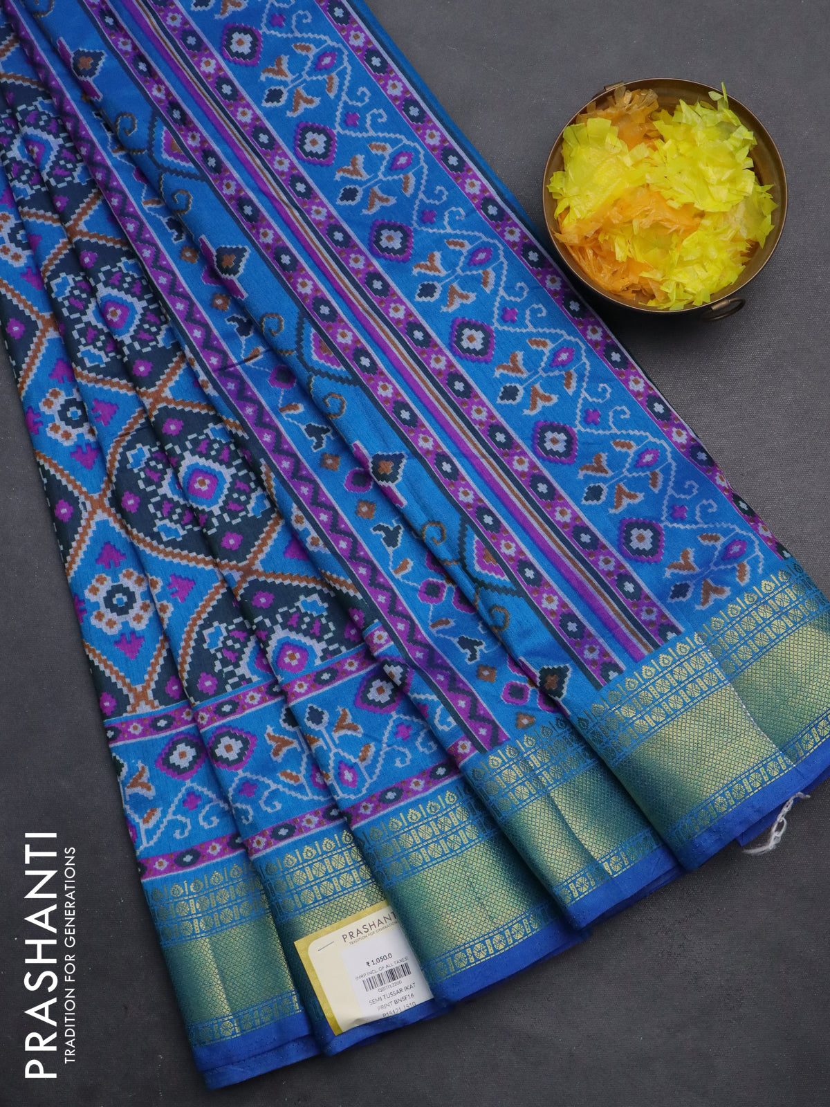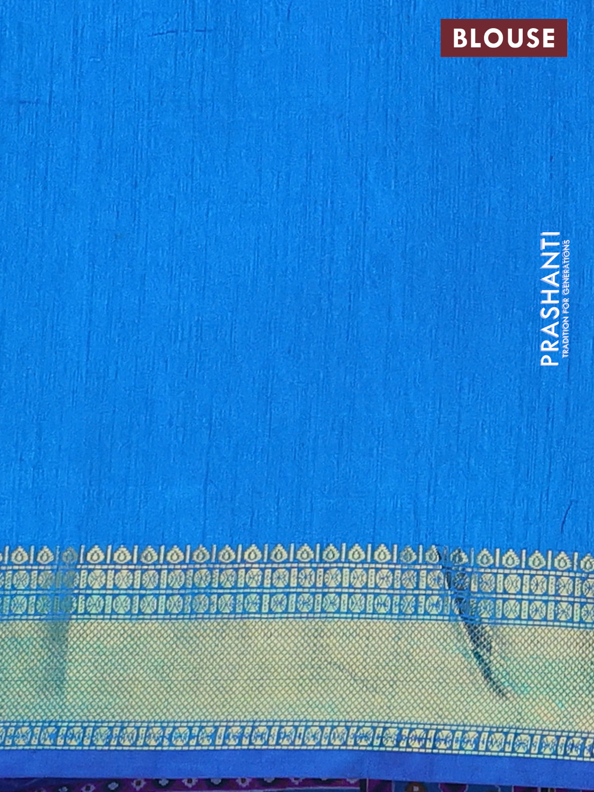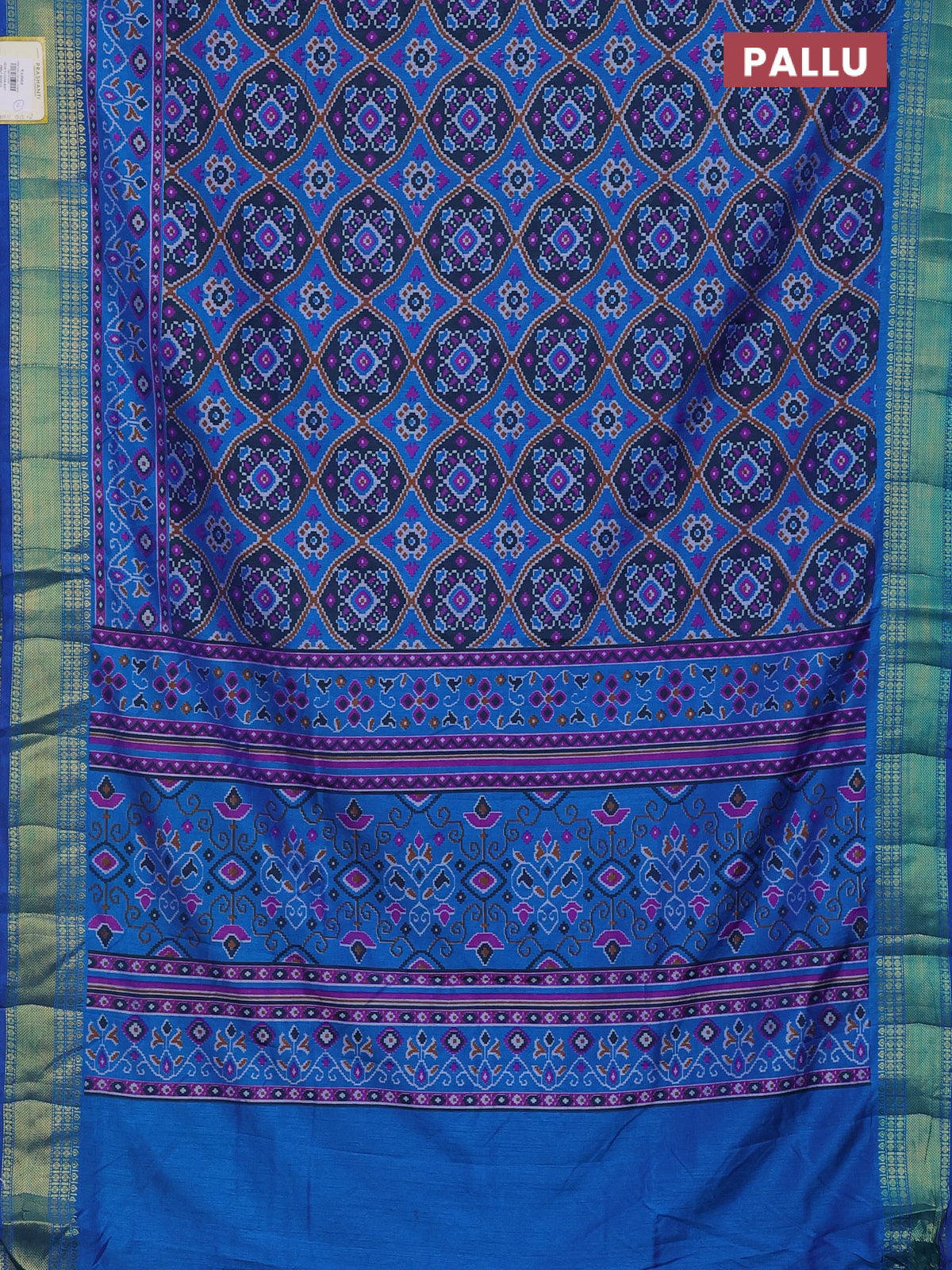 Semi tussar saree dual shade of bluish green and cs blue with allover ikat prints and zari woven border