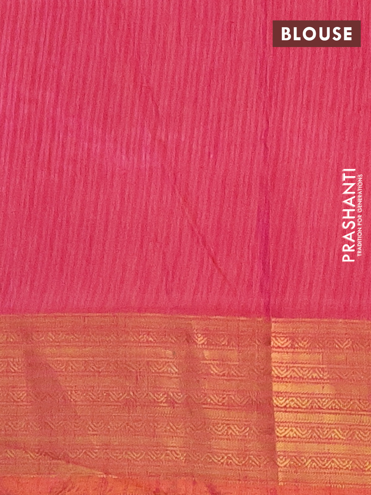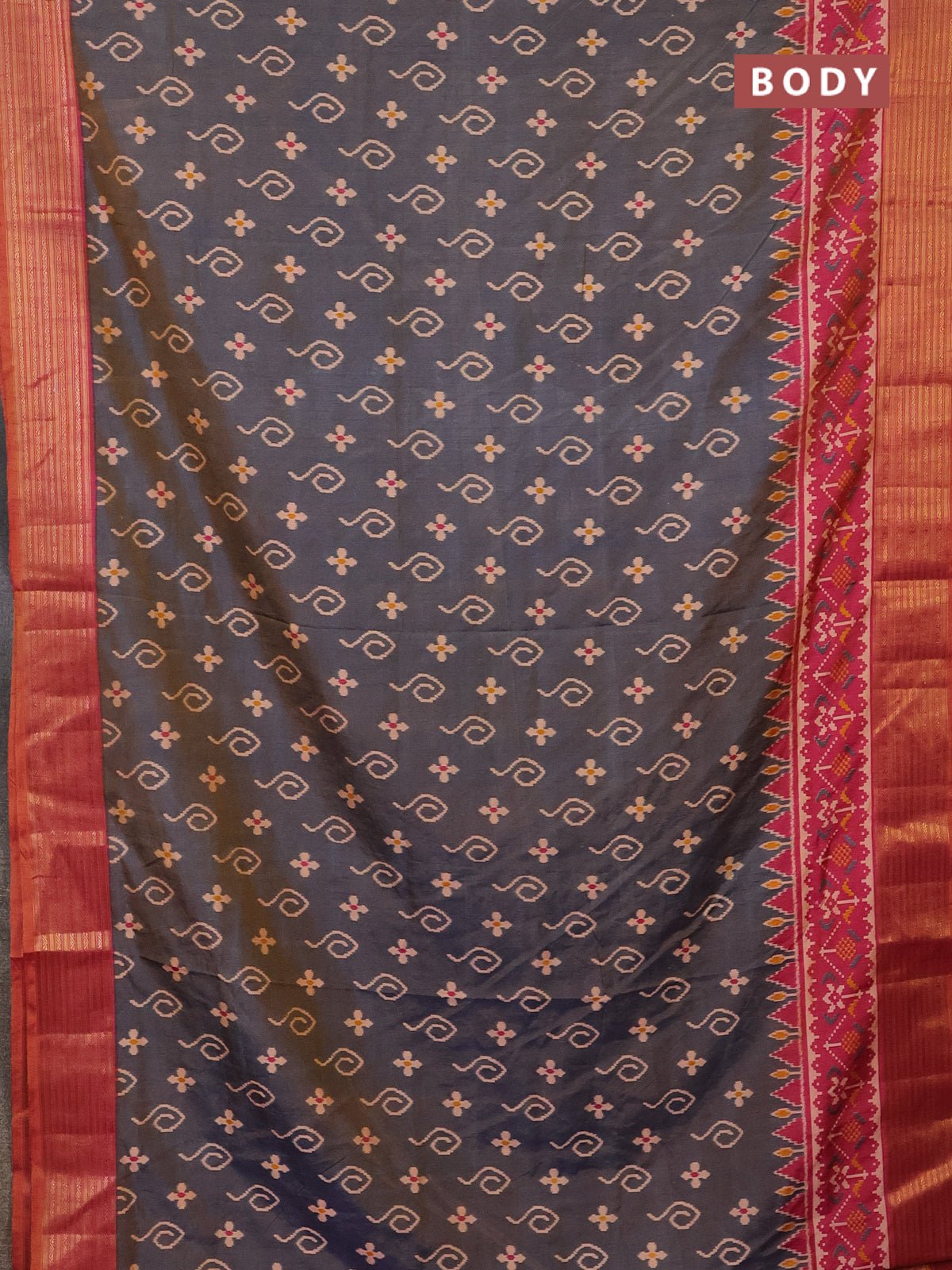 Semi tussar saree dual shade of bluish grey and dual shade of pink with allover ikat butta prints and zari woven border