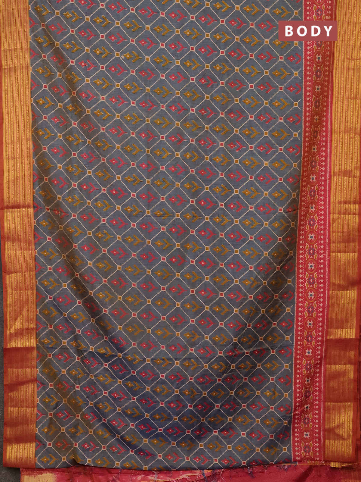 Semi tussar saree dual shade of bluish grey and dual shade of pink with allover ikat prints and zari woven border
