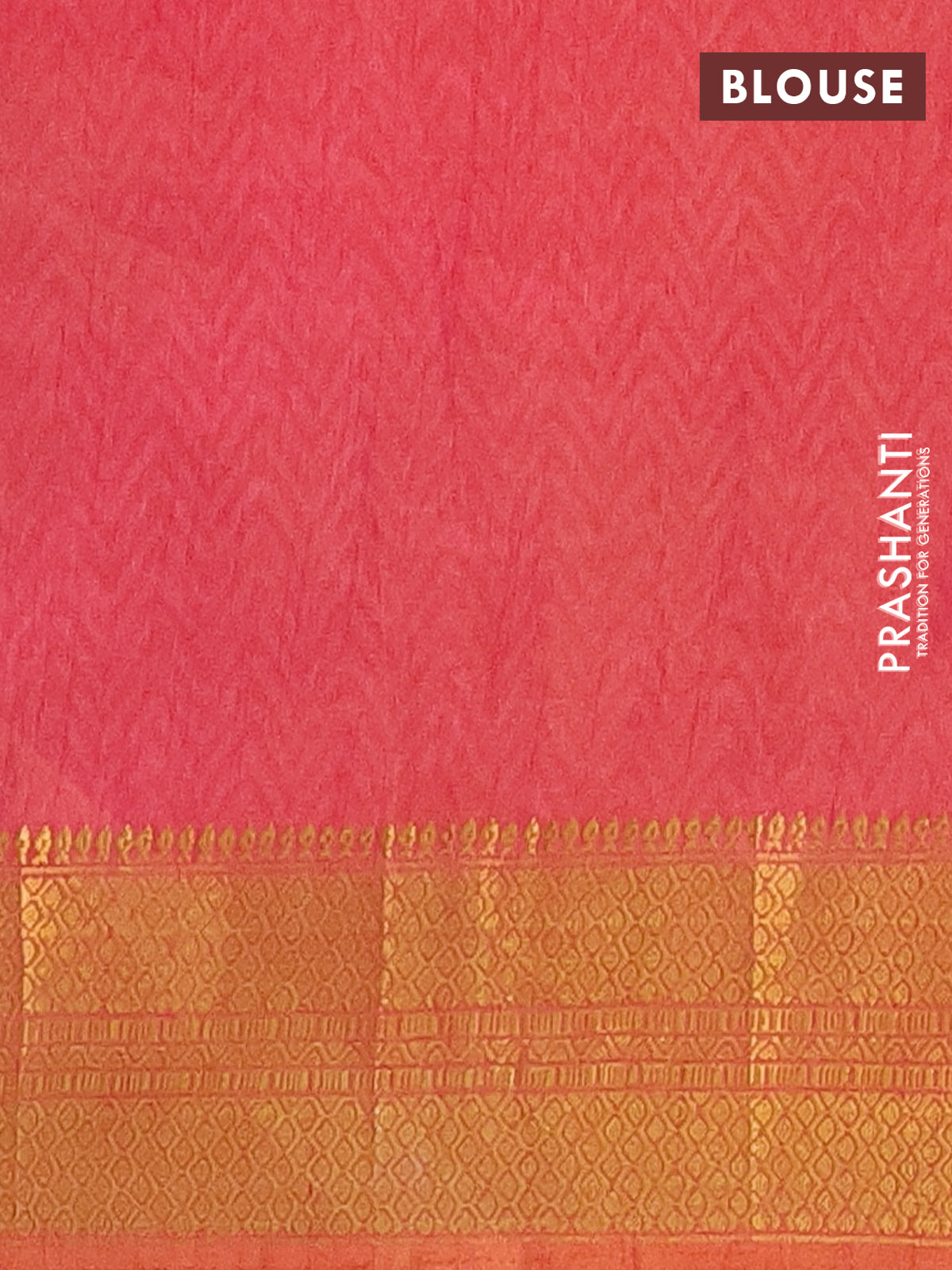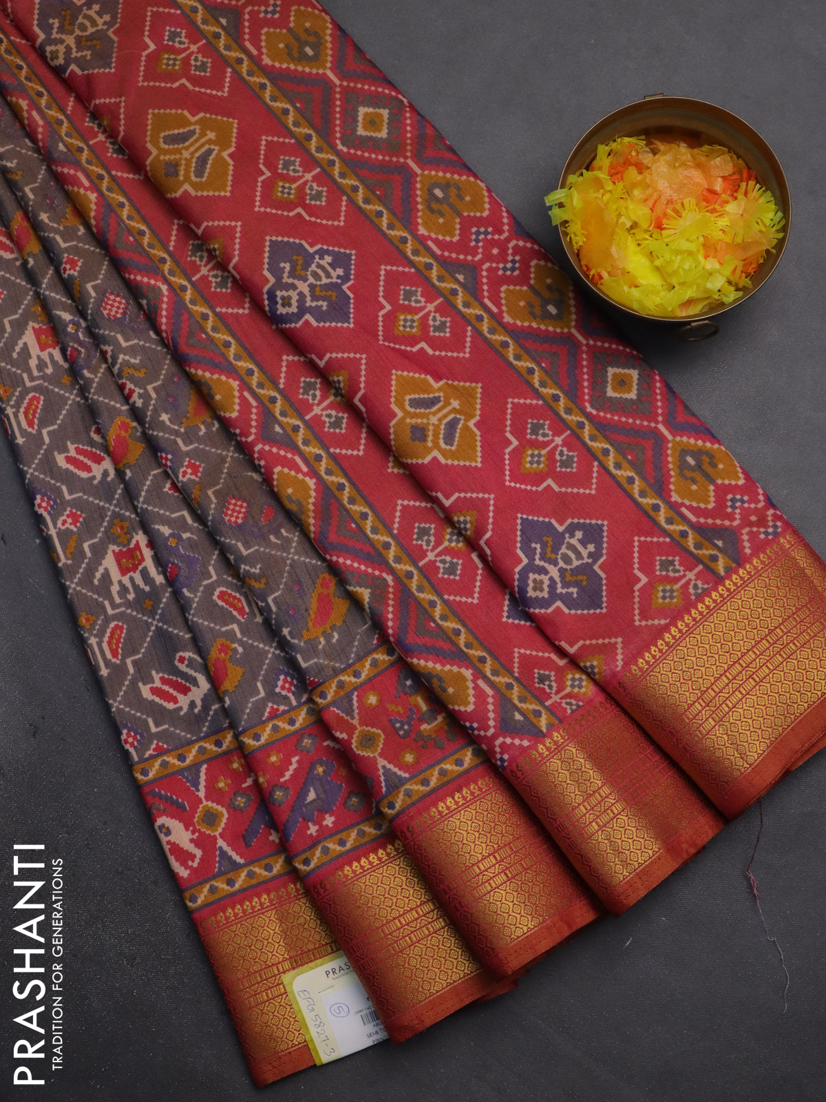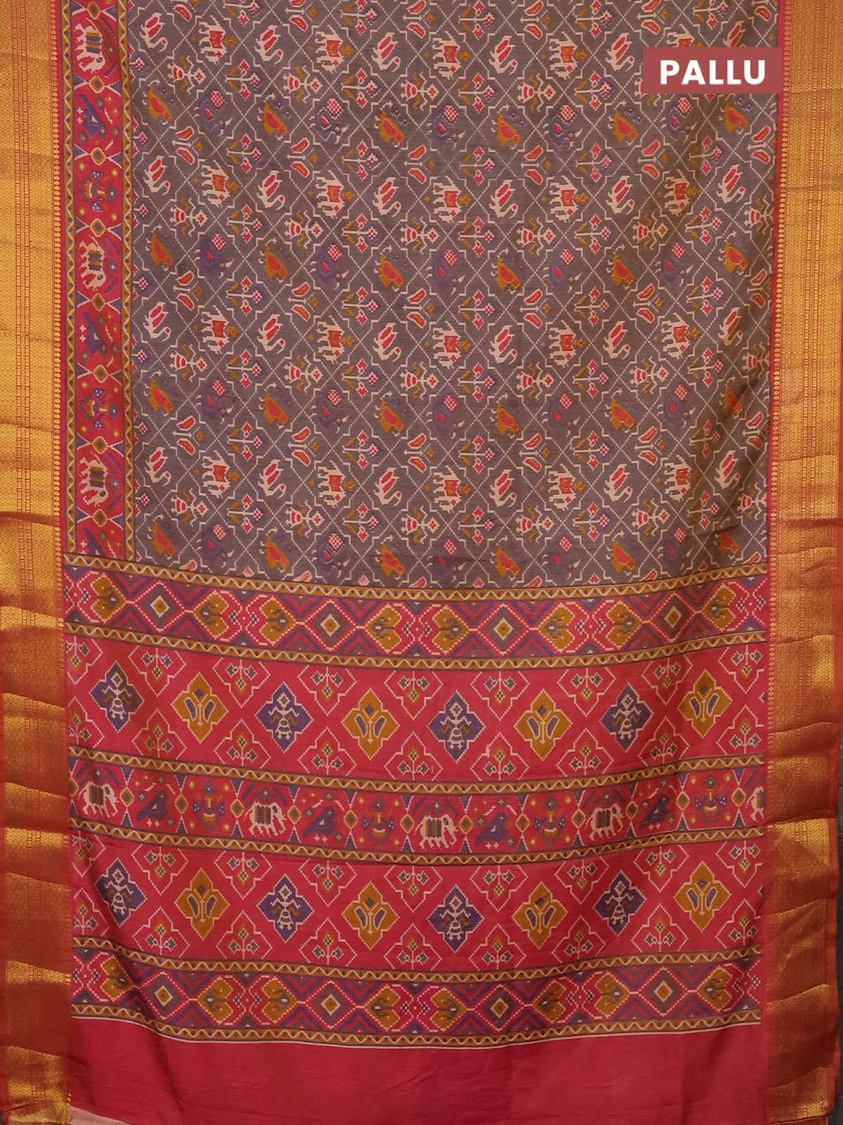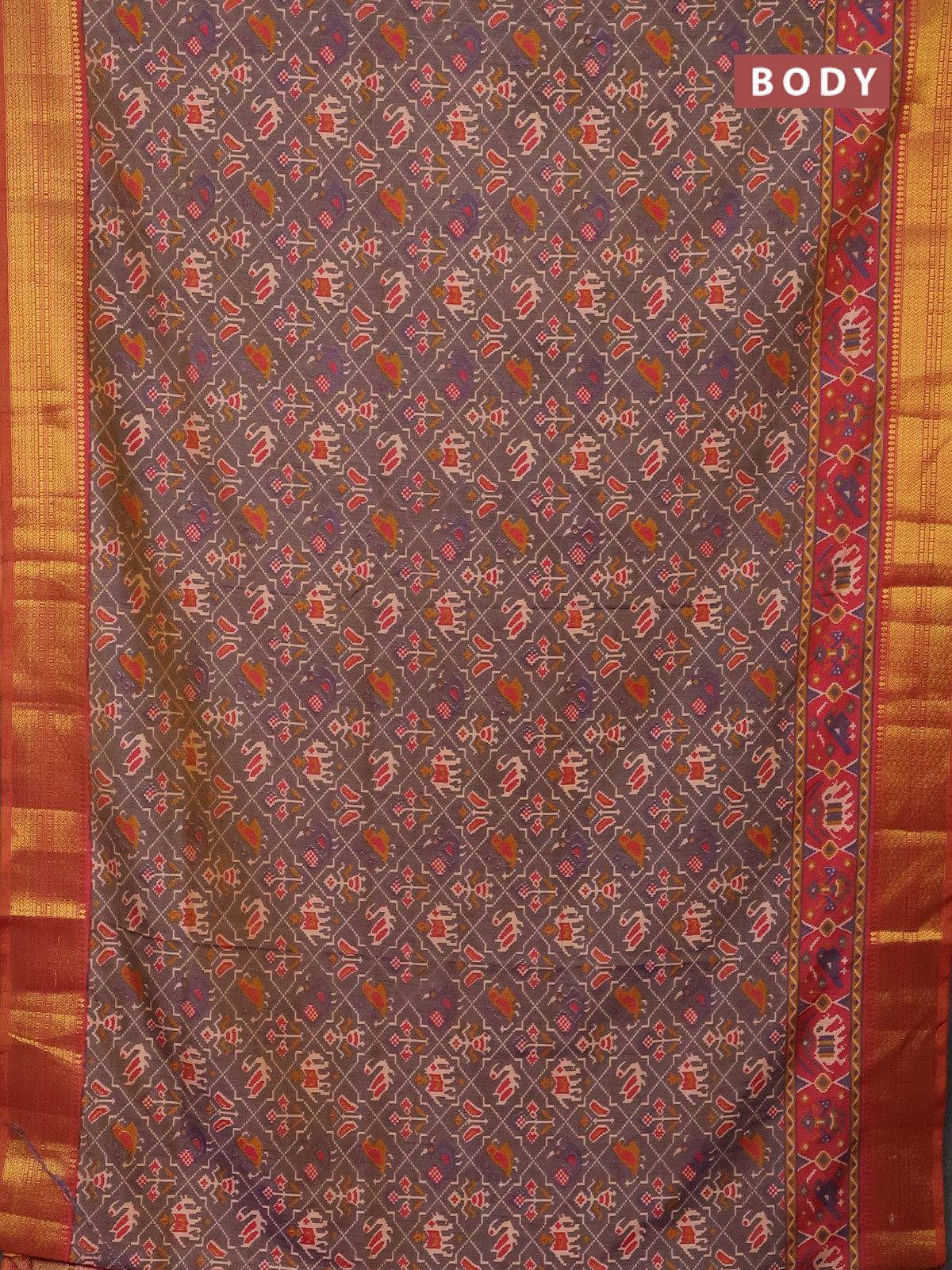 Semi tussar saree dual shade of bluish grey and dual shade of pink with allover patola prints and zari woven border
