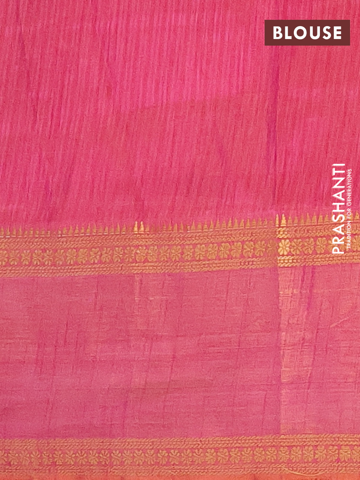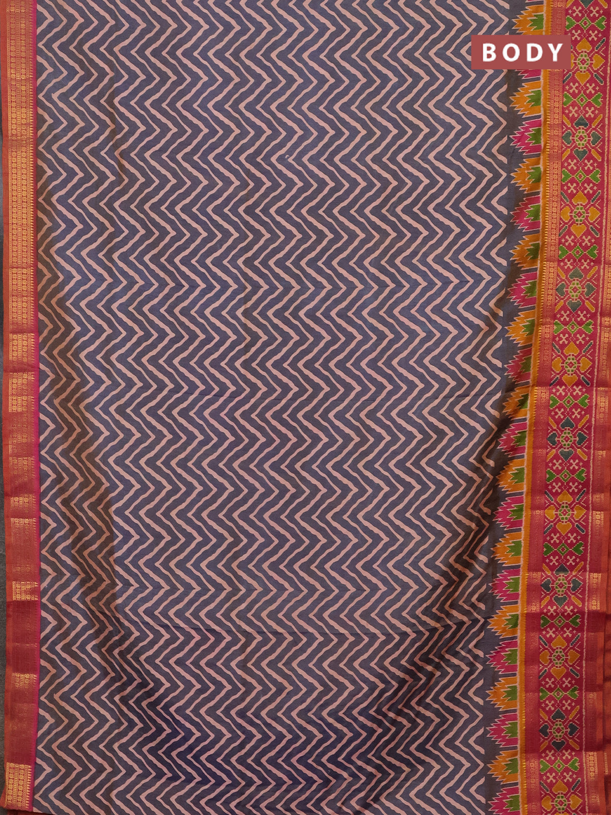 Semi tussar saree dual shade of bluish grey and pink with allover zig zag prints and zari woven ikat border