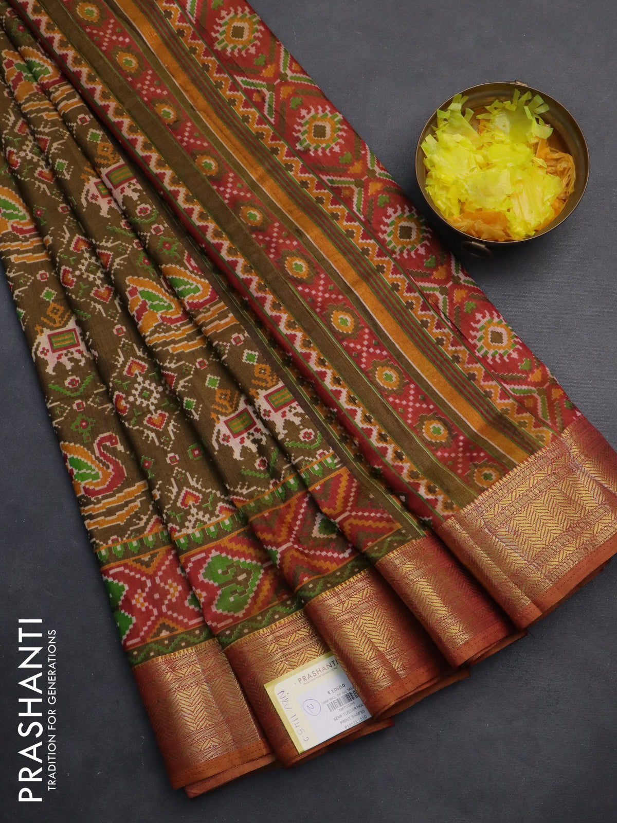 Material : Semi Tussar Blouse : Attached Length of saree : 6.2 mts (5.5 mts saree & 70 cms blouse)... Read more