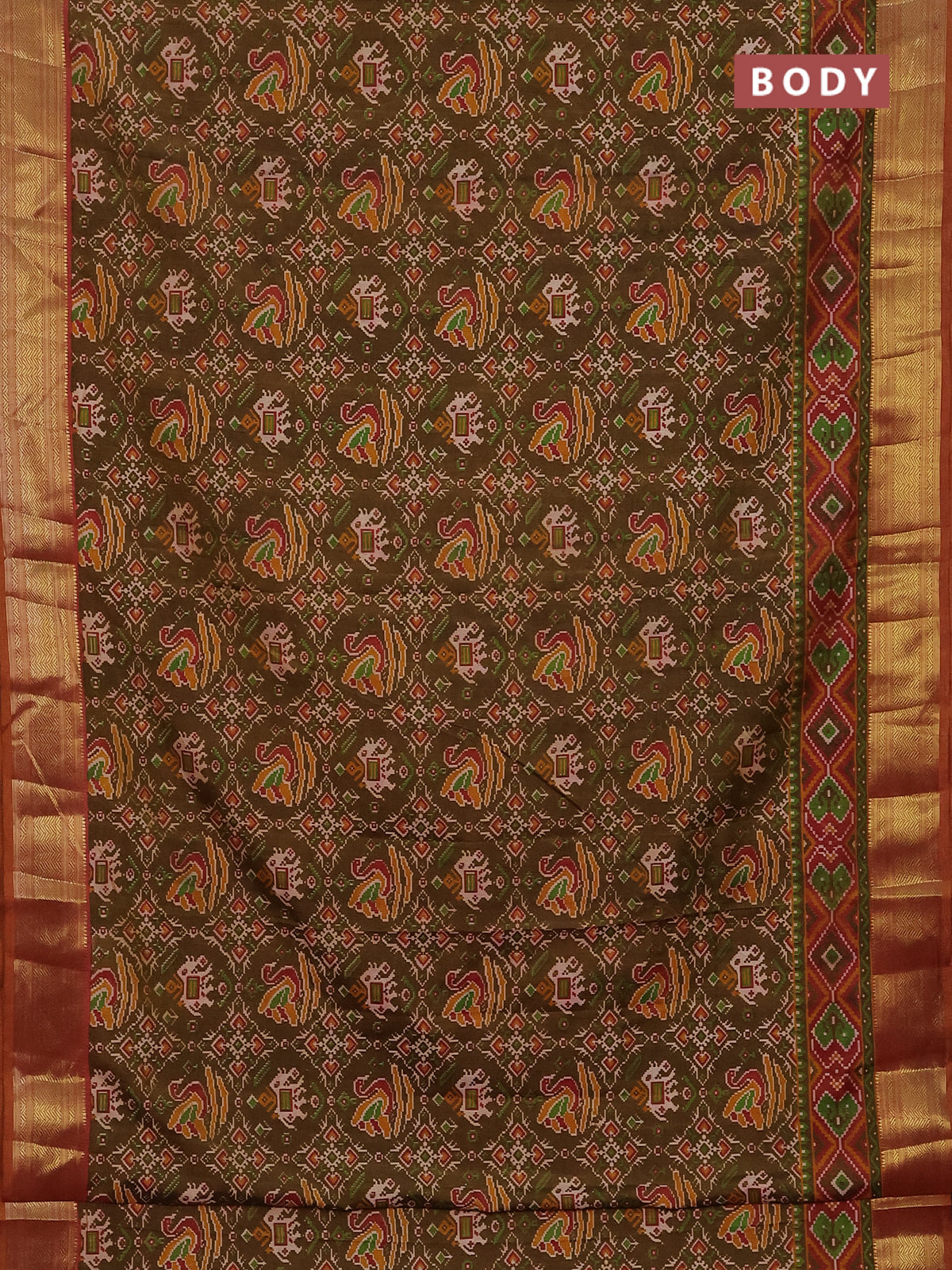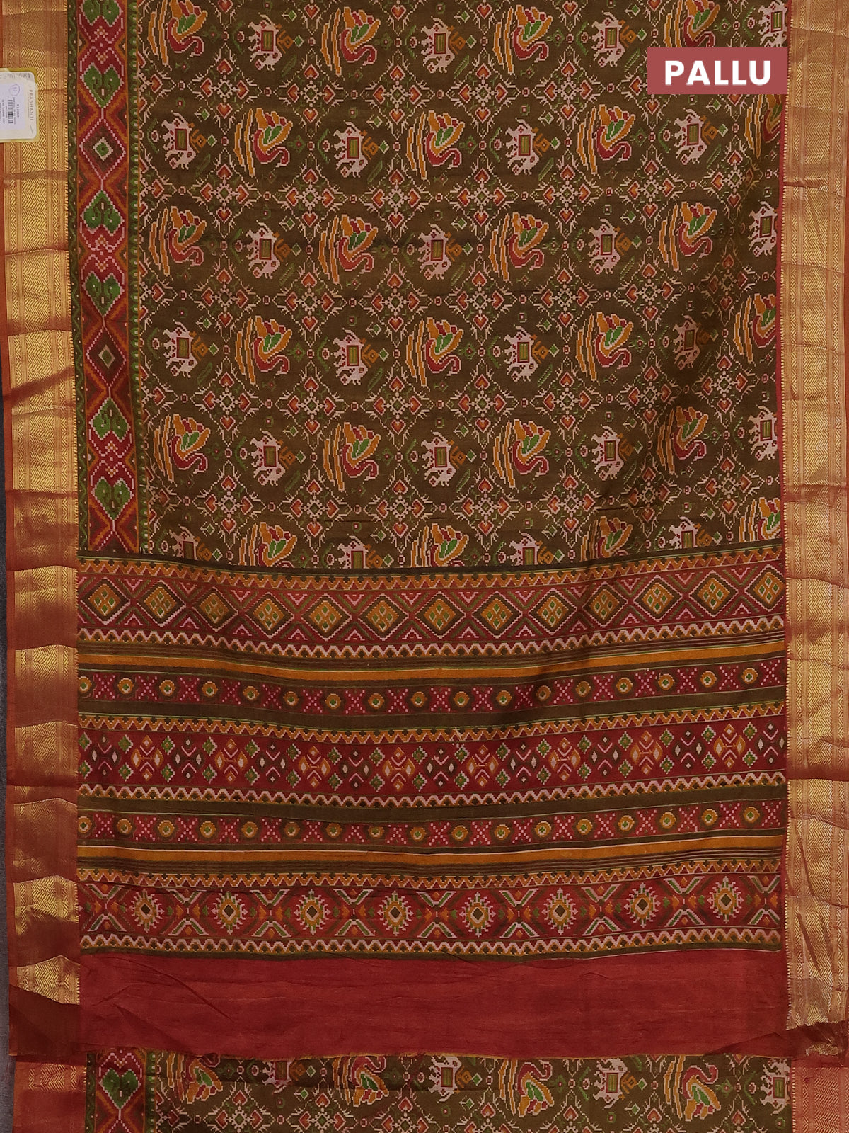 Semi tussar saree dual shade of green and blue with allover ikat prints and zari woven border