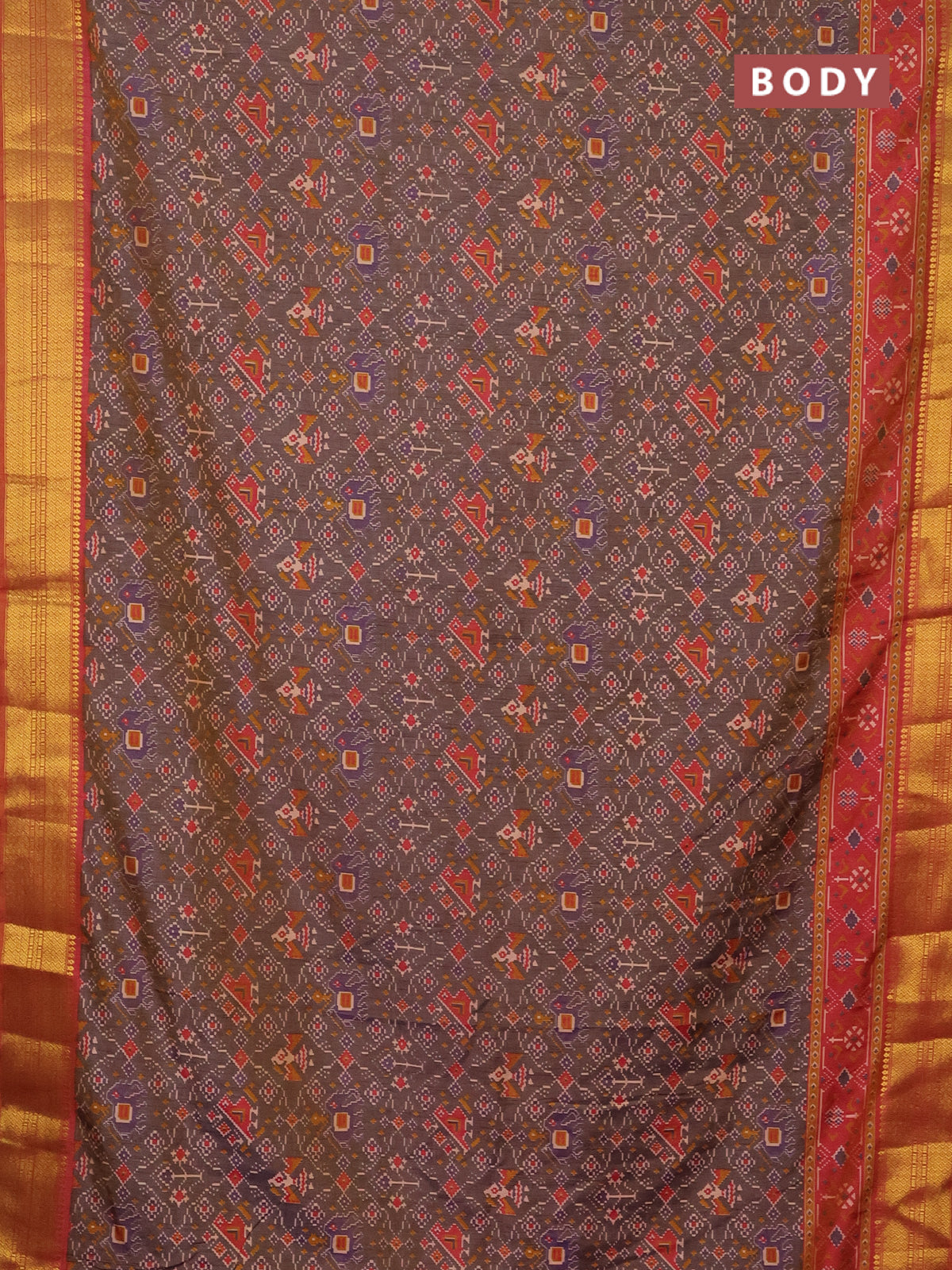 Semi tussar saree dual shade of grey and dual shade of pink with allover patola prints and zari woven border