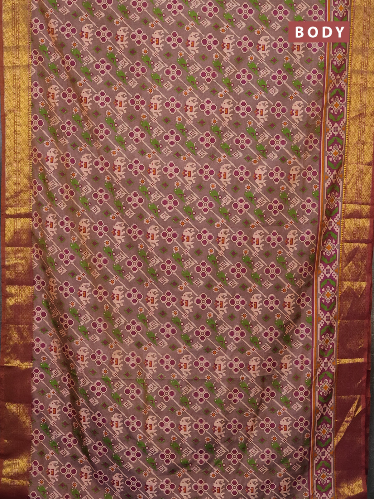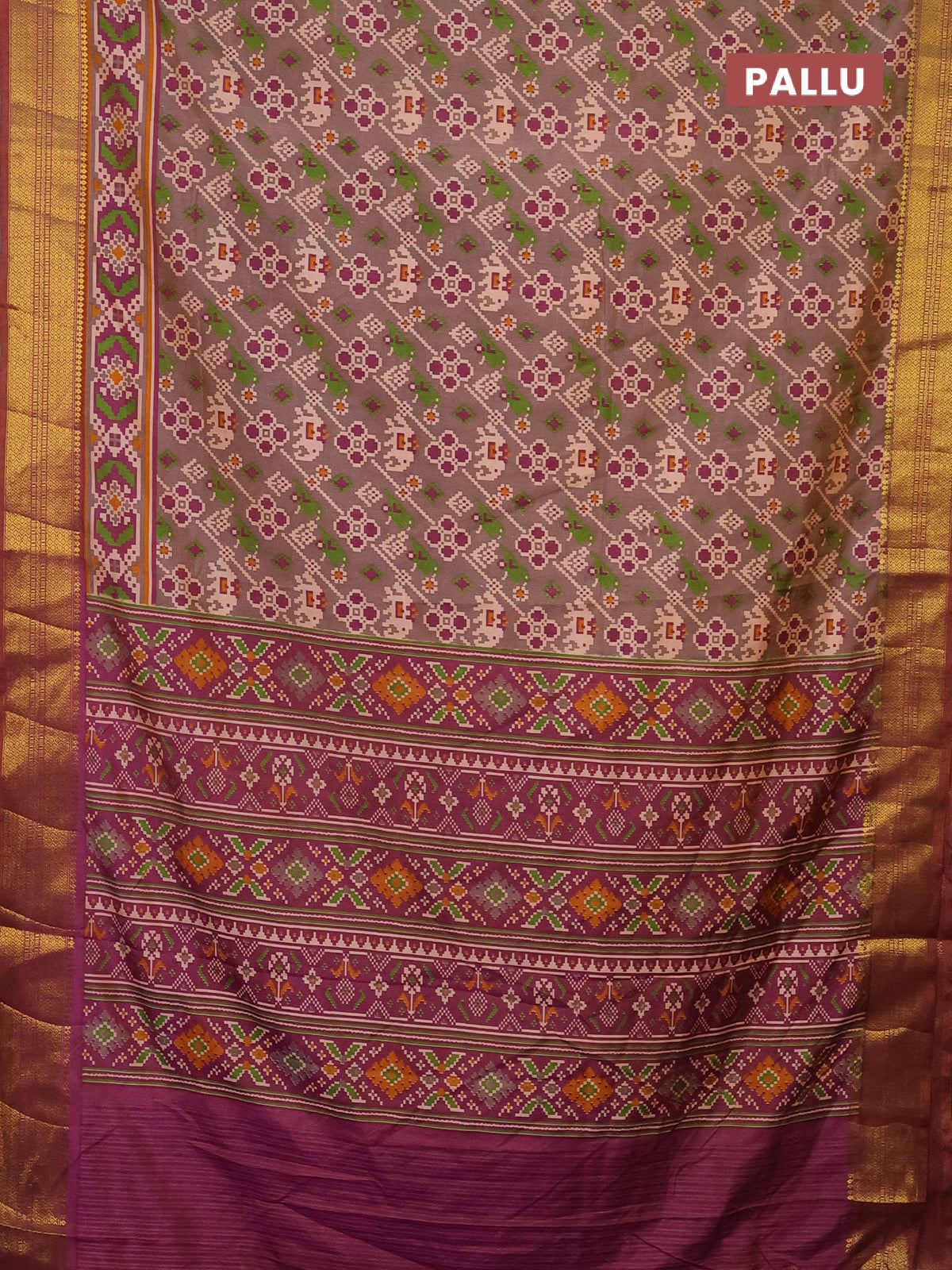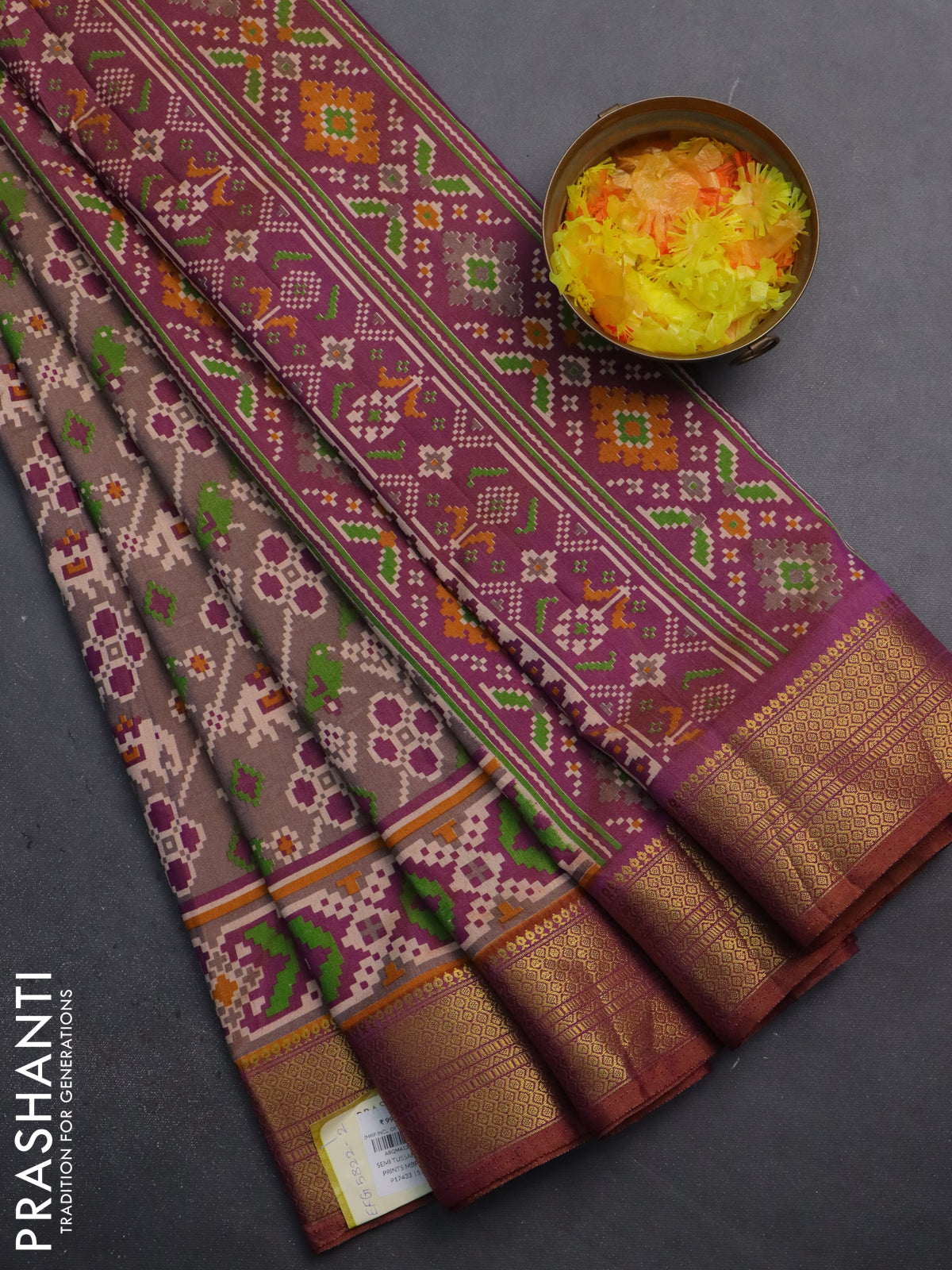 Semi tussar saree dual shade of grey and purple with allover patola prints and zari woven border
