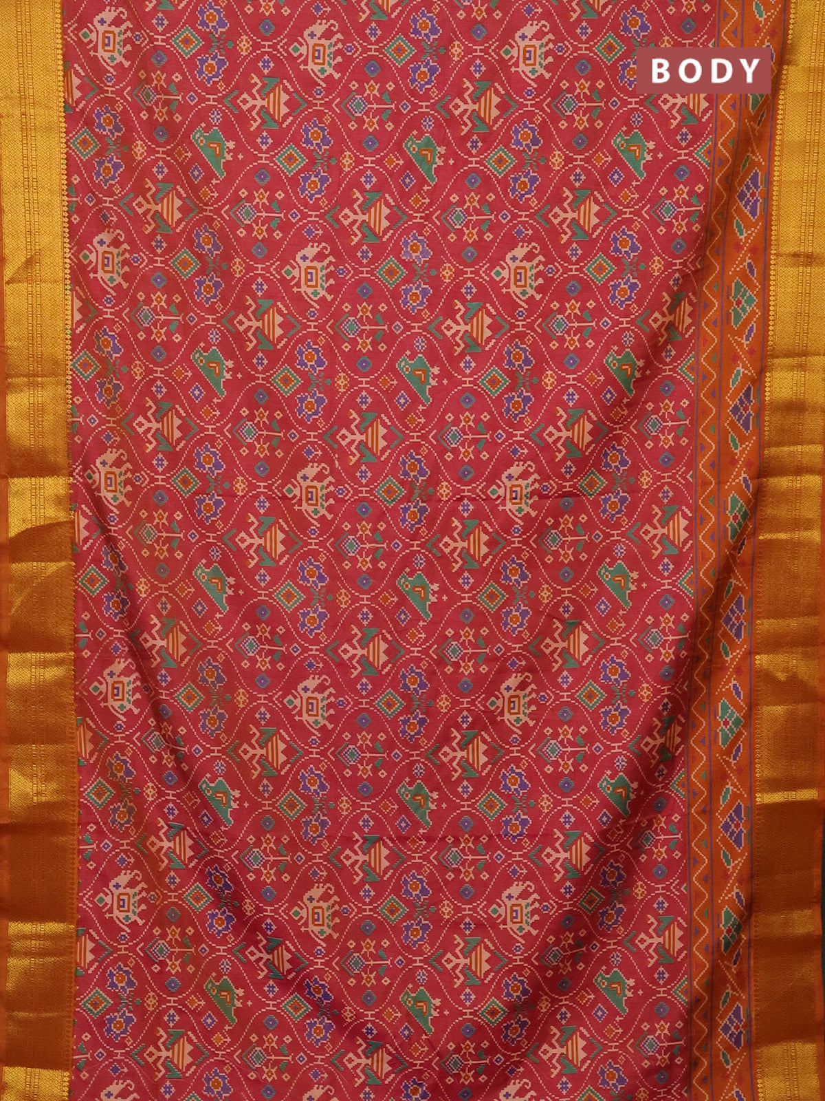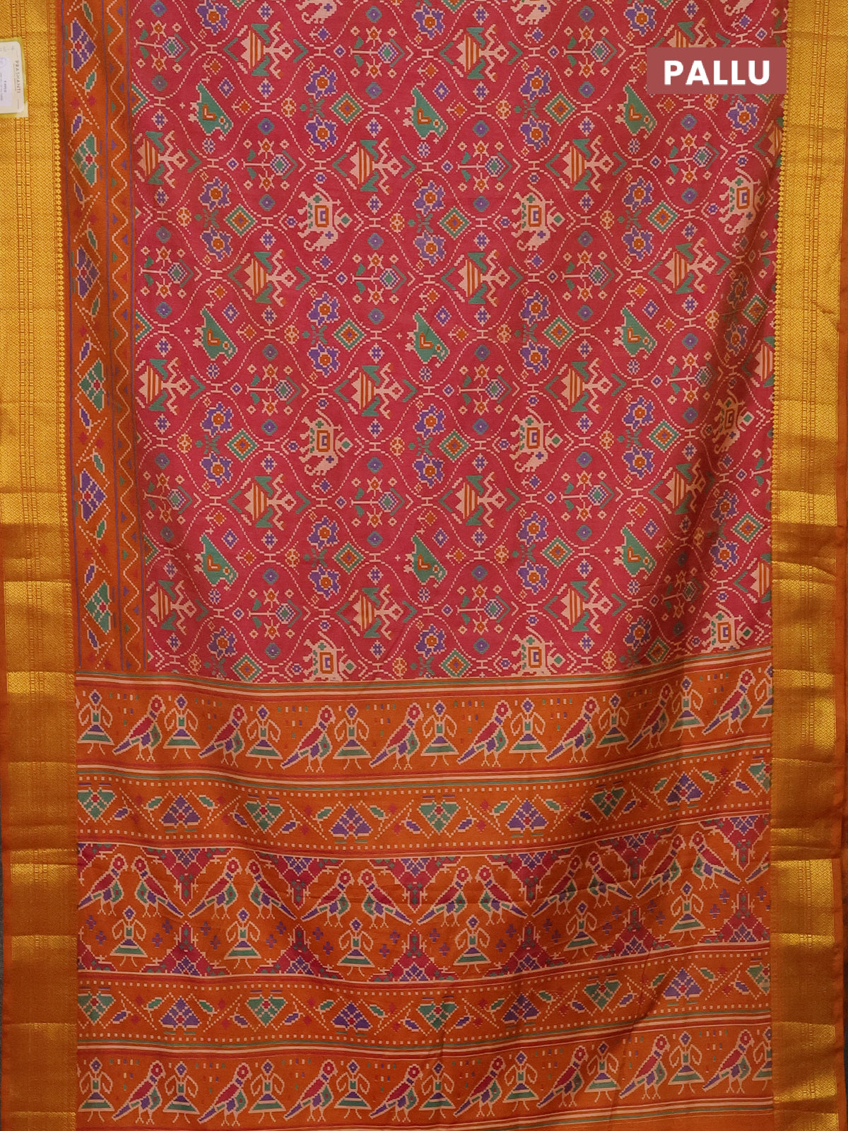 Semi tussar saree dual shade of pink and mustard yellow with allover patola prints and zari woven border