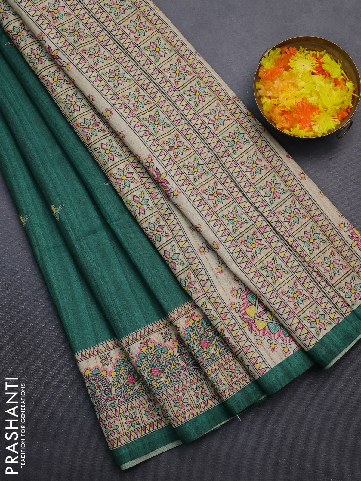 Material : Semi Tussar Blouse : Attached Length of saree : 6.2 mts (5.5 mts saree & 70 cms blouse)... Read more