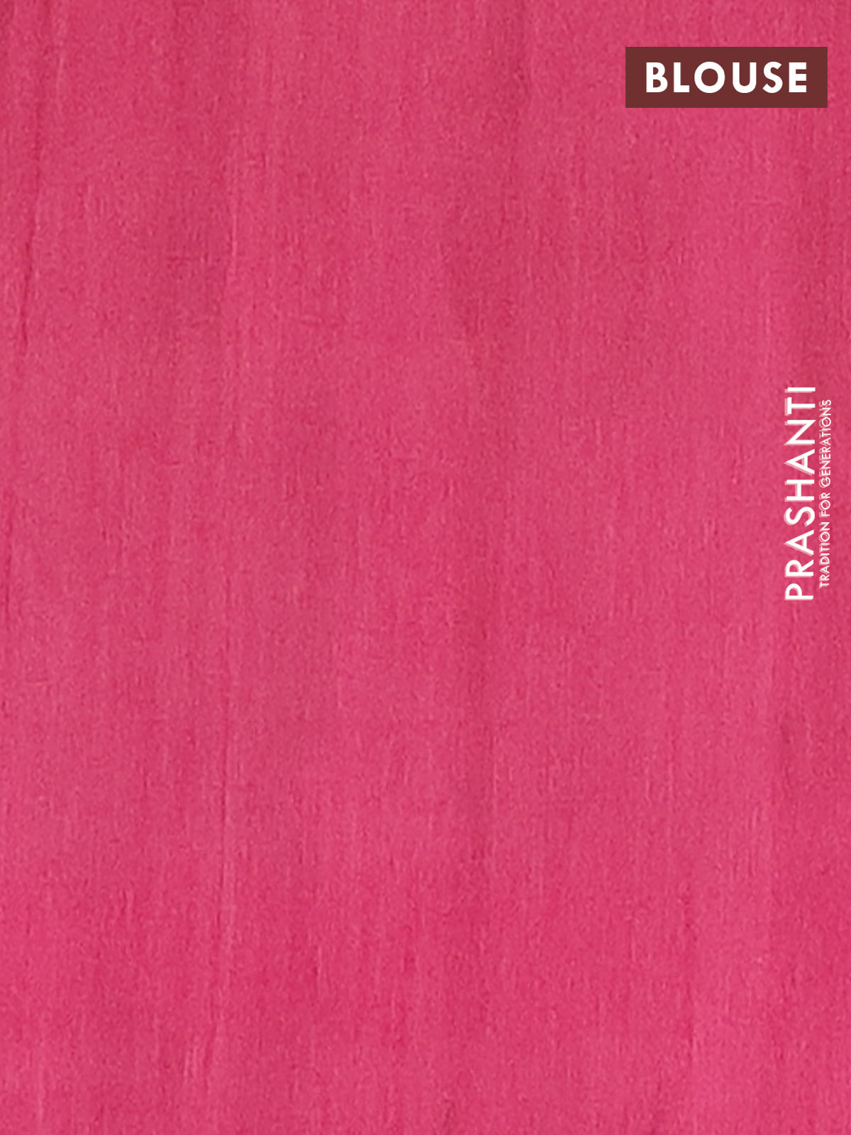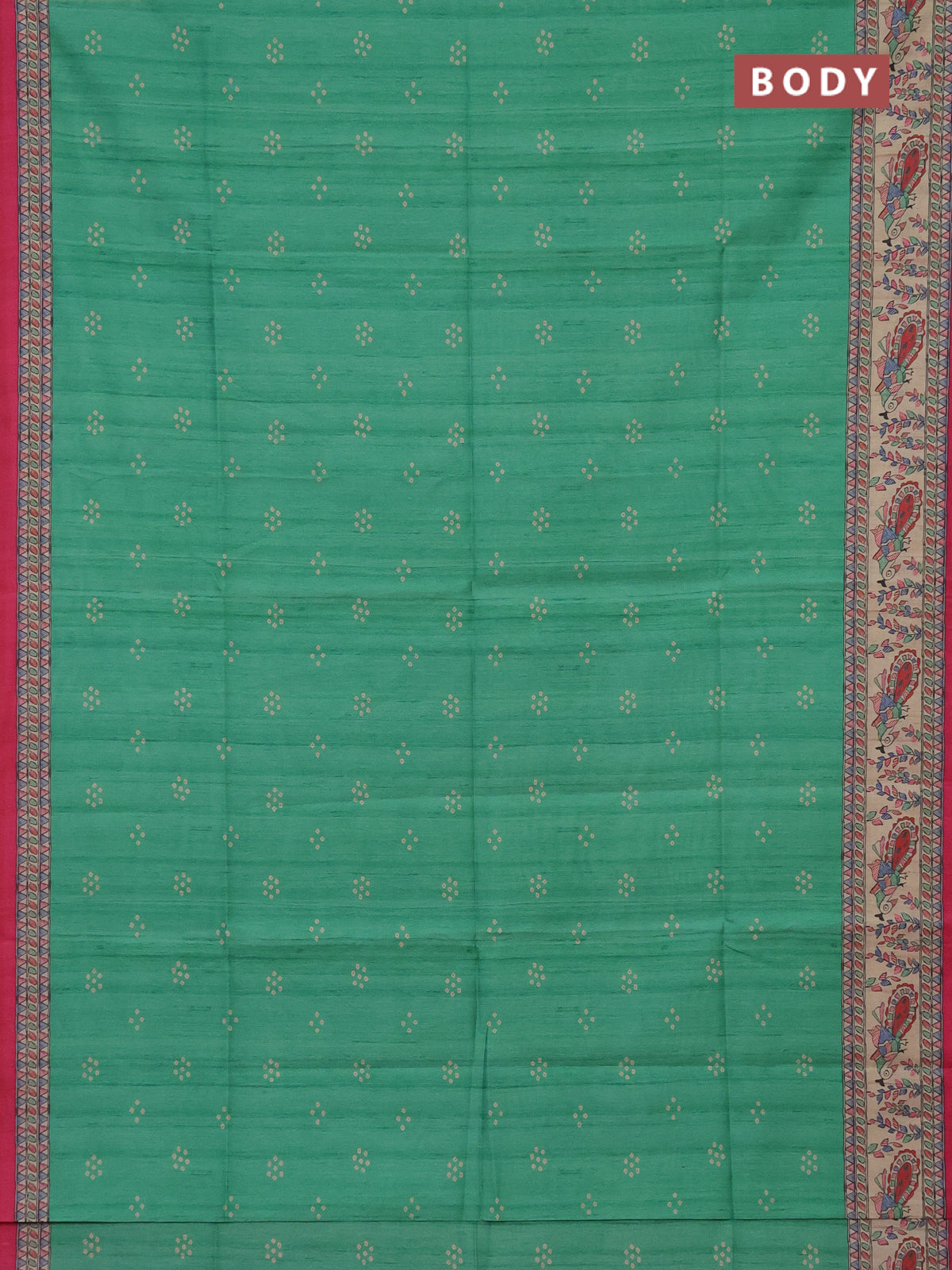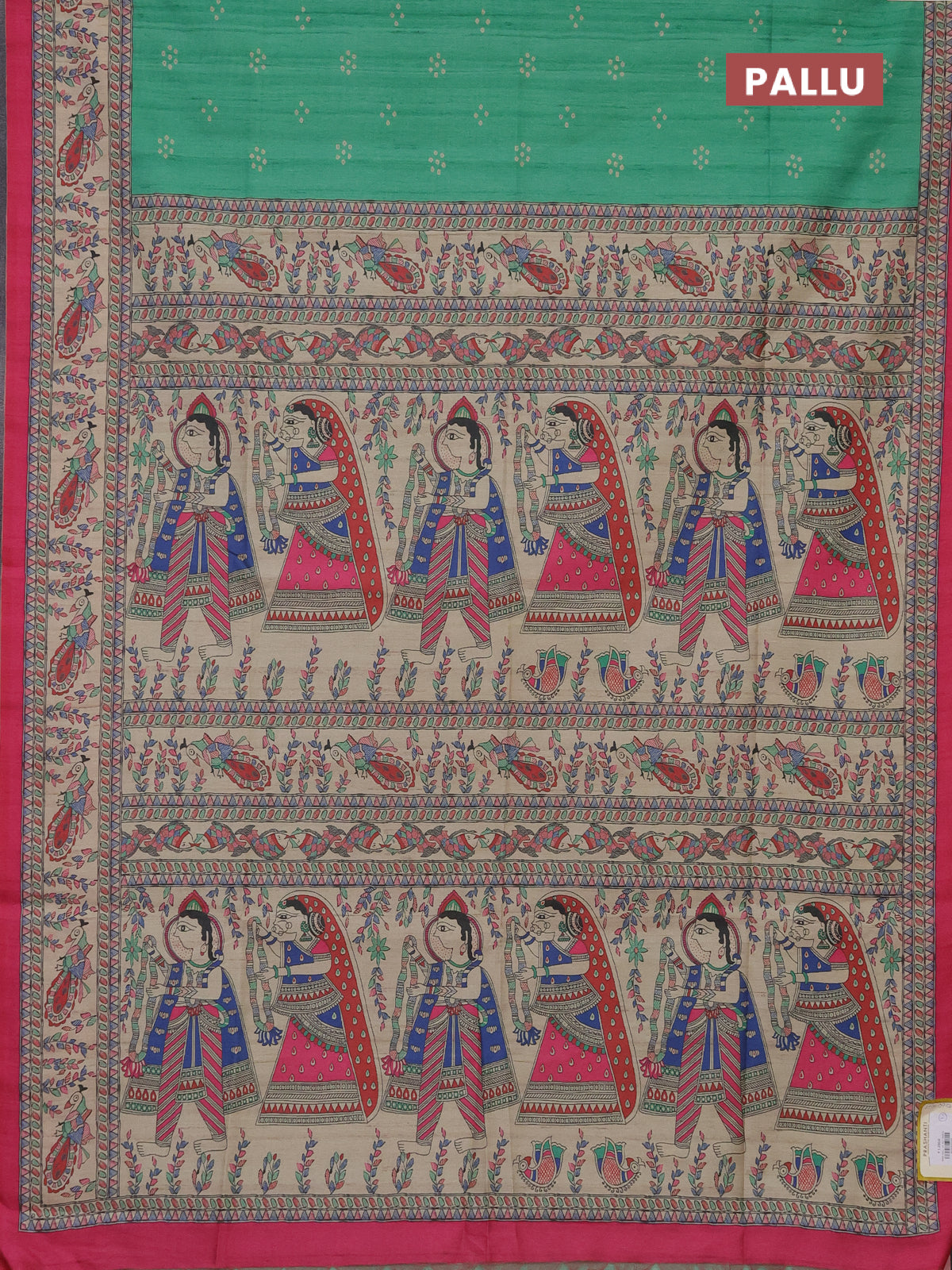 Semi tussar saree green and pink with bandhini butta prints and madhubani printed pallu