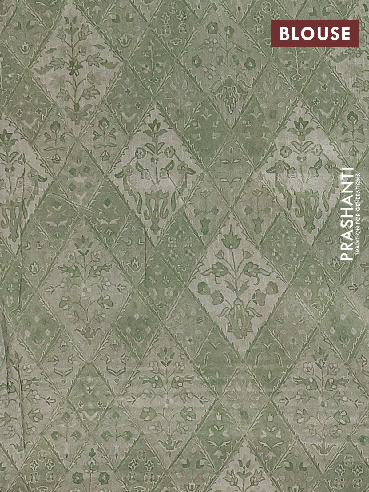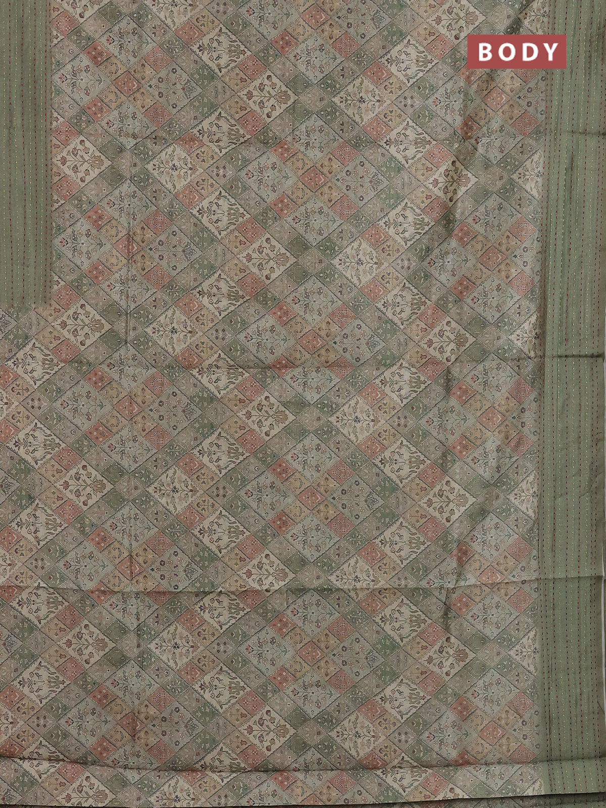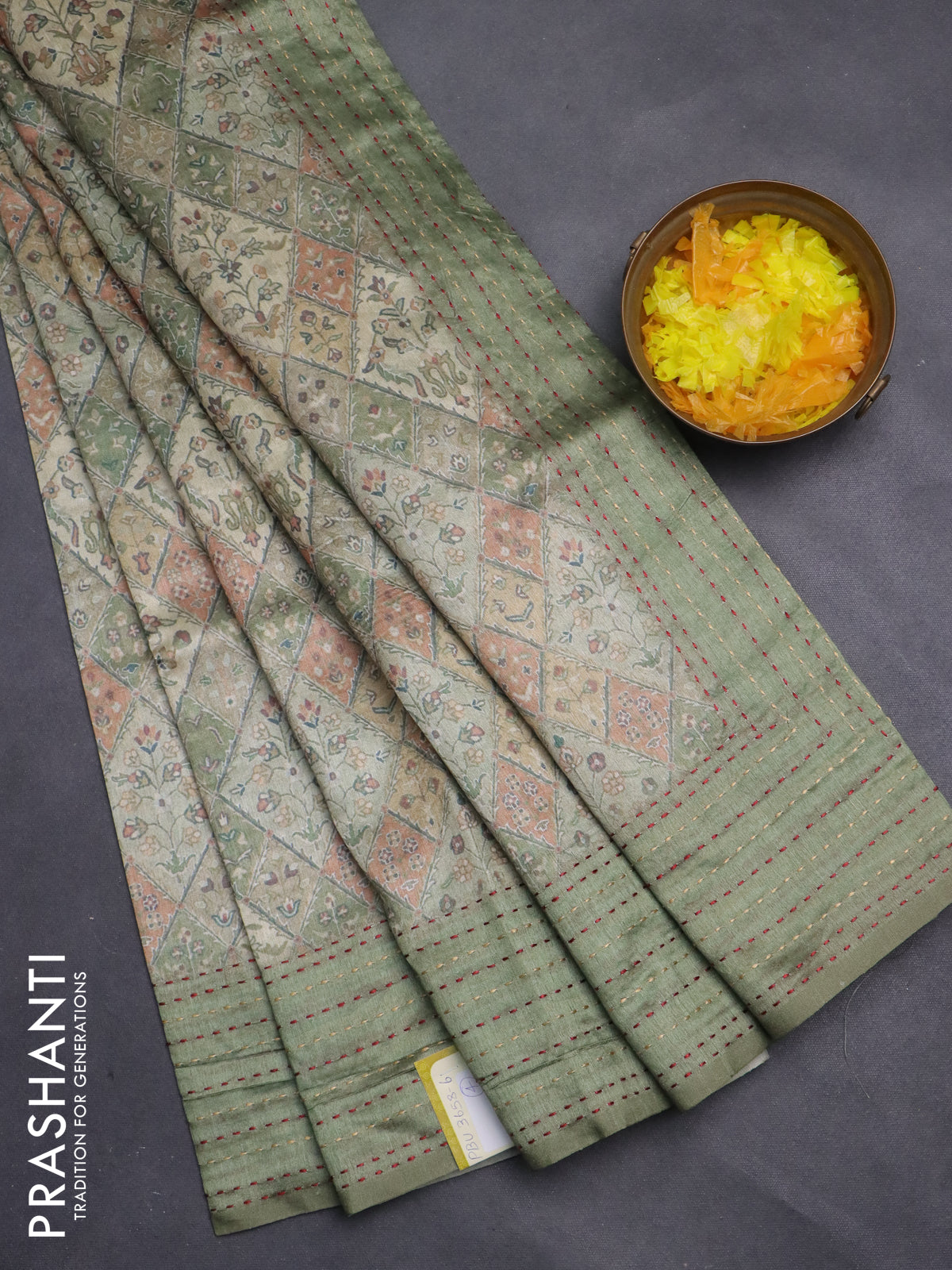 Semi tussar saree green shade and green with allover prints and kantha stitch work border