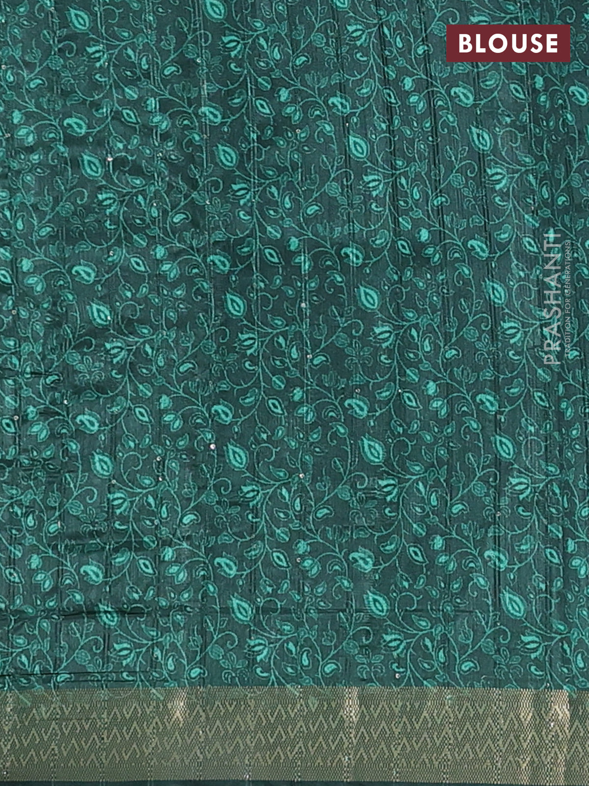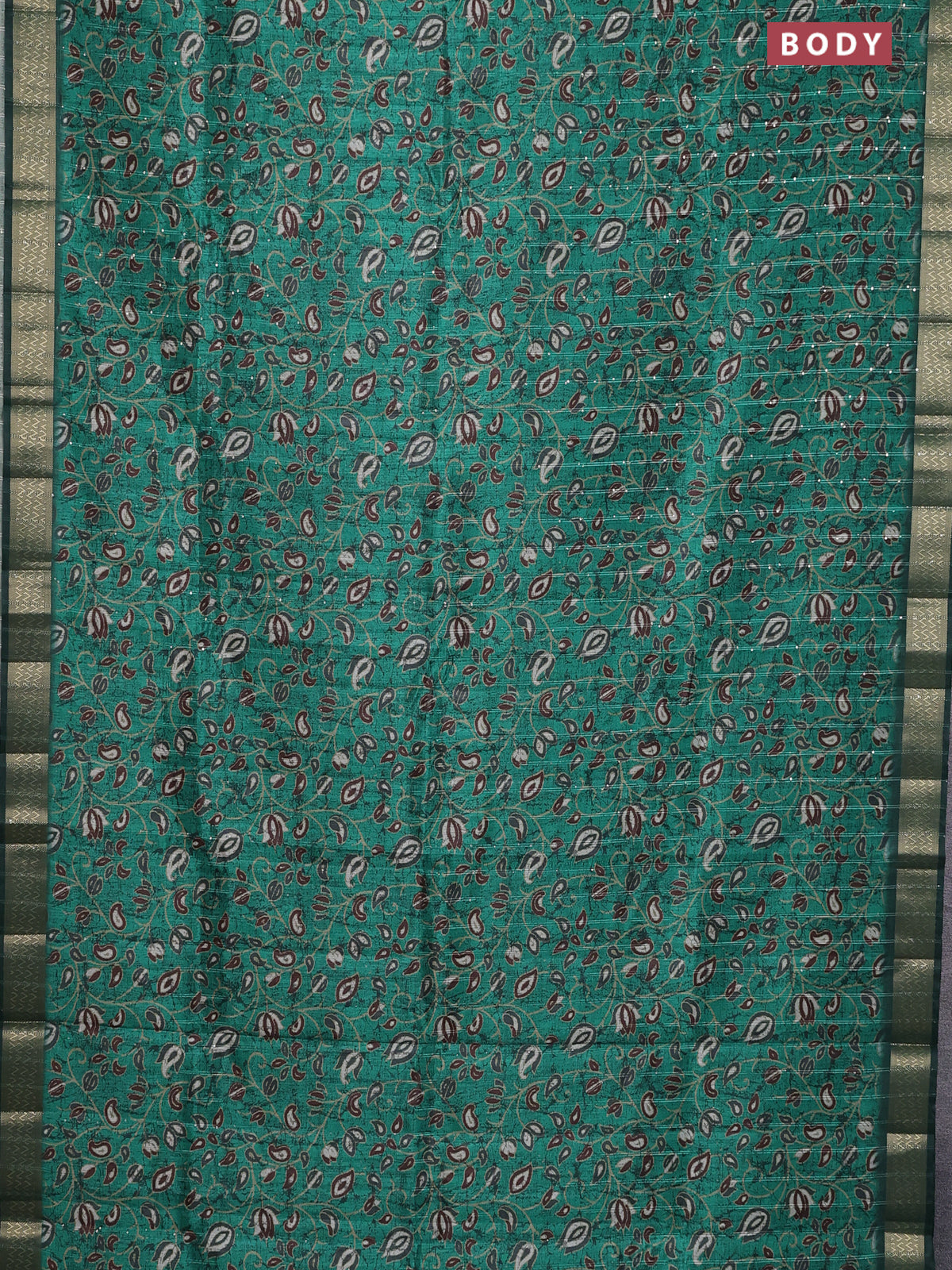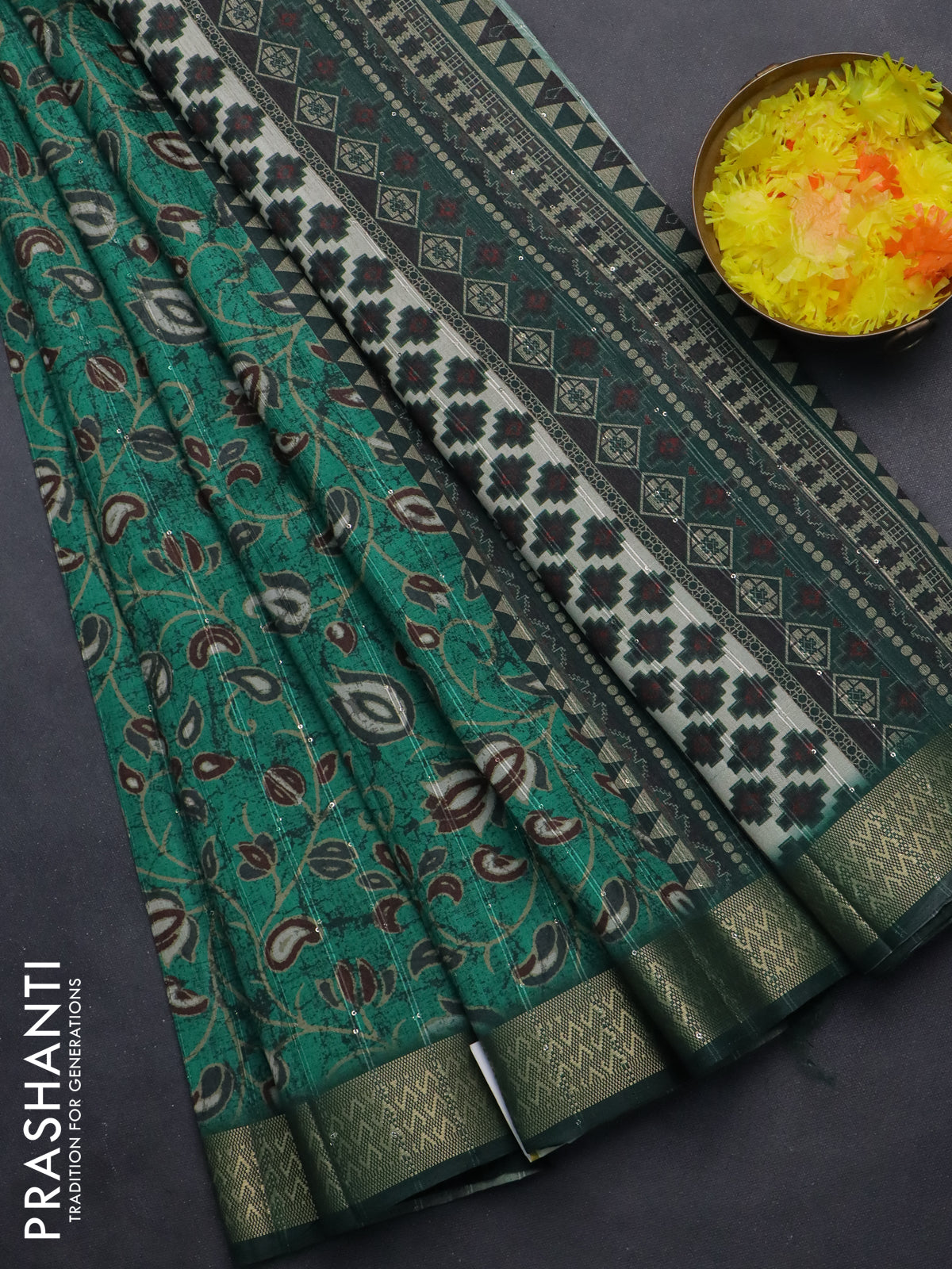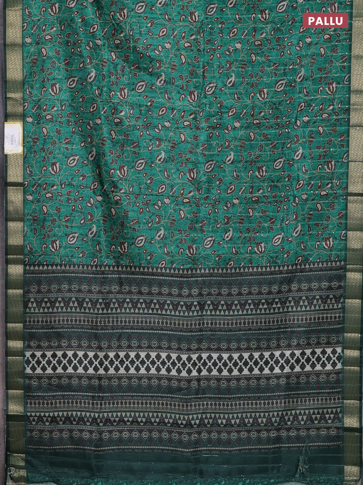 Semi tussar saree green with allover prints & sequin work and zari woven border