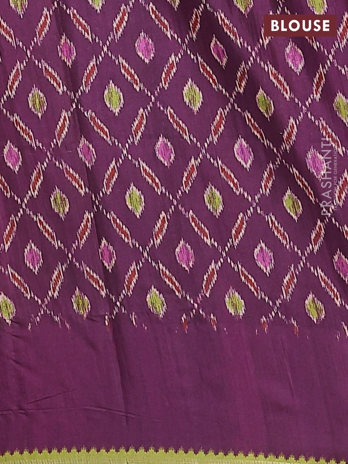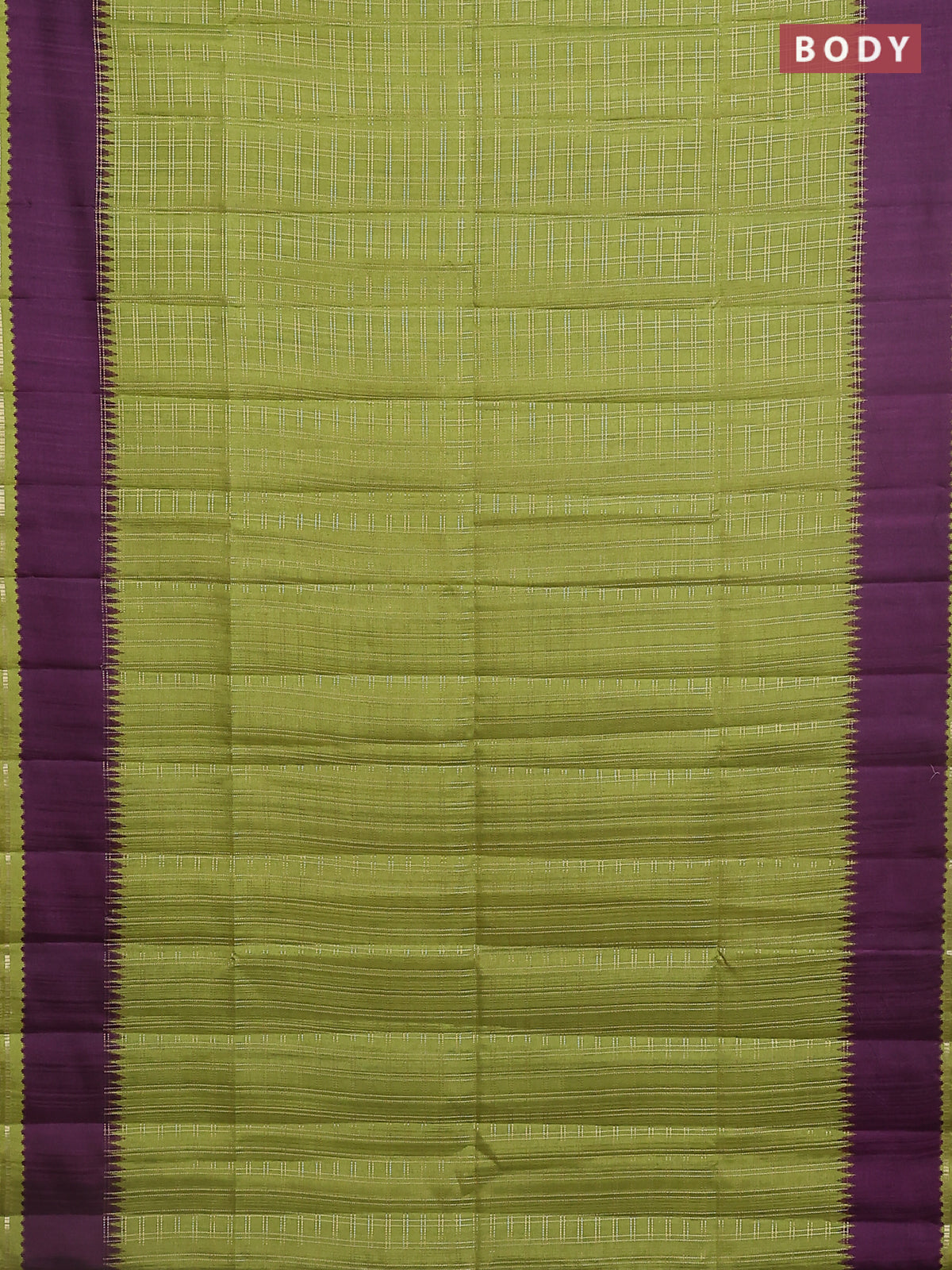 Semi tussar saree light green and deep purple with allover zari checked pattern and rettapet zari woven border