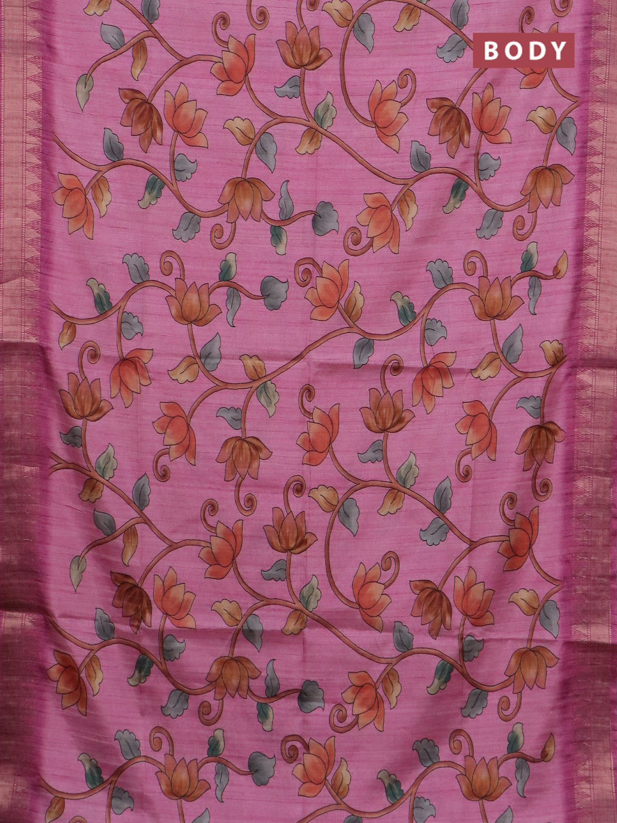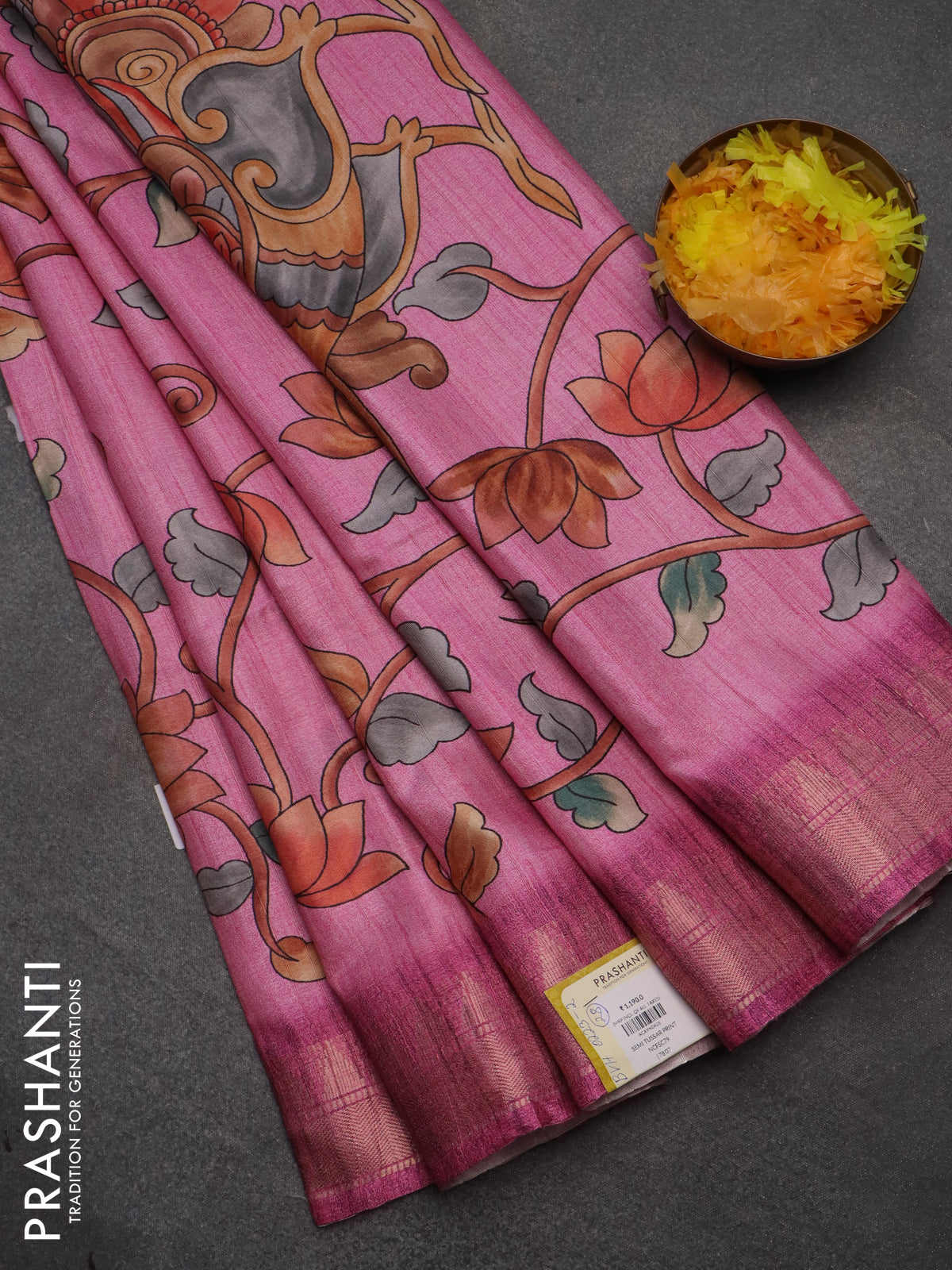Semi tussar saree light pink with allover floral prints and zari woven border