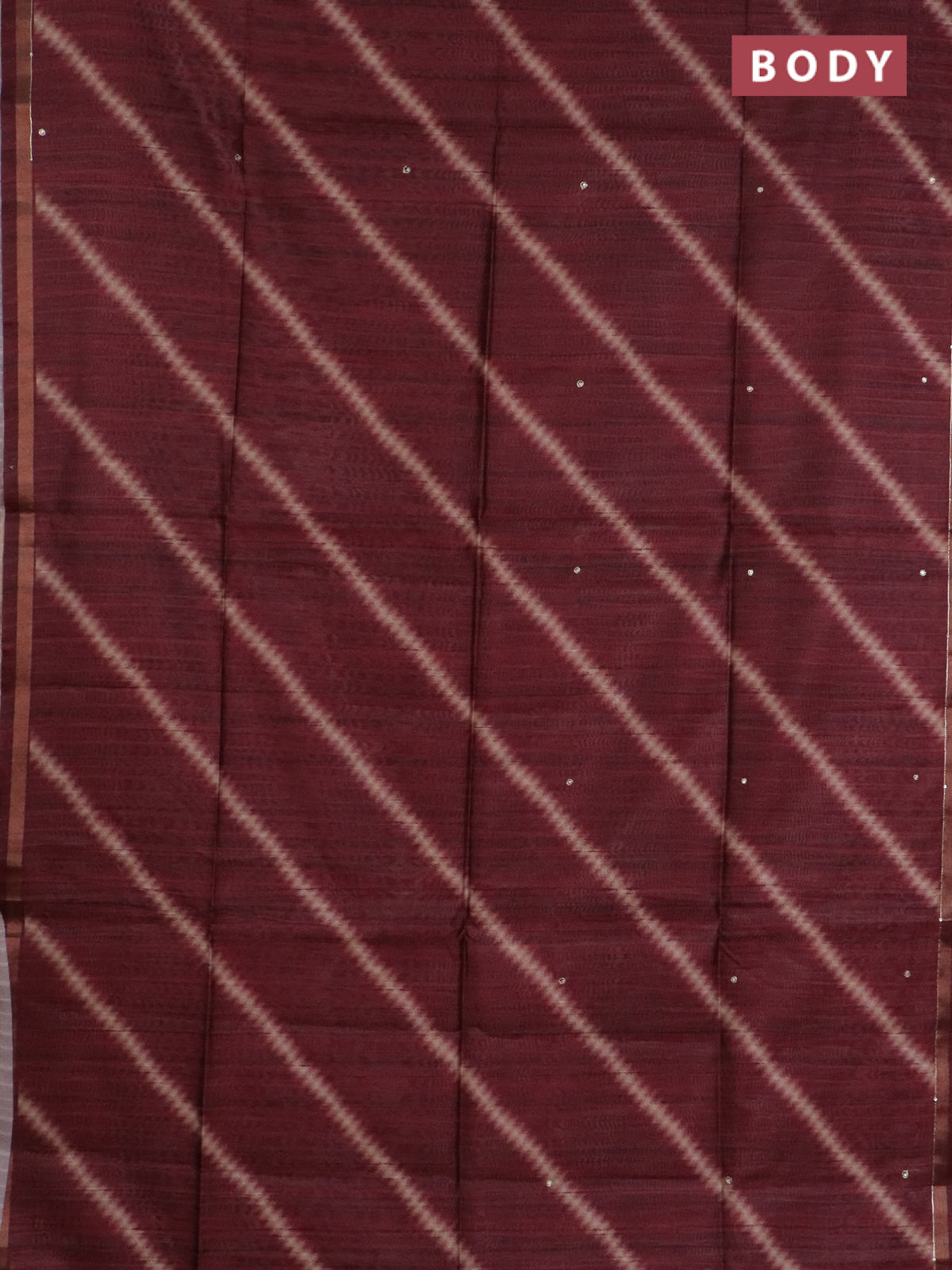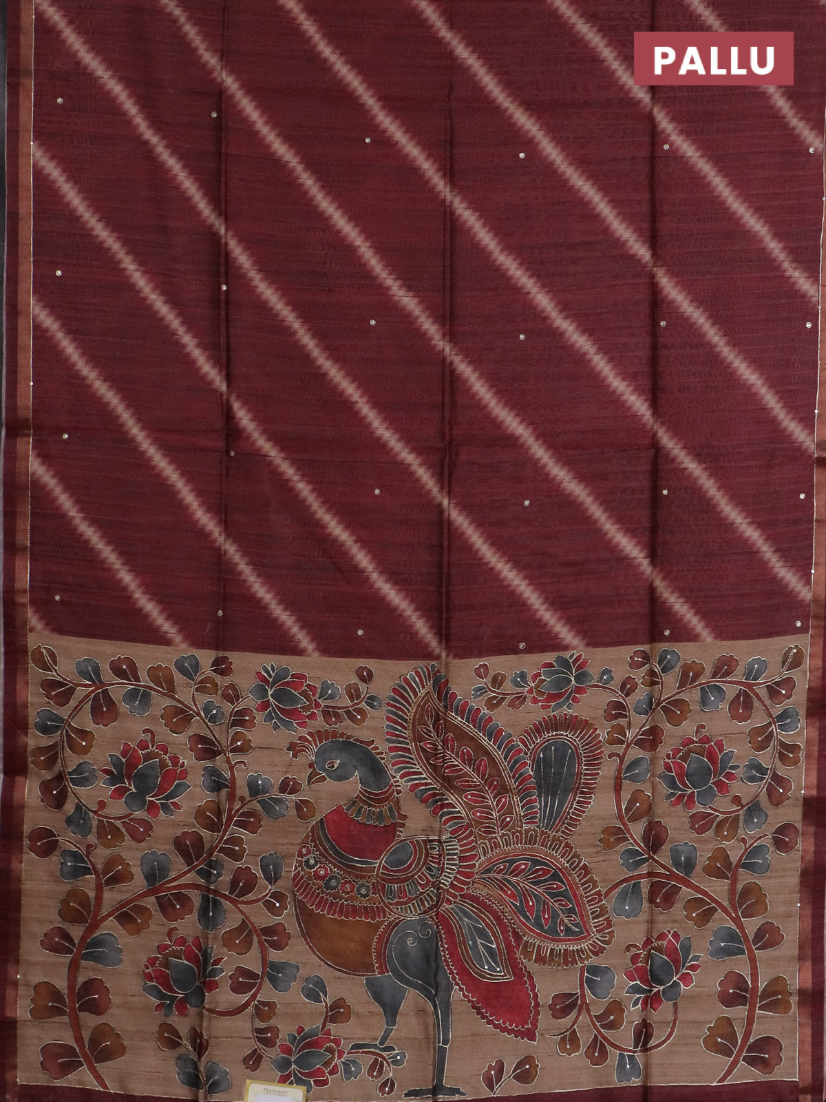 Semi tussar saree maroon and beige with allover leheriya prints & zari buttas and kalamkari prints & pita work pallu