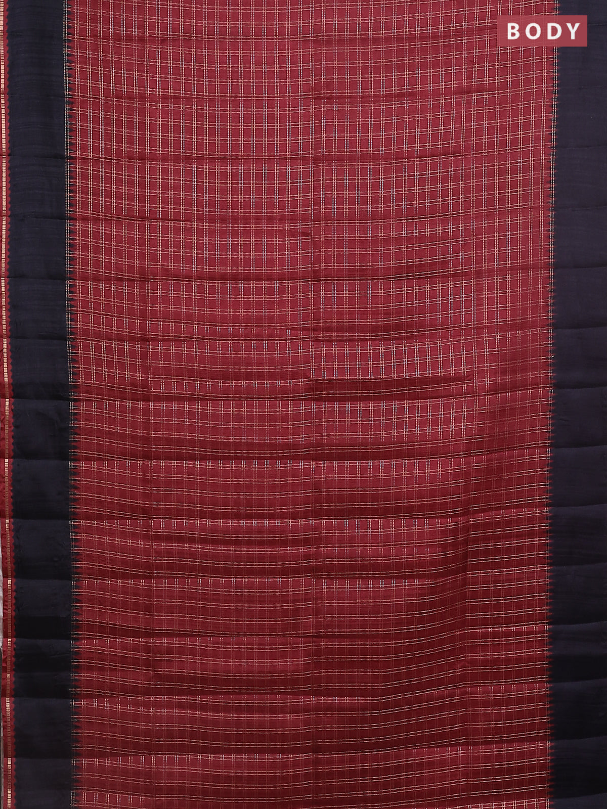 Semi tussar saree maroon and black with allover zari checked pattern and rettapet zari woven border
