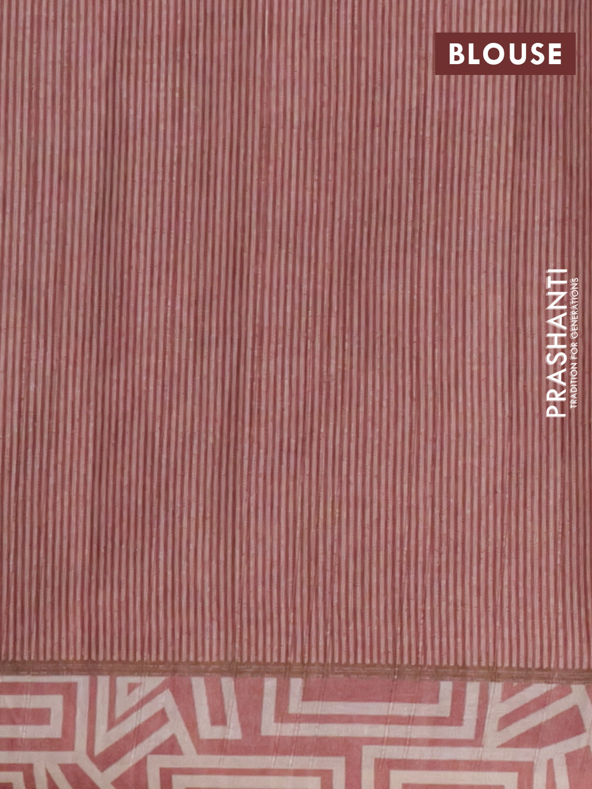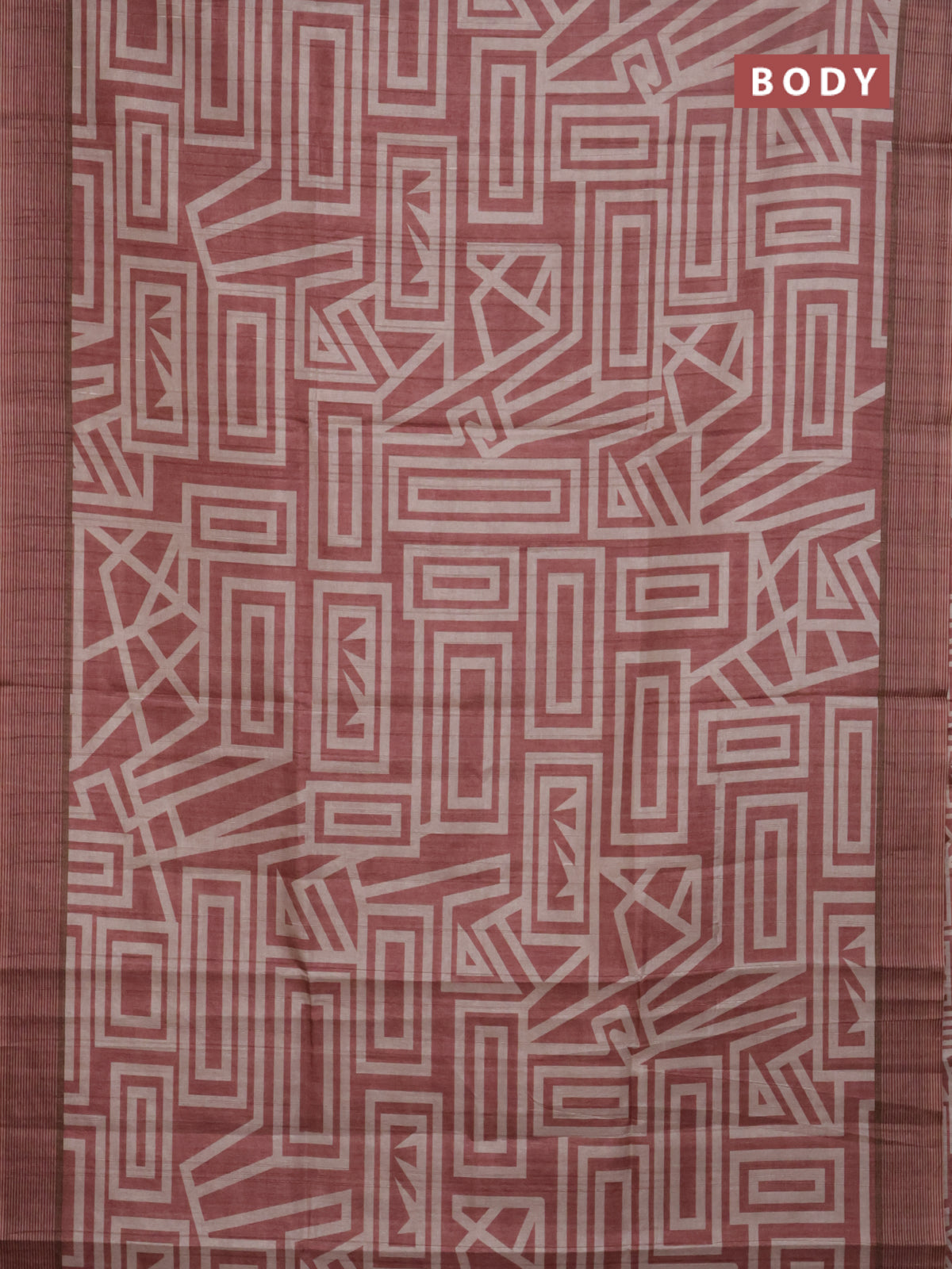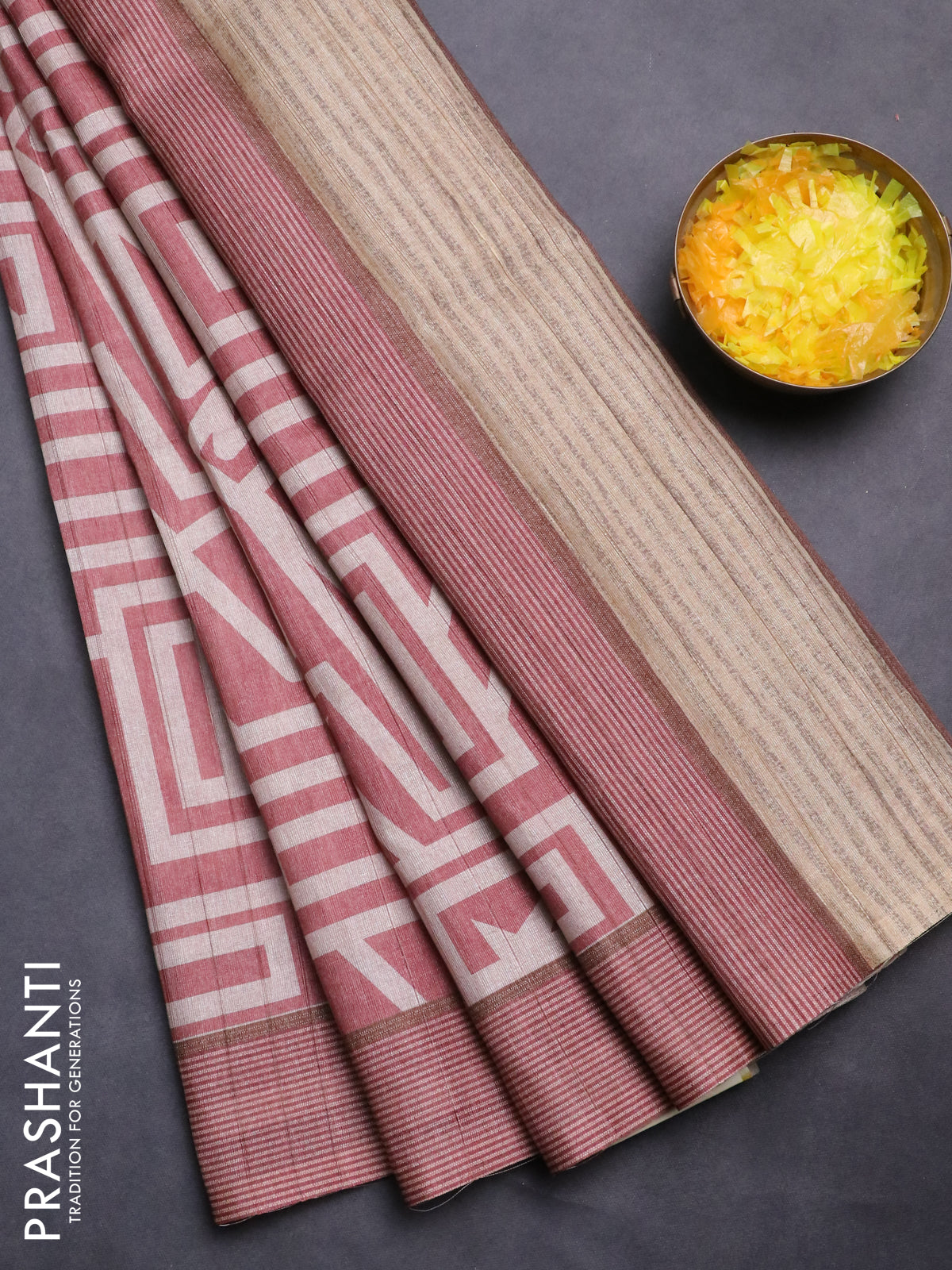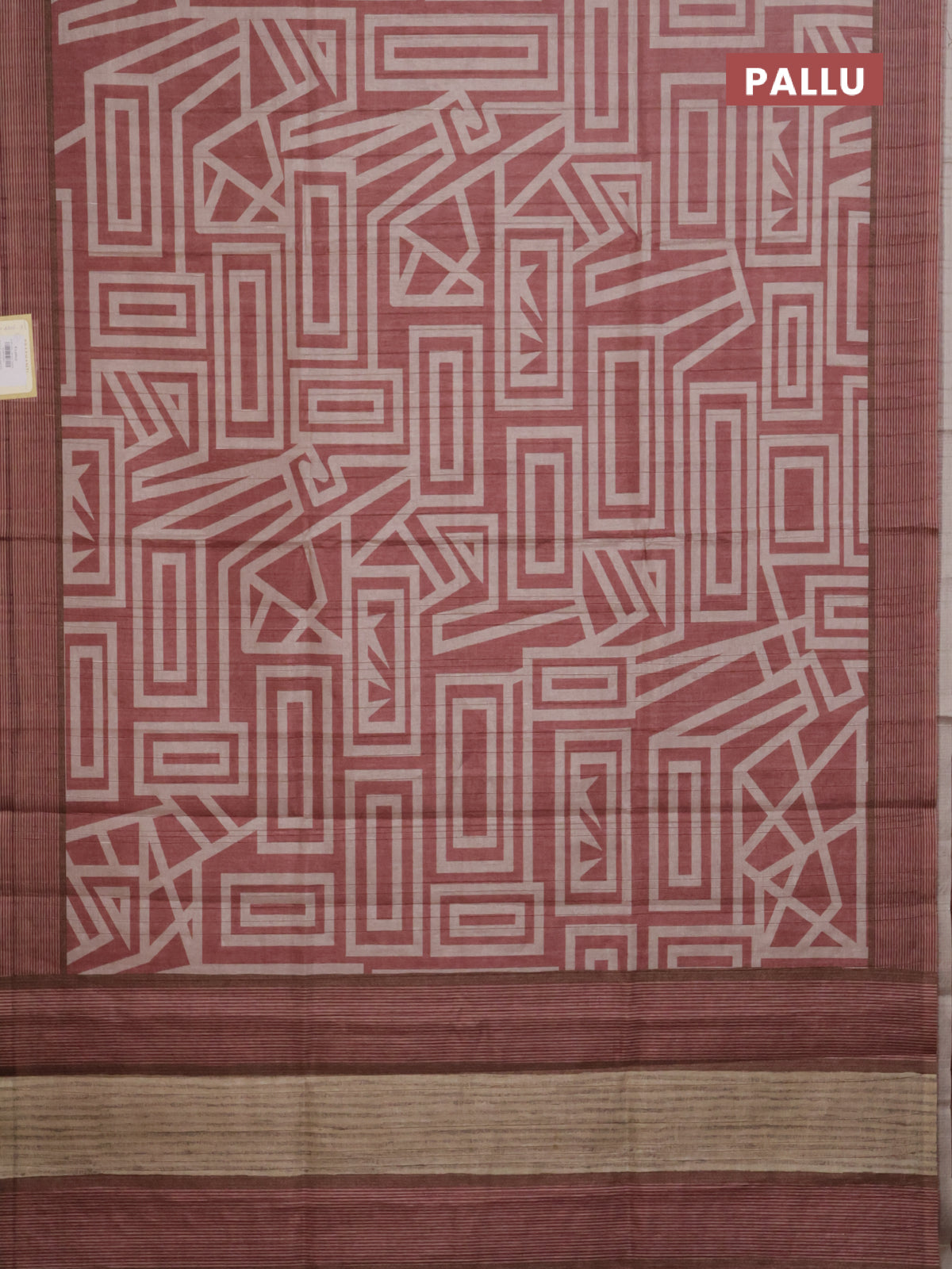 Semi tussar saree maroon shade and beige with geometric prints and simple border