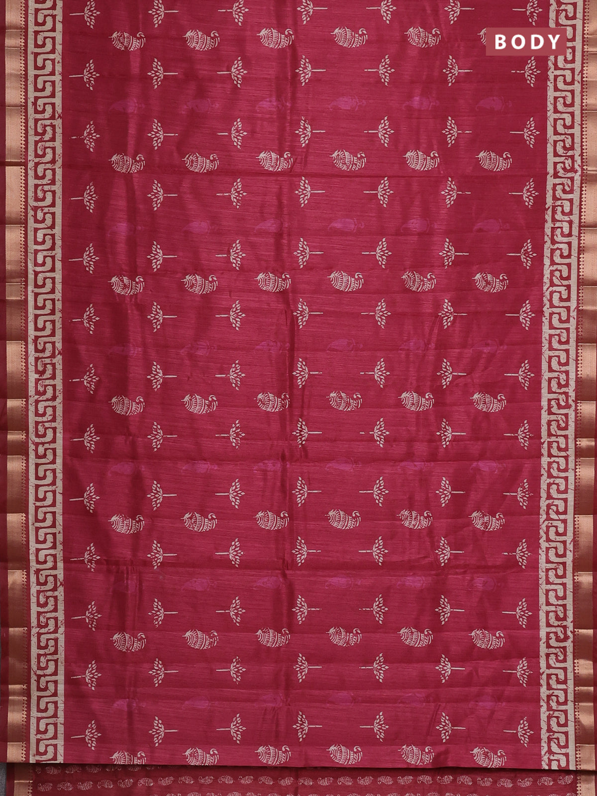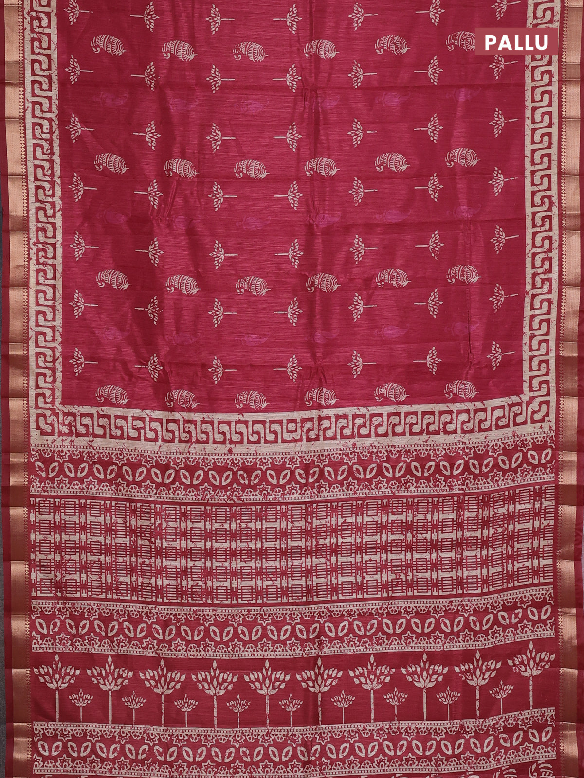 Semi tussar saree maroon with butta prints and zari woven border