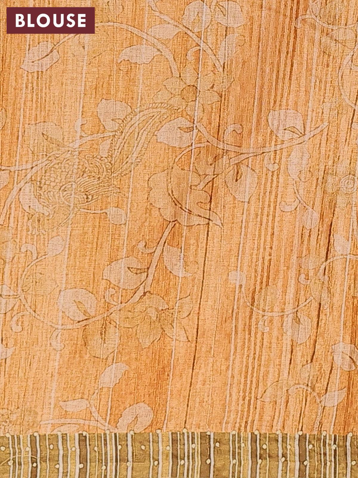 Material : Semi Tussar Blouse : Attached Length of saree : 6.2 mts (5.5 mts saree & 70 cms blouse)... Read more