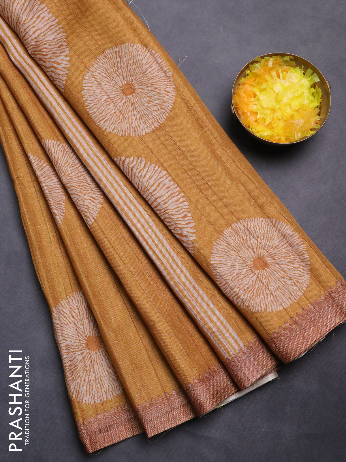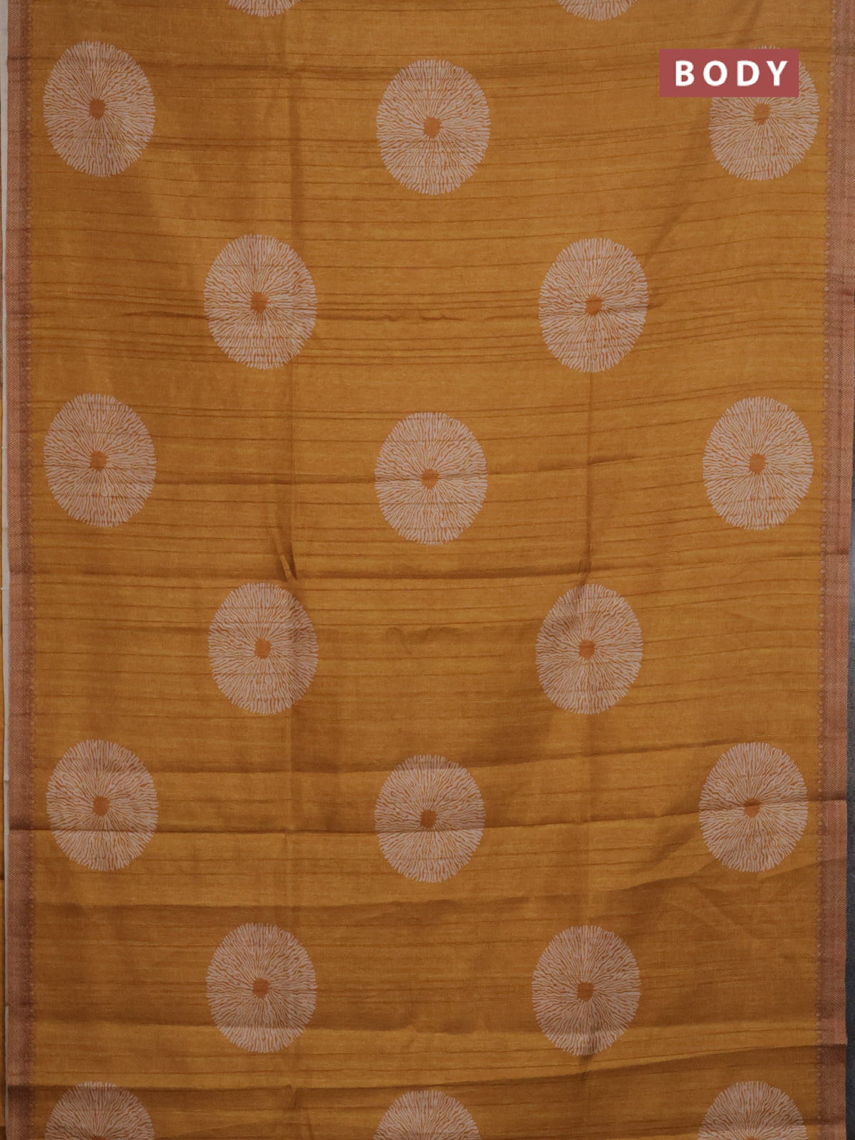 Semi tussar saree mustard yellow with shibori butta prints and simple border