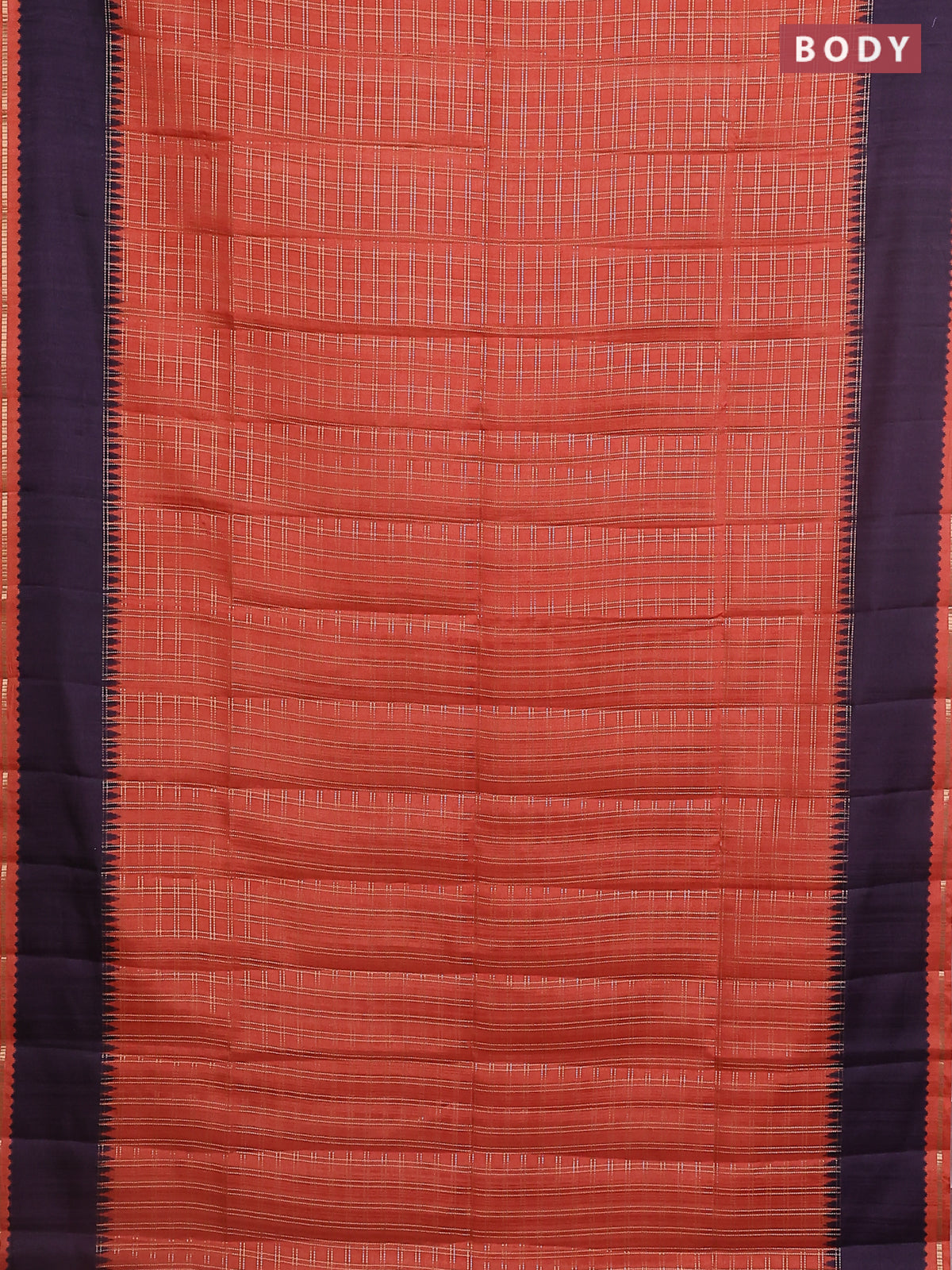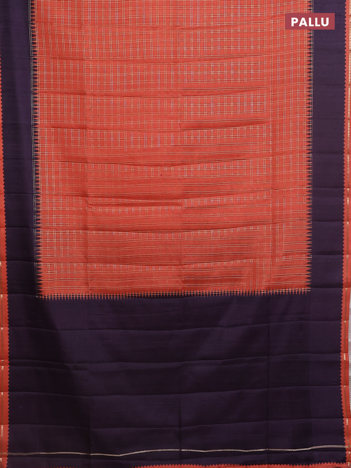 Semi tussar saree orange and deep wine shade with allover zari checked pattern and rettapet zari woven border