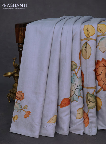 Semi tussar saree pastel blue with allover kalamkari applique work in borderless style