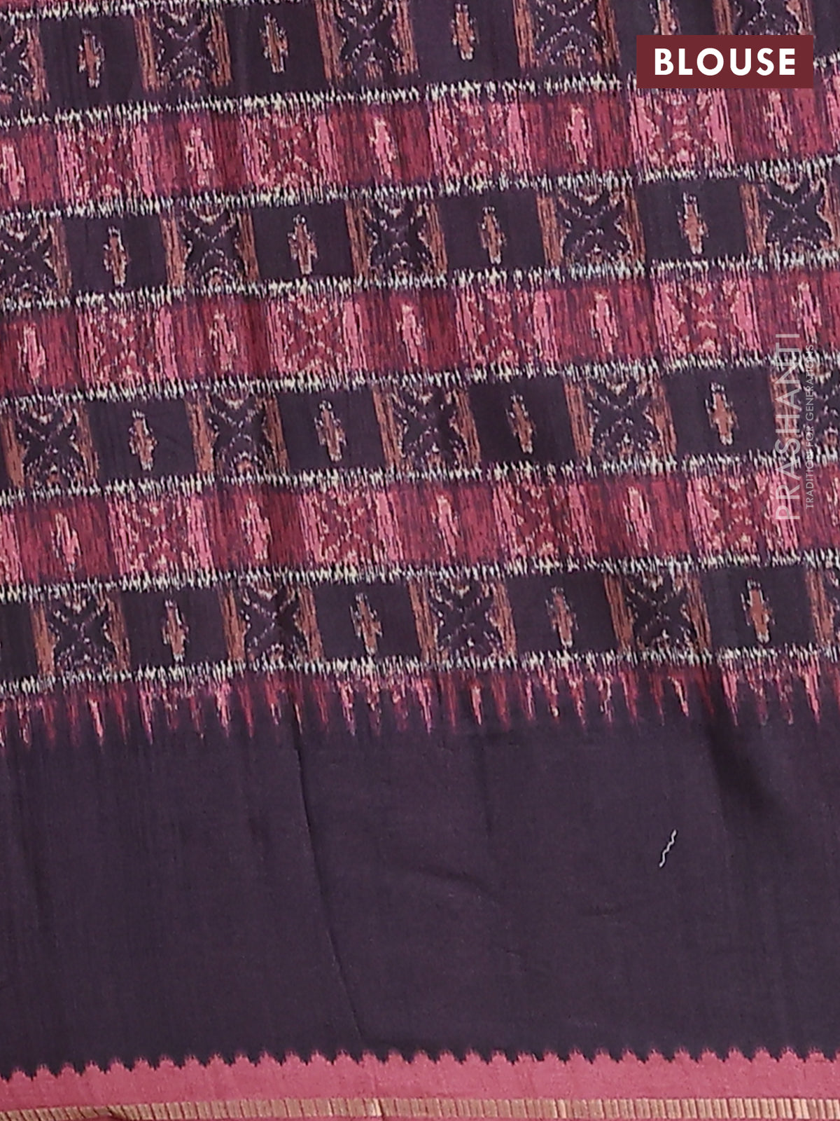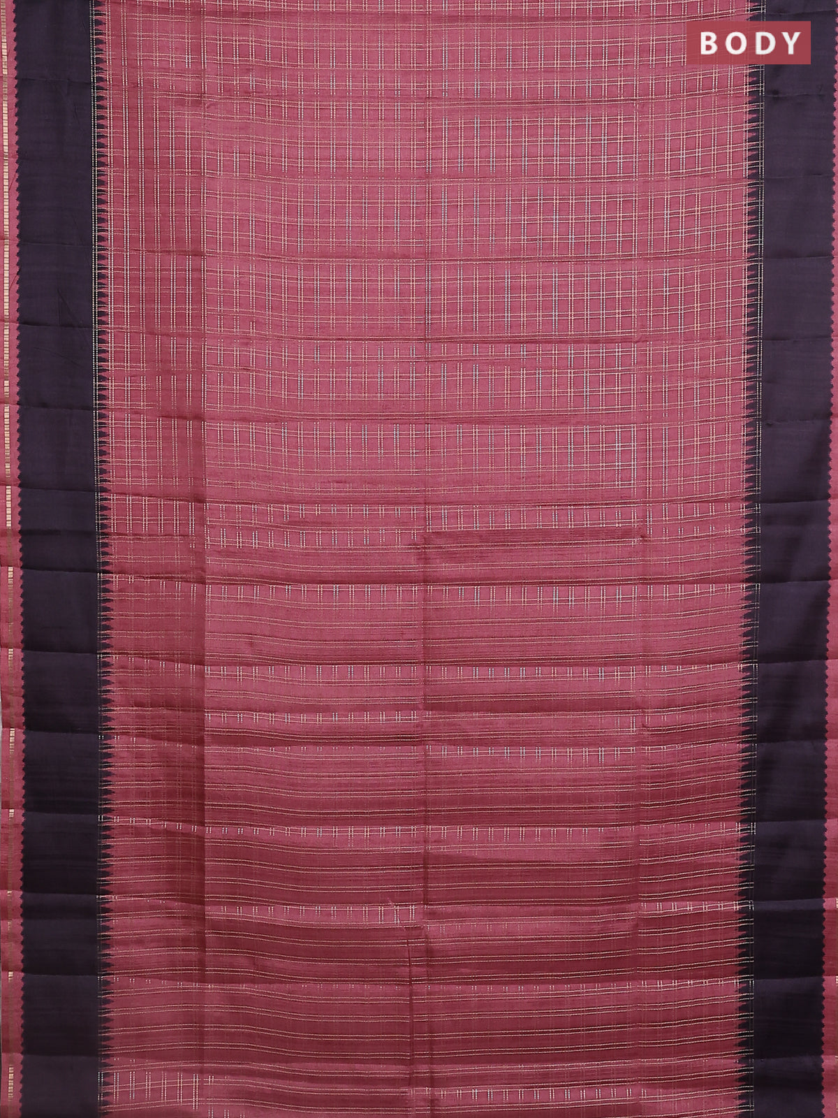 Semi tussar saree pastel brown and deep jamun with allover zari checked pattern and rettapet zari woven border