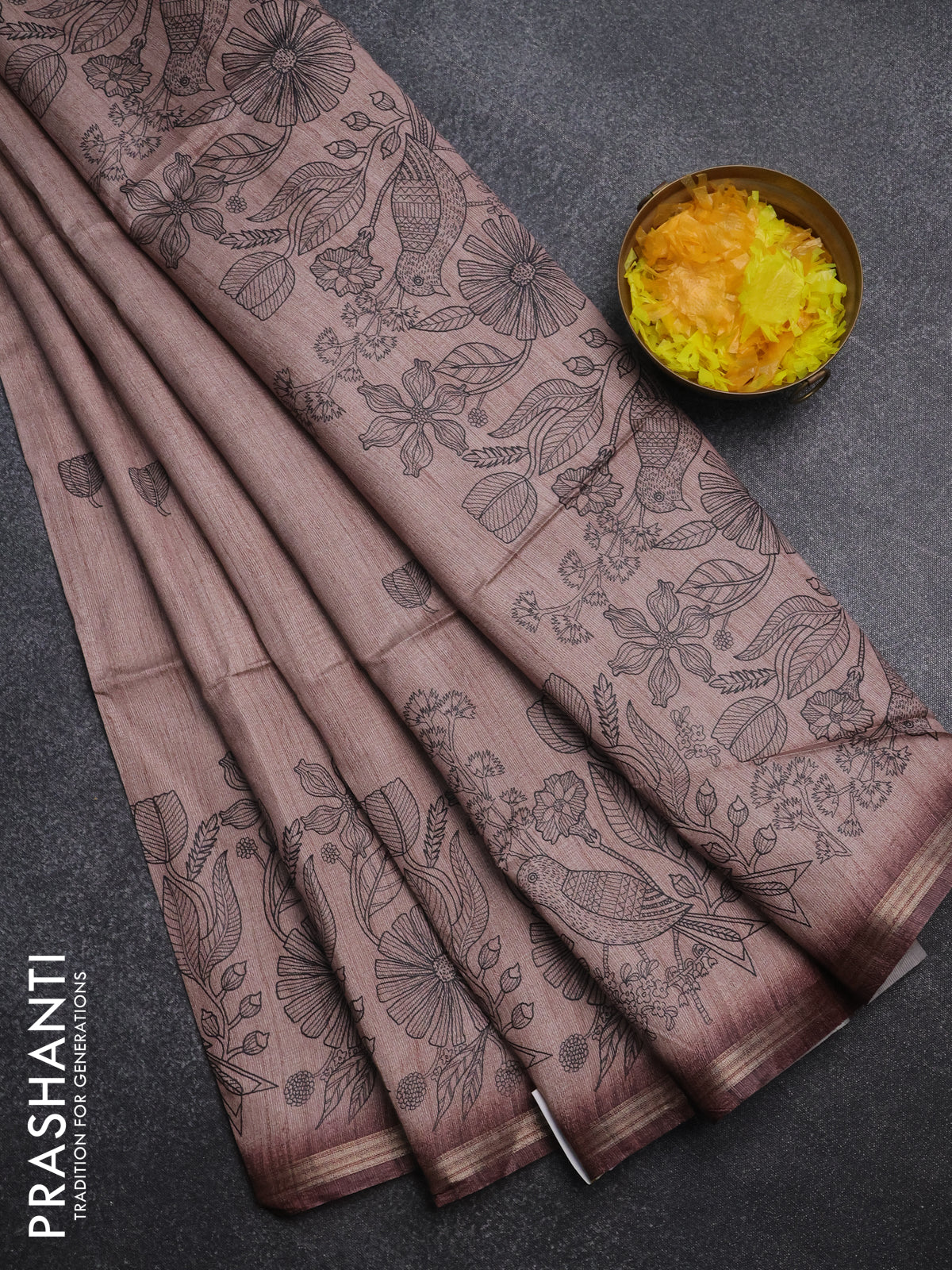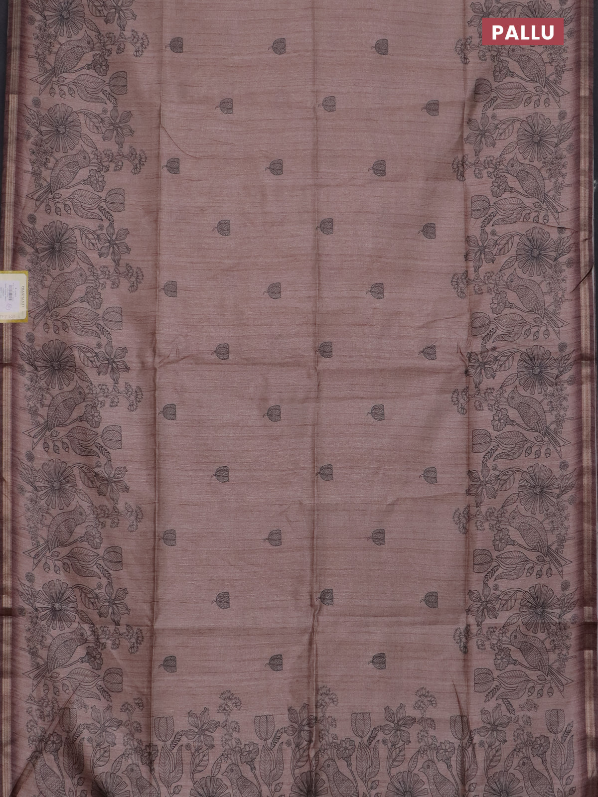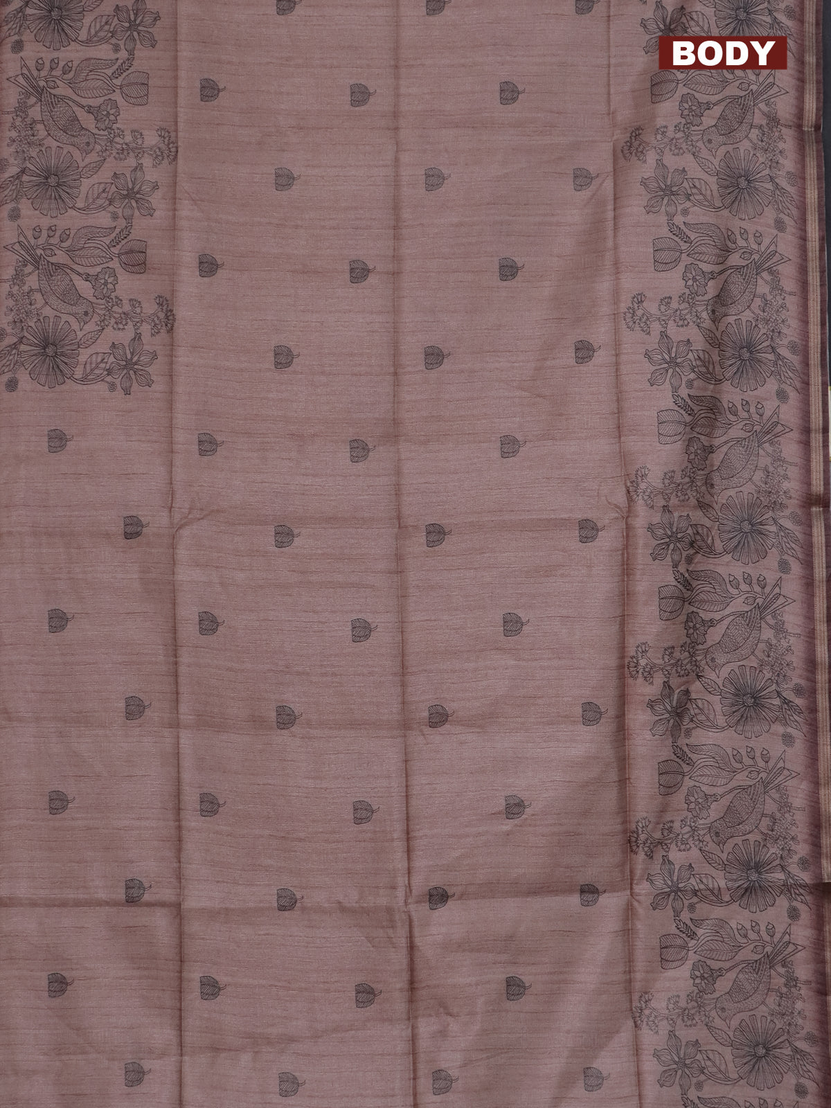 Semi tussar saree pastel brown with allover butta prints and long printed border