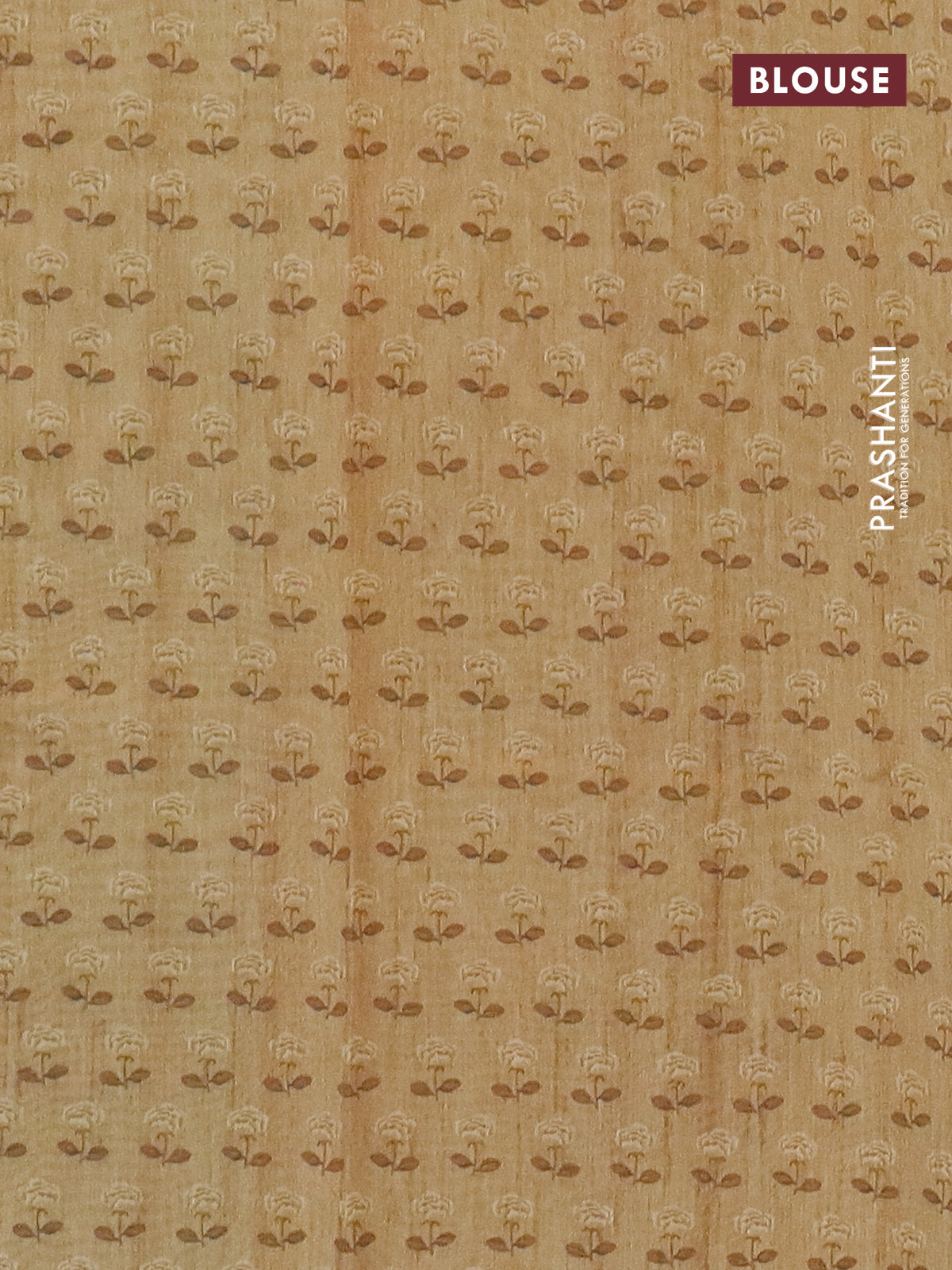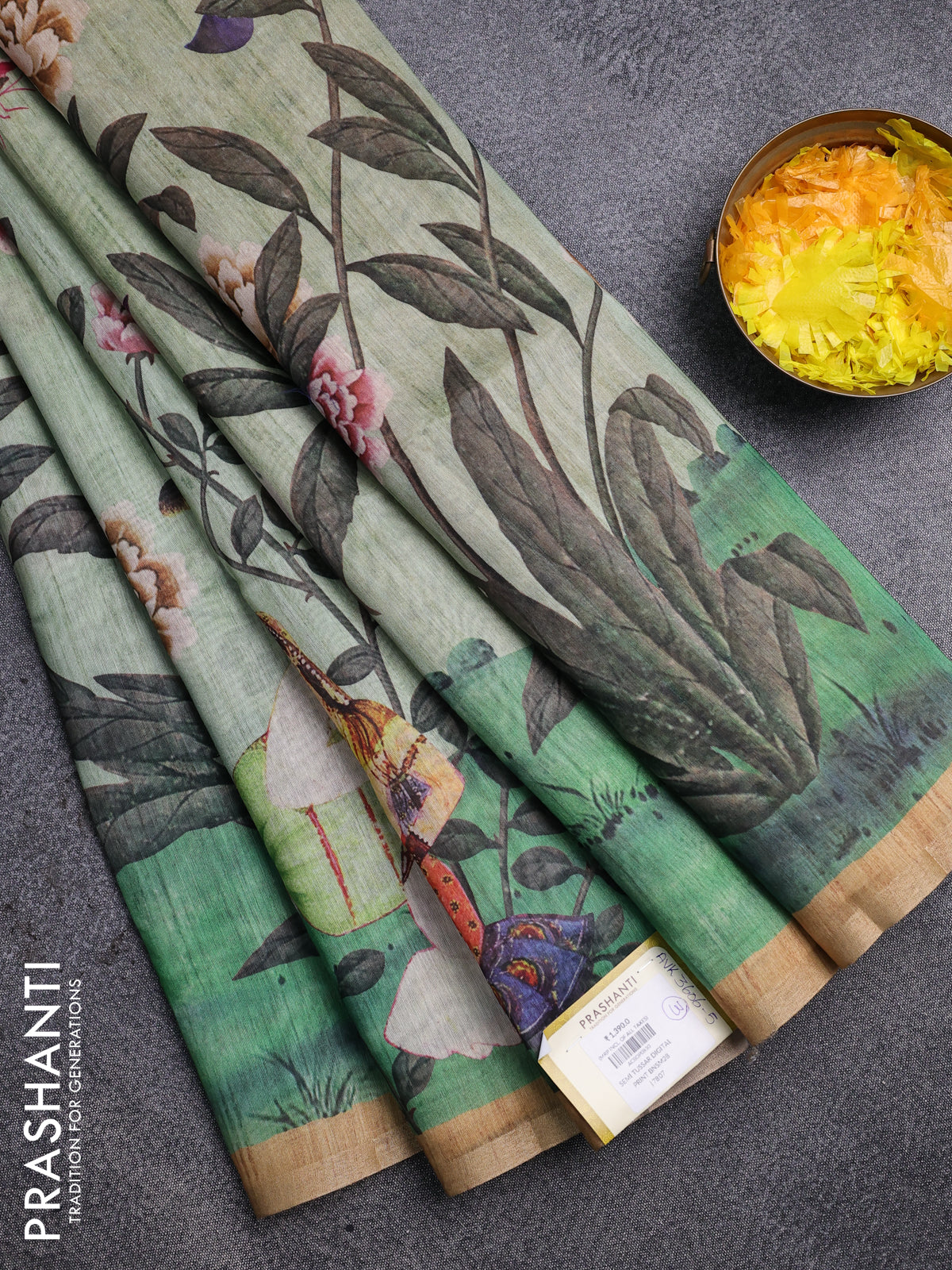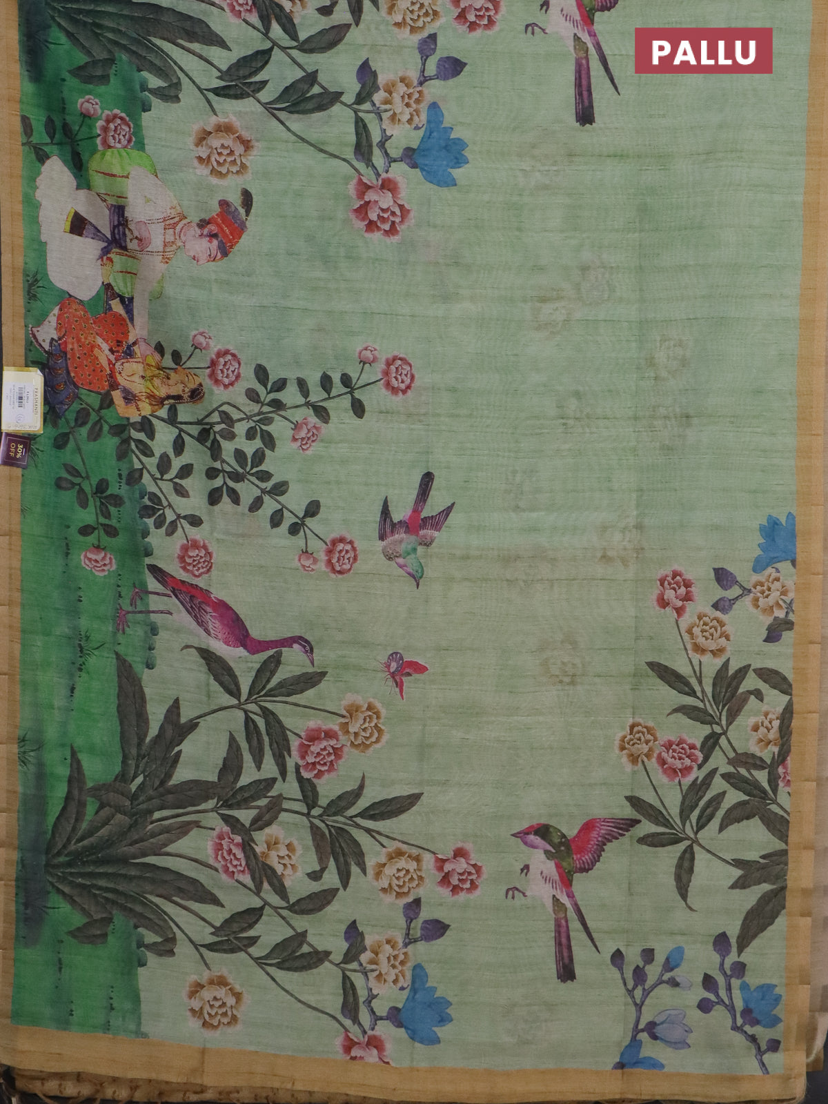 Semi tussar saree pastel green and sandal with allover prints and small zari woven border