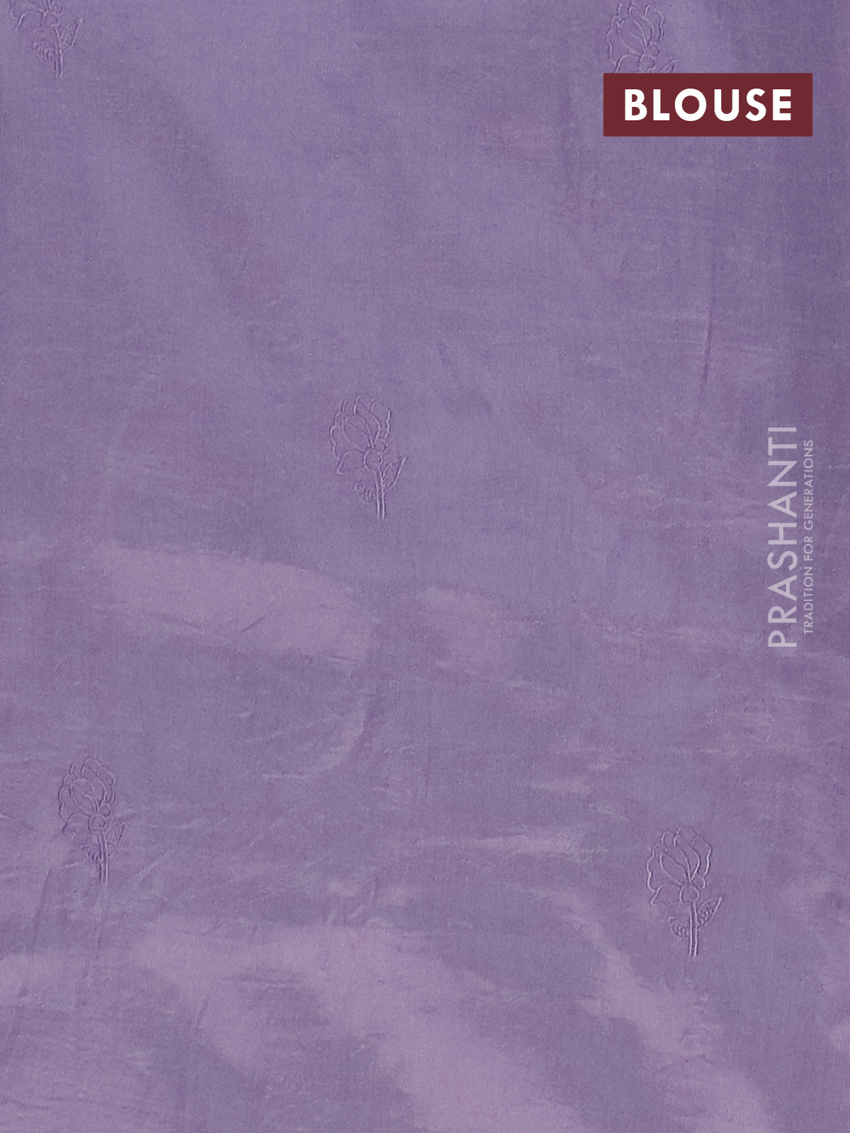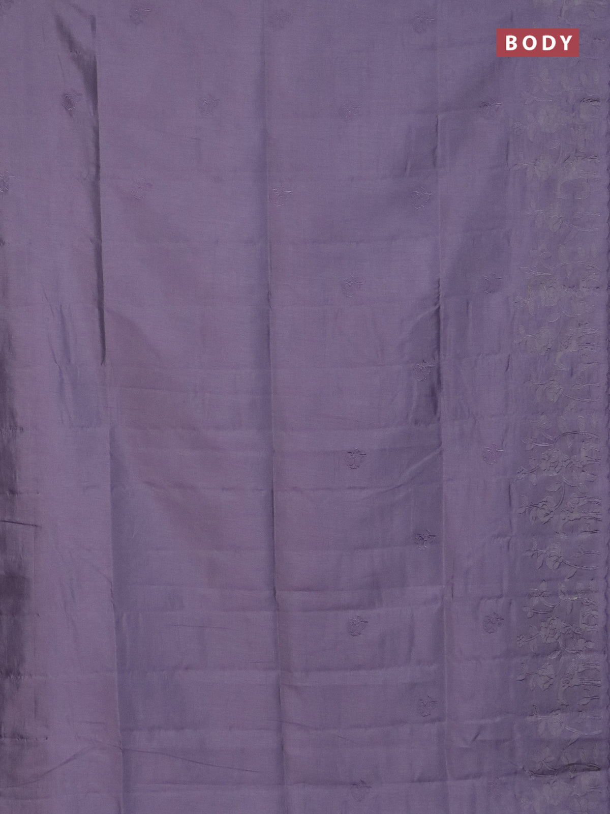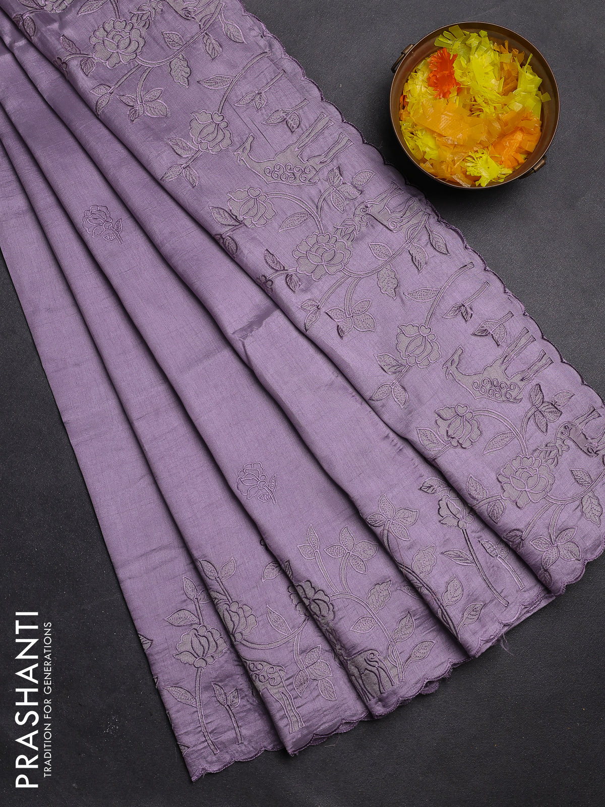 Semi tussar saree pastel lavender with floral embroidery work and applique work border