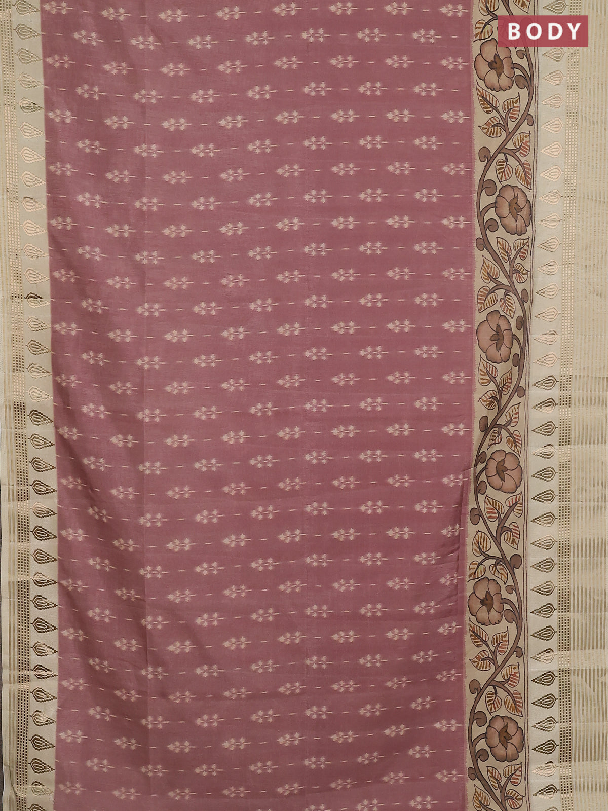Semi tussar saree pastel maroon and cream with ikat butta prints and zari woven border