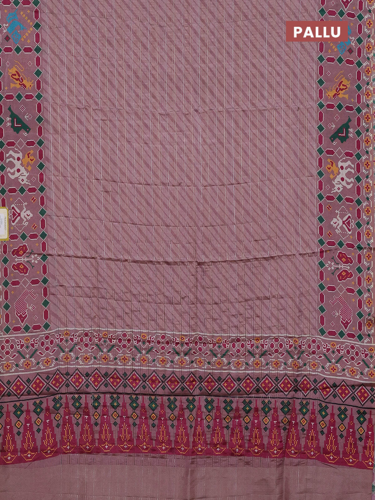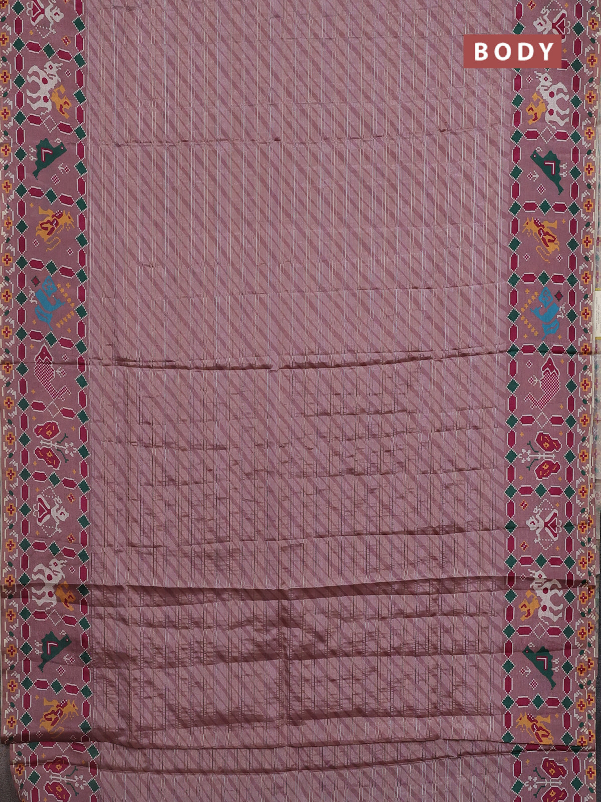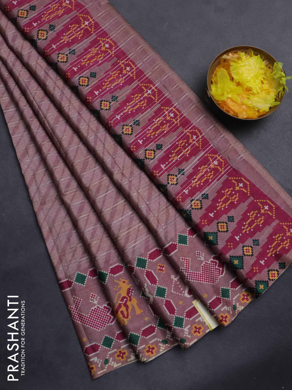 Semi tussar saree pastel pink with leheriya prints and patola printed border