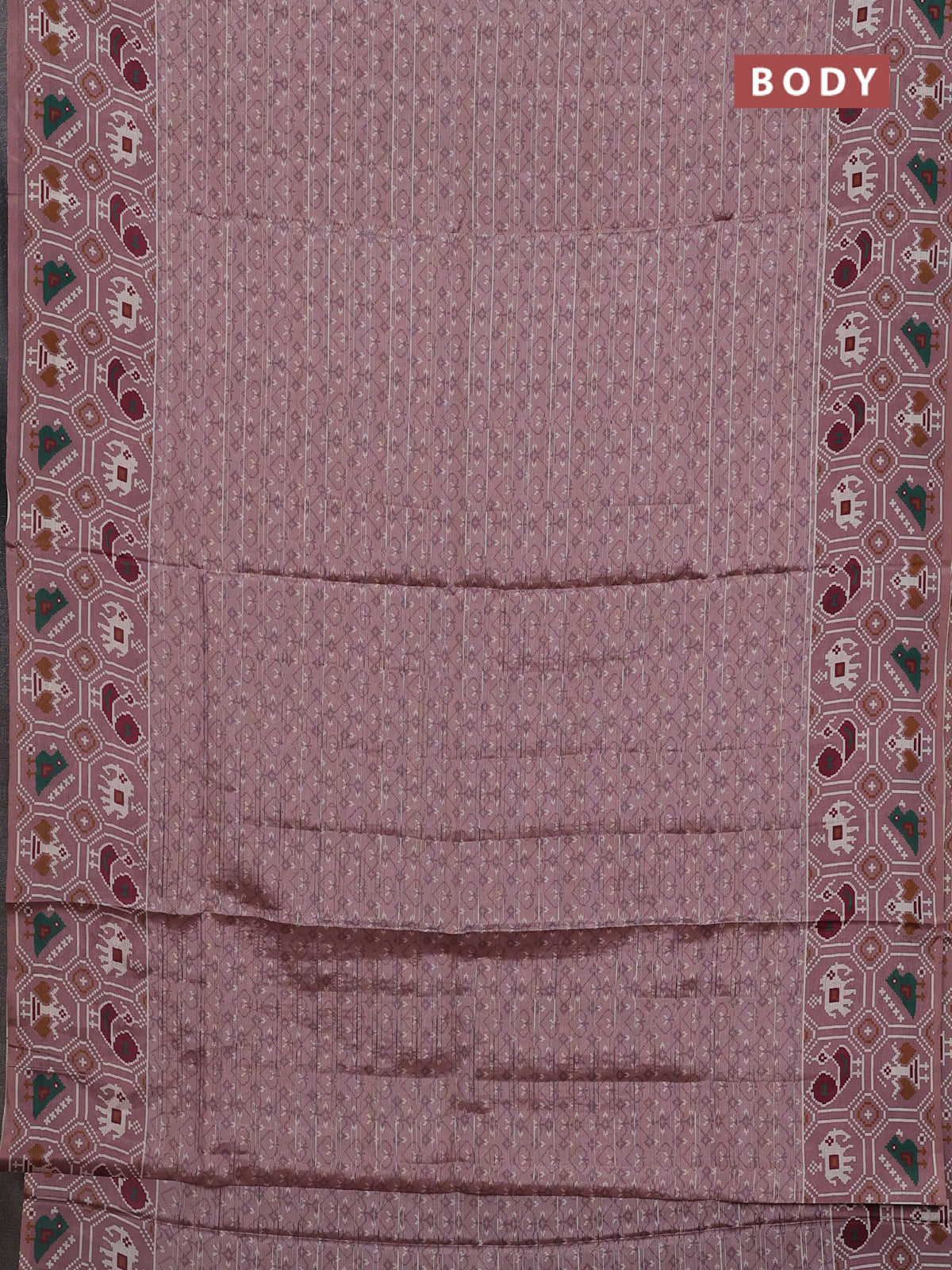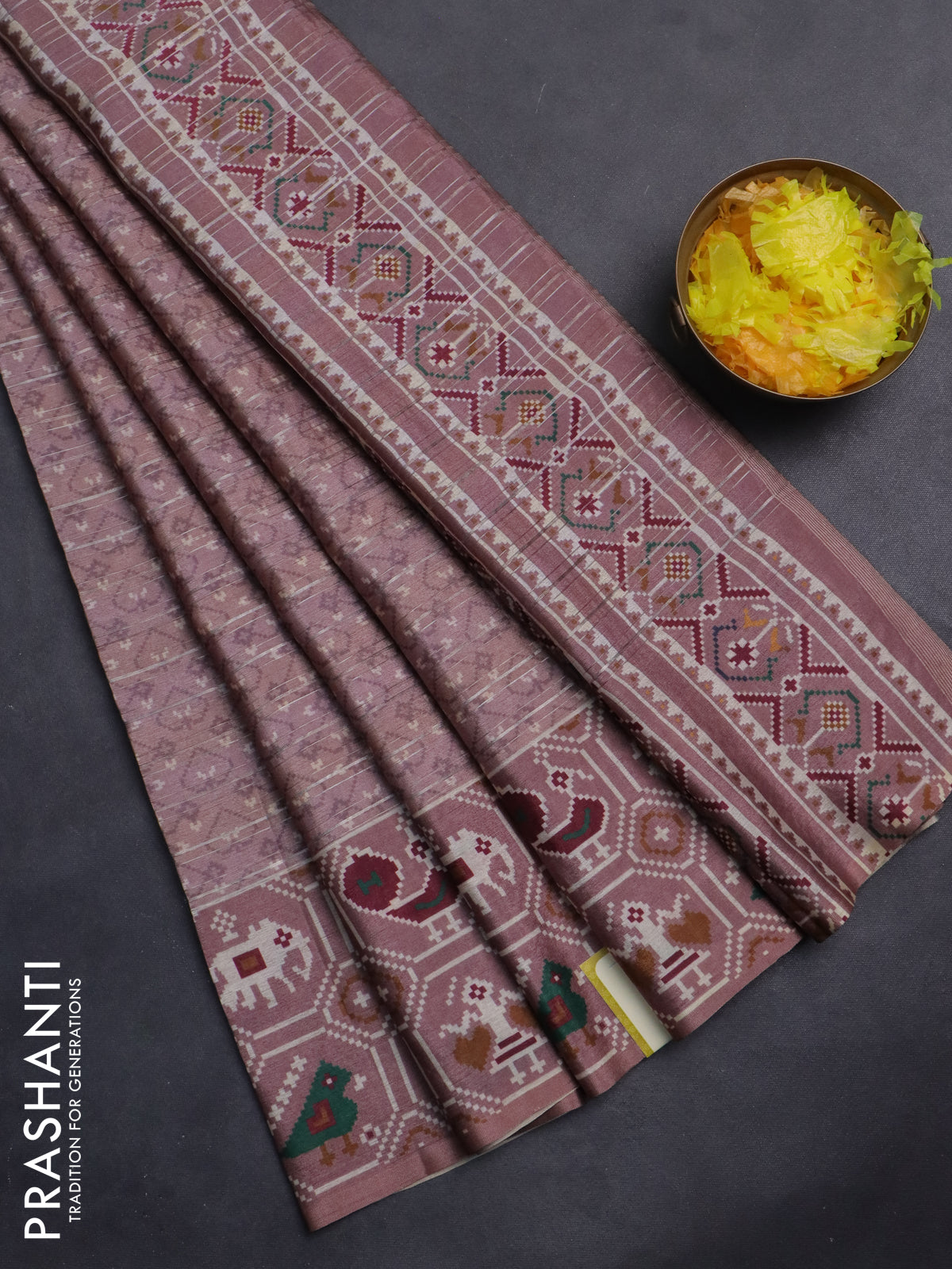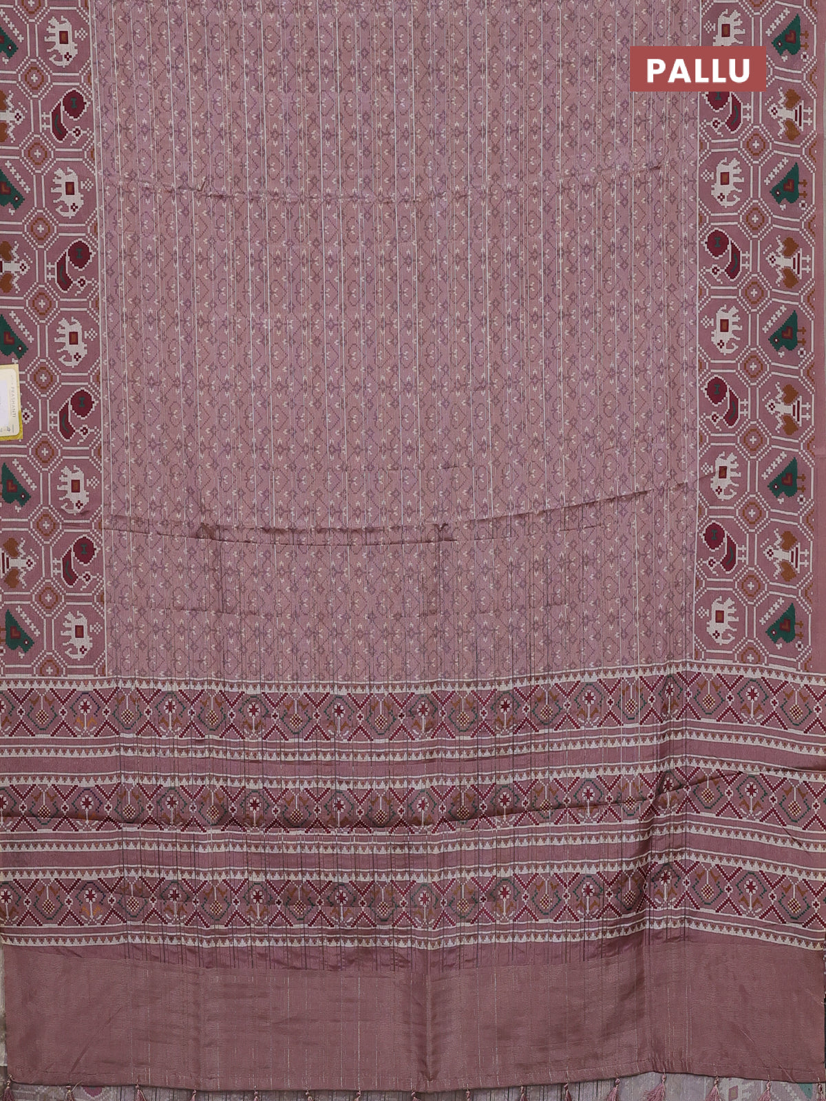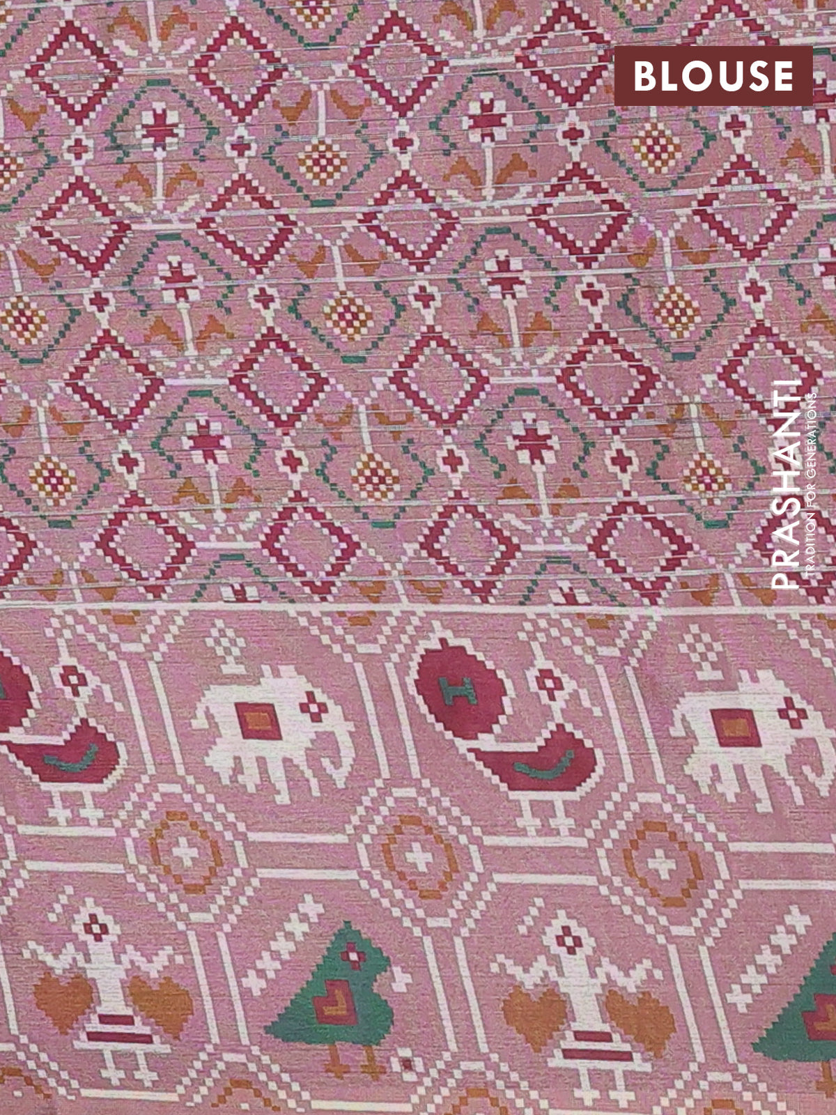 Semi tussar saree pastel pink with zari stripes pattern and patola printed border