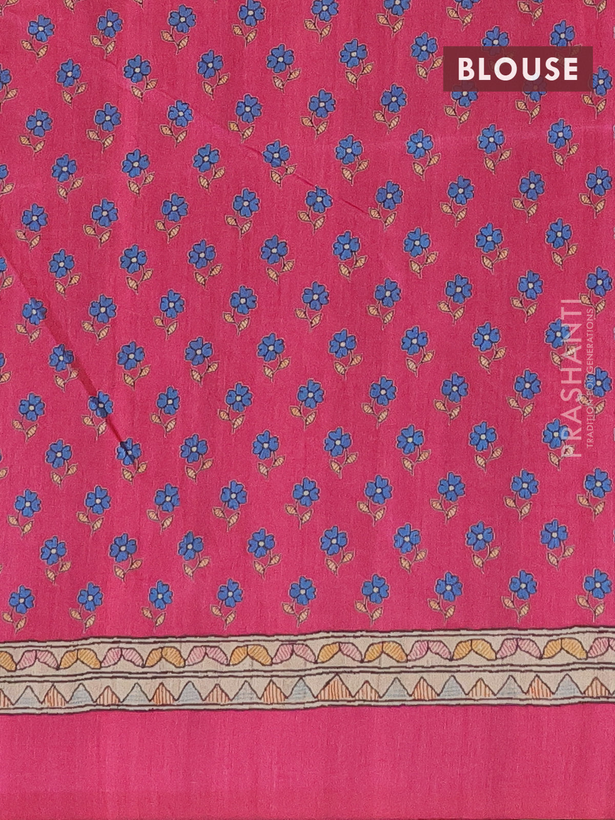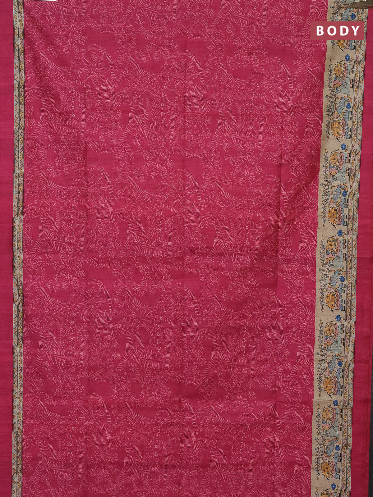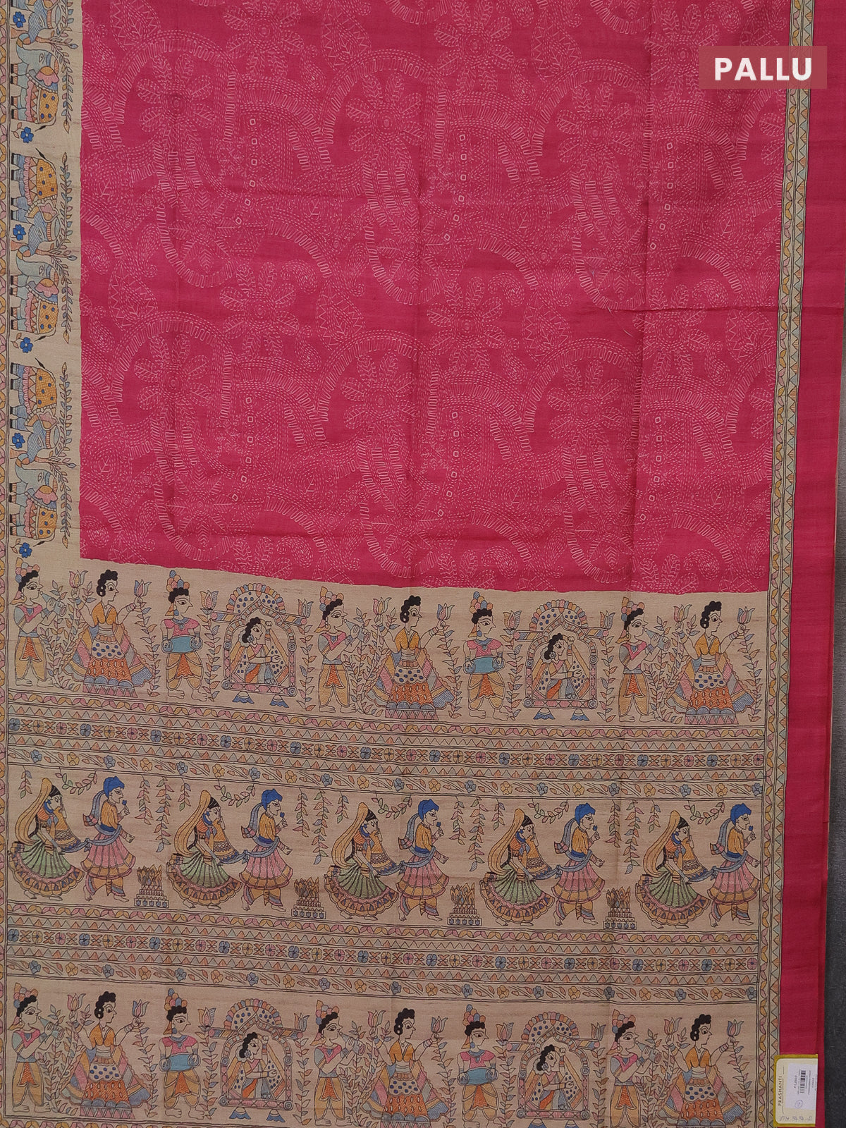 Semi tussar saree pink and beige with allover prints and mandhubani printed pallu