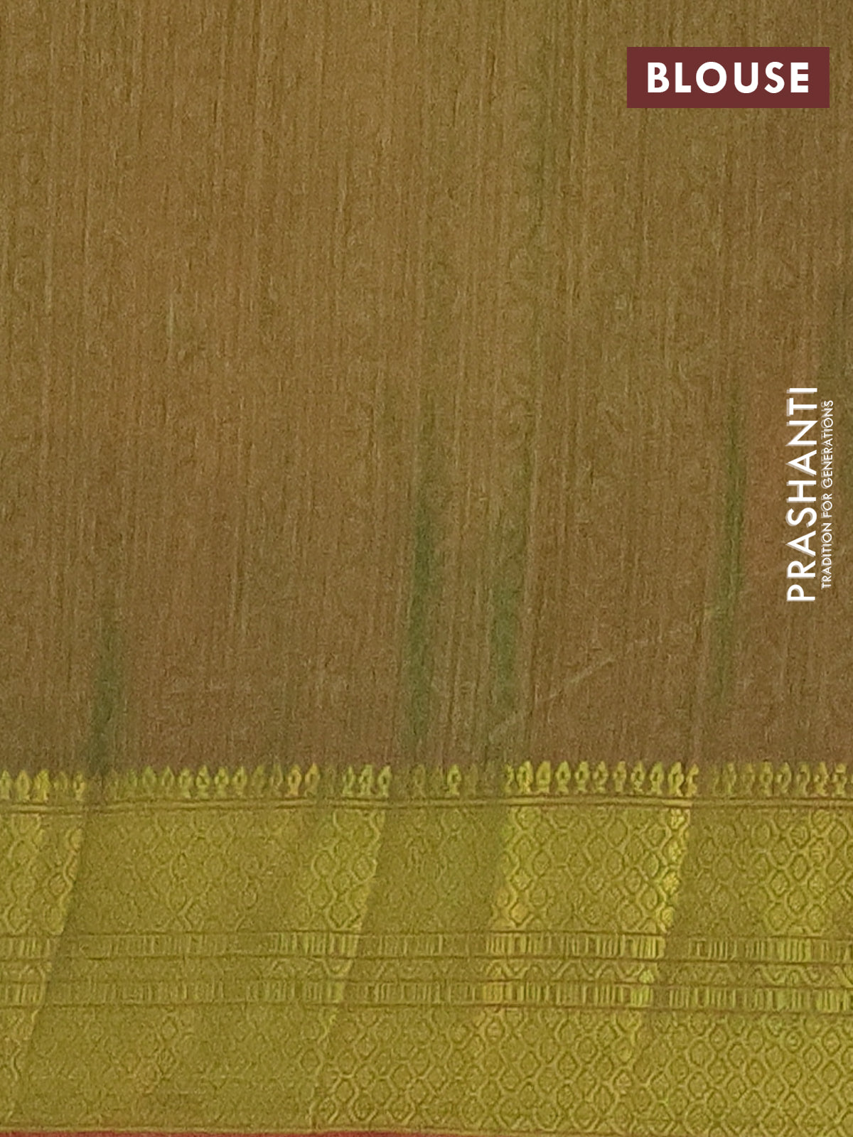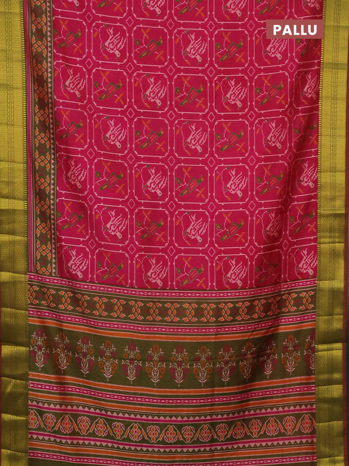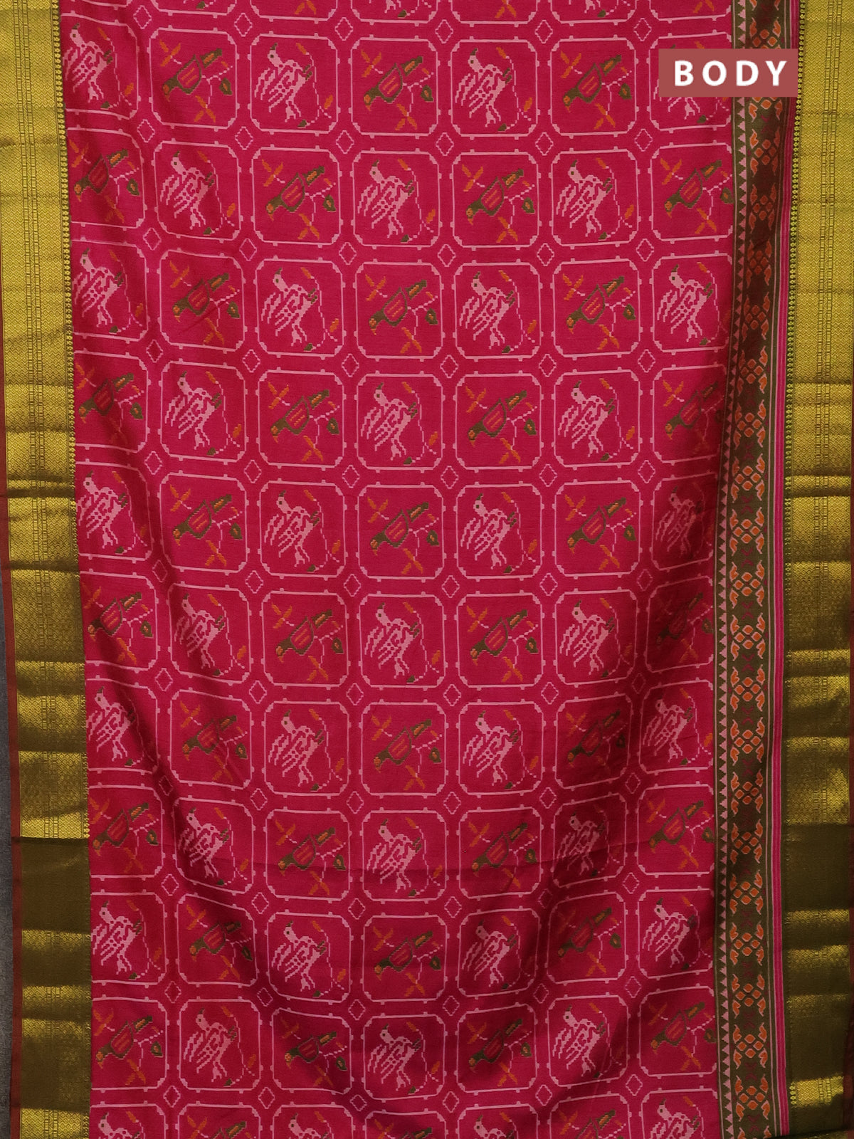 Semi tussar saree pink and dual shade of green with allover ikat prints and zari woven border