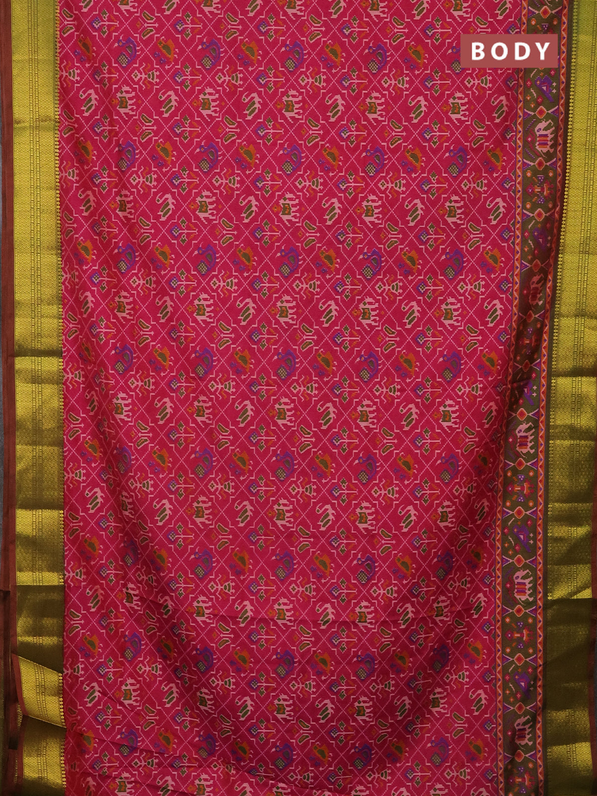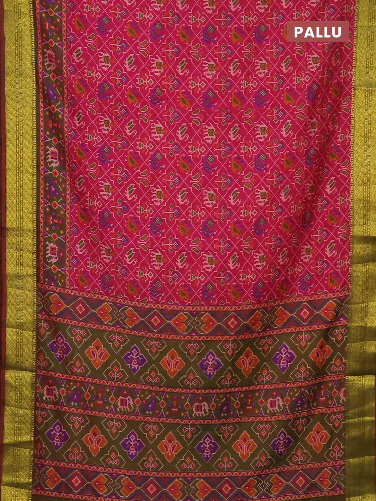 Semi tussar saree pink and dual shade of green with allover patola prints and zari woven border