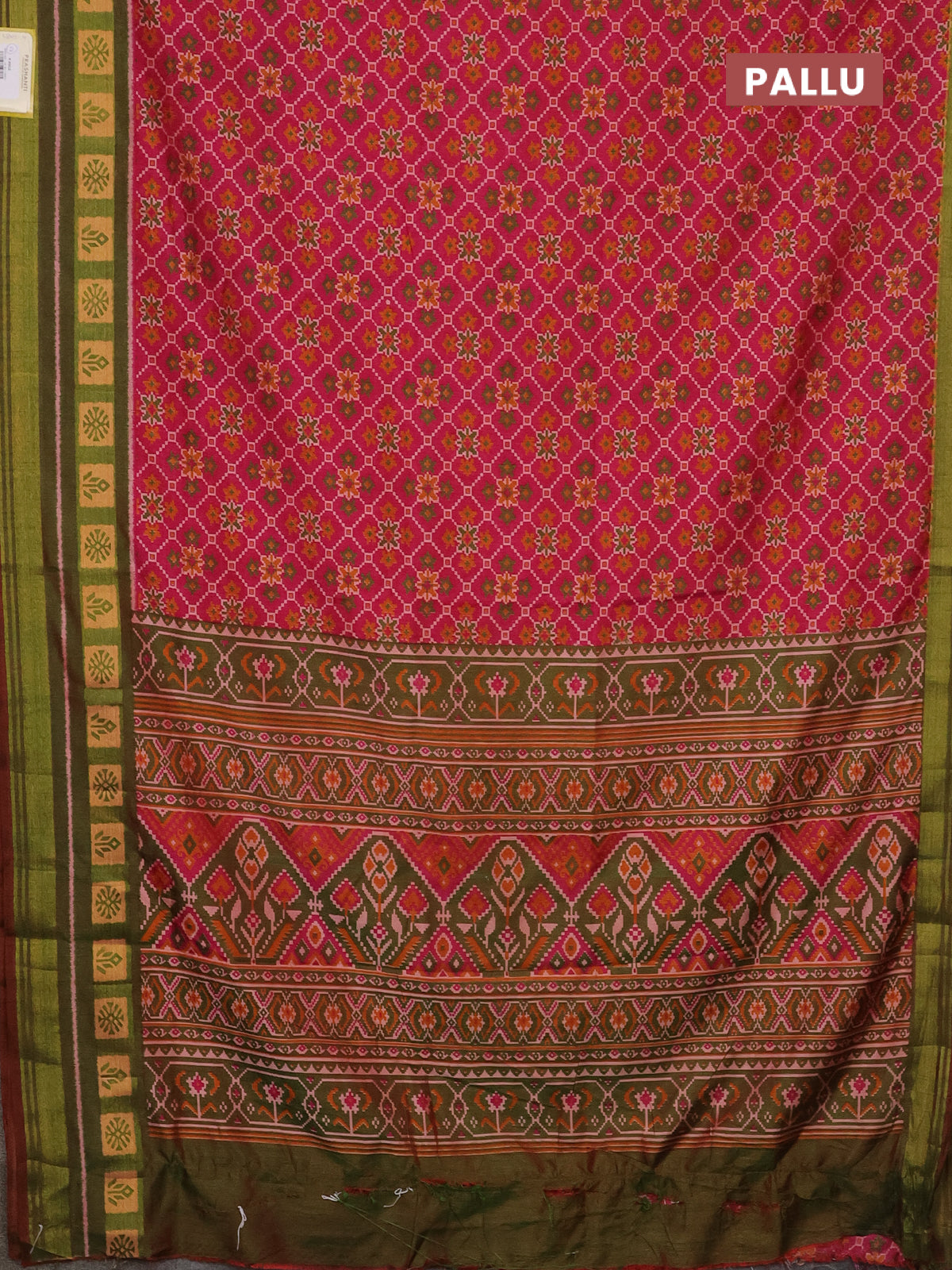 Semi tussar saree pink and green with allover ikat prints and zari woven border