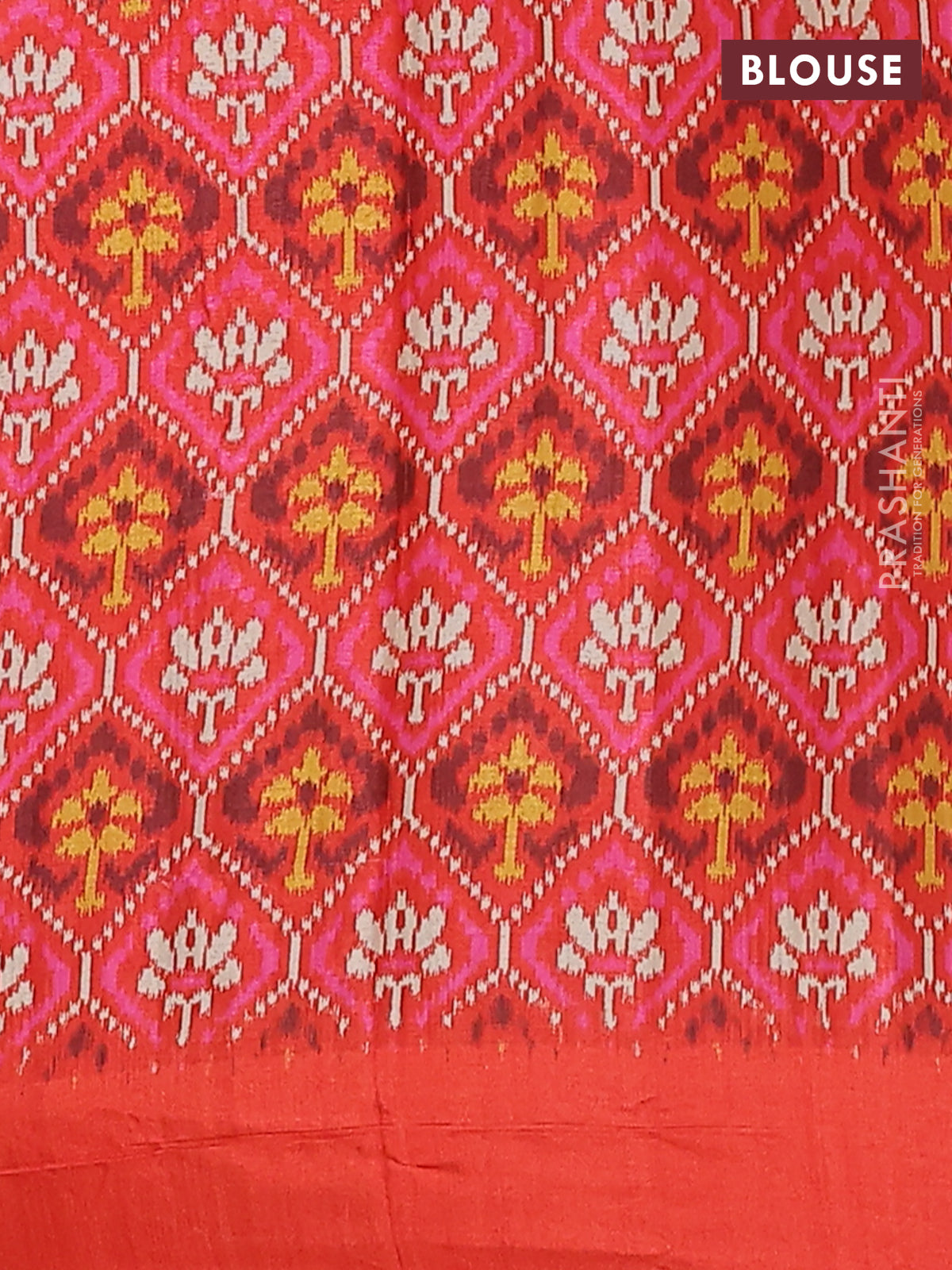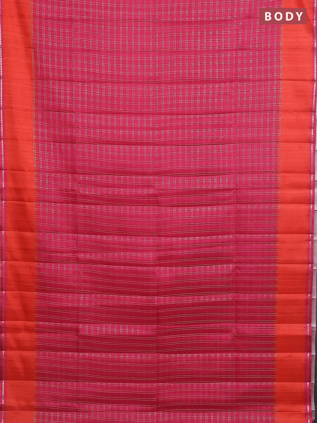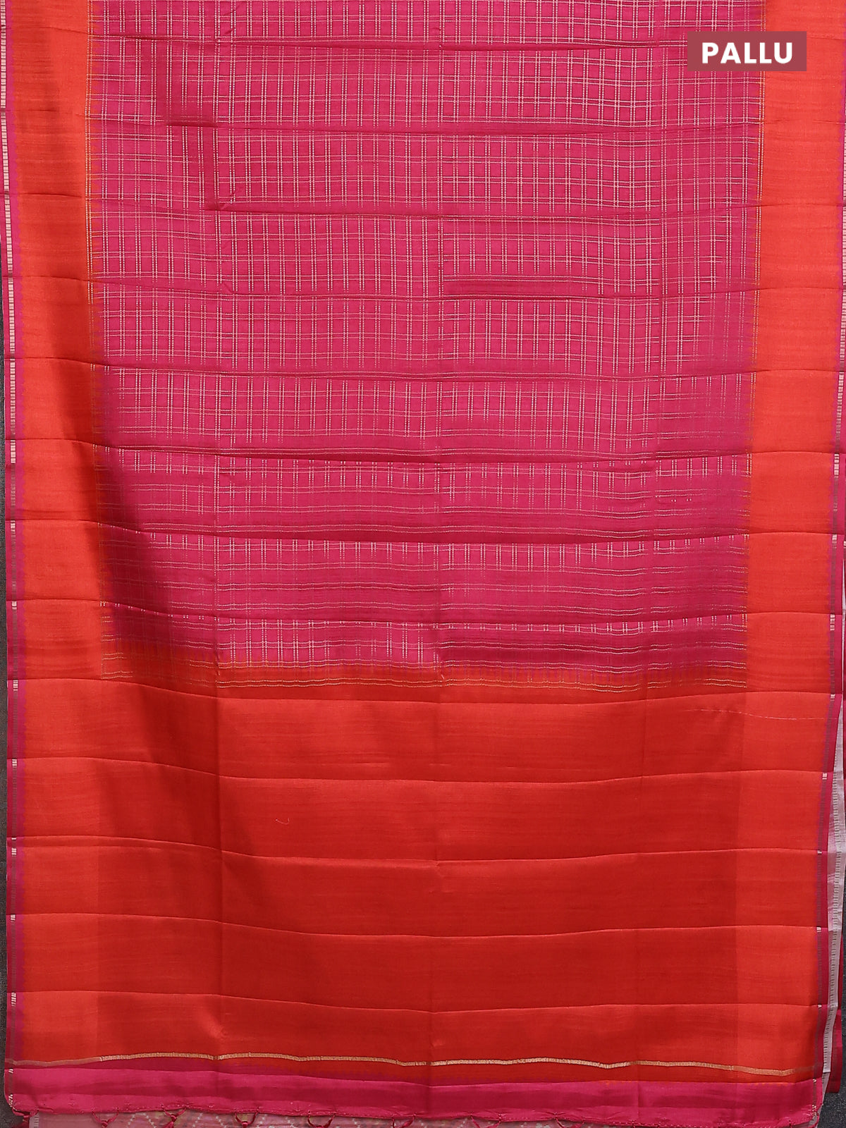 Semi tussar saree pink and orange with allover zari checked pattern and rettapet zari woven border